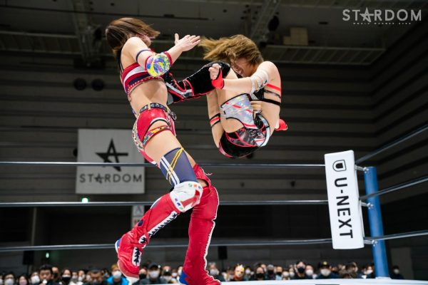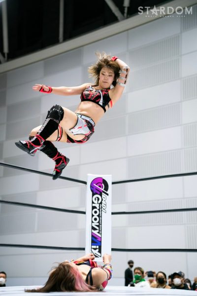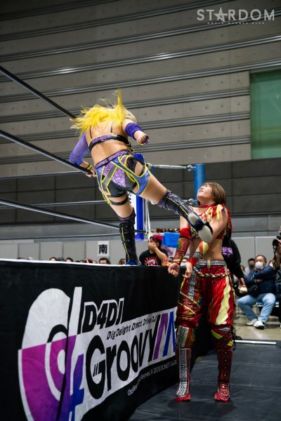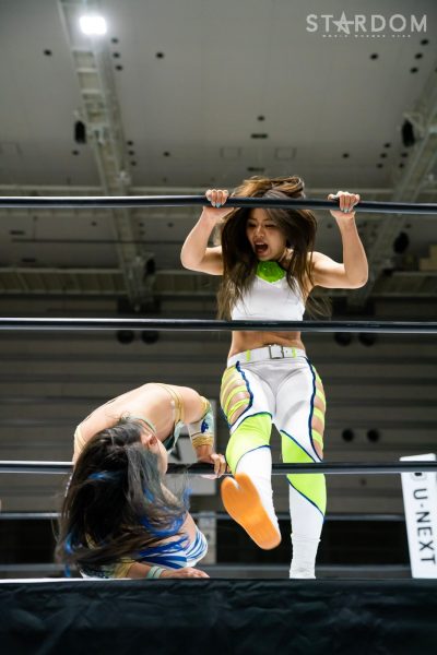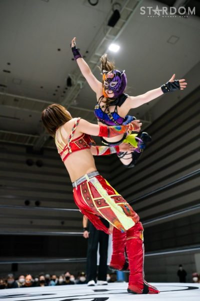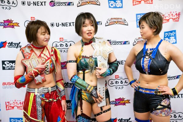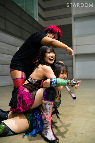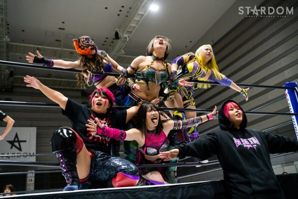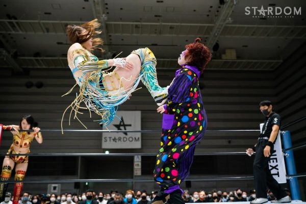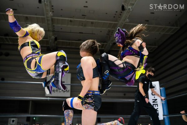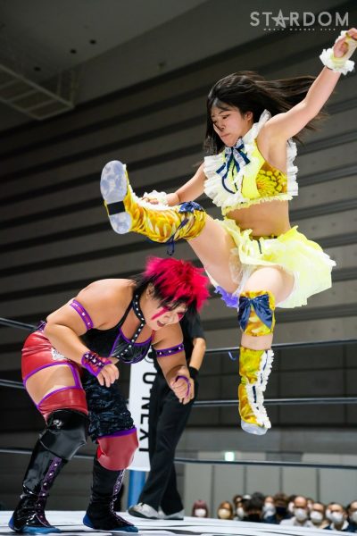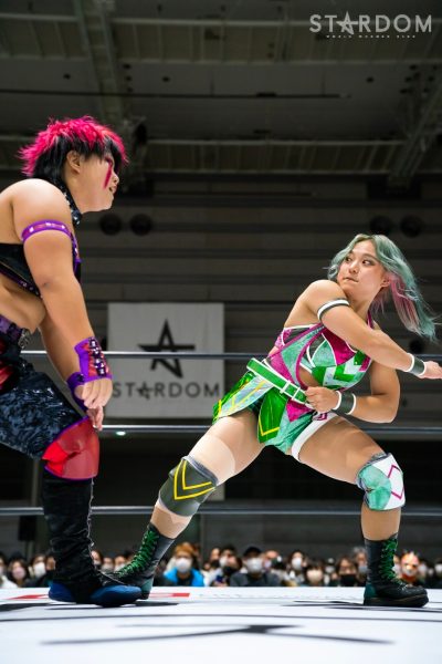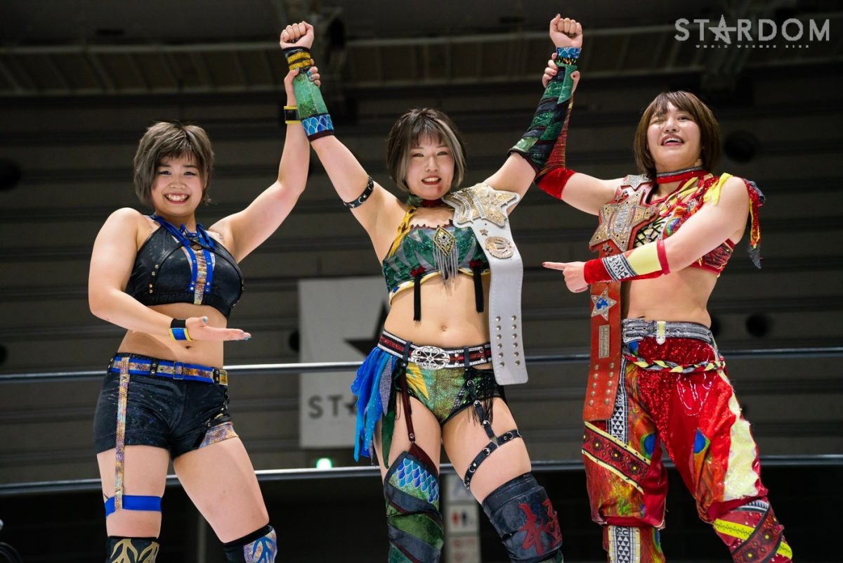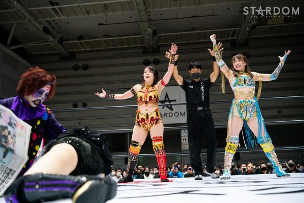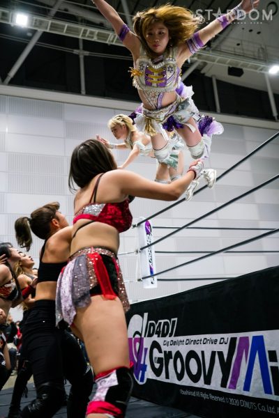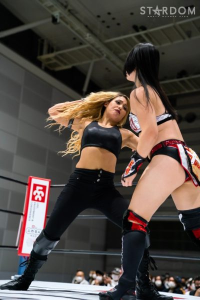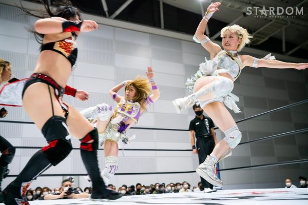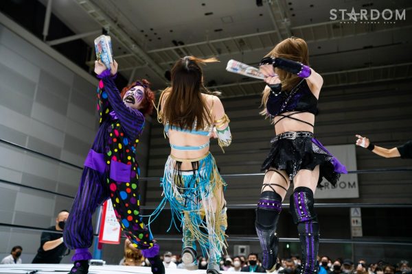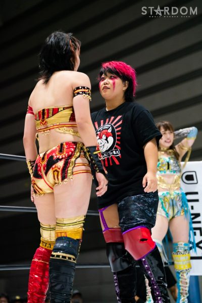 ゴッズアイの朱里&MIRAI&壮麗亜美組と大江戸隊の渡辺桃&スターライト・キッド&吏南組が6人タッグマッチで全面対決。フューチャー・オブ・スターダム王者となった壮麗に大江戸隊の吏南が噛みつくか?