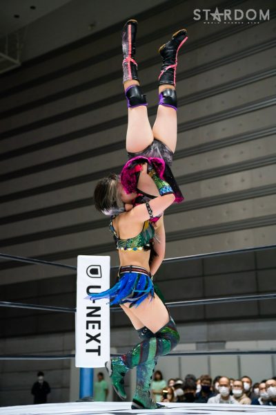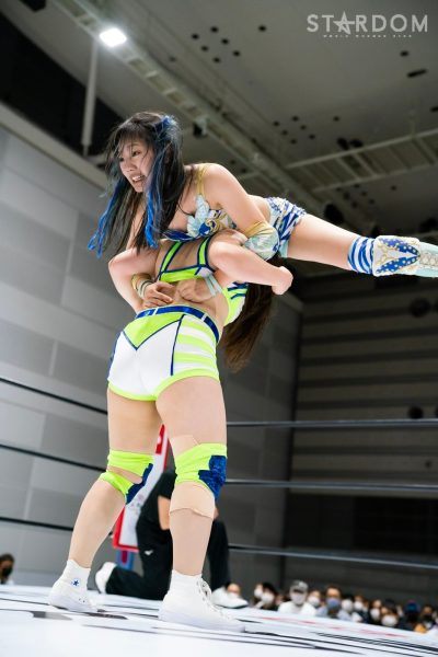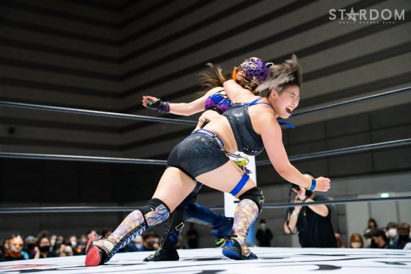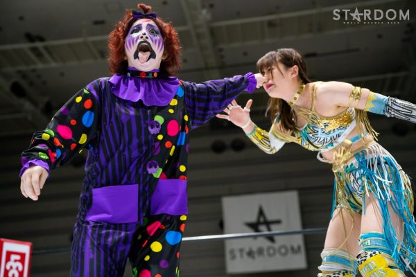 クイーンズクエストの元ゴッデス・オブ・スターダム王者チーム、林下詩美&上谷沙弥組と大江戸隊の鹿島沙希&フキゲンです★組が公式戦で激突。詩美組はこれがタッグリーグ初戦で、鹿島組は2戦目。開幕戦では桜井まい&レディ・C組の越境コンビに勝利し、幸先いいスタートを切った。勝敗がまったく読めないこのカード、果たして白星を挙げるのは?