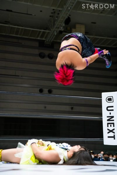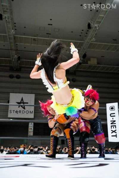 羽南と琉悪夏の先発でゴング。手四つの構えから羽南が腕を取りにいく。琉悪夏はヘッドロックに取るが羽南が抜け出す。ロックアップで琉悪夏がロープに追い込むとナツコが乱入、飯田が阻止しようとするが場外に落とされる。ナツコ、琉悪夏がセントーンを連続投下。羽南が返すと、琉悪夏はショルダータックルを連発。片足でカバーするが羽南が返す。ナツコが手刀を連続投下しグラウンドへ。左右に動いてカバーすると羽南が返す。ナツコは羽南にエルボー連打。ナツコが突進すると飯田が妨害し羽南が払い腰。飯田が入りナツコにバックエルボー、逆水平連打。打たれながらもナツコが向かっていくと琉悪夏が乱入、飯田がかわして鉢合わせにするとジャンピングチョップで分断する。飯田はノーザンを狙うがナツコがこらえる。ショルダータックルをぶつけ合い、ともにチェンジ。琉悪夏が腹部へのパンチも羽南が飛びつき腕十字。琉悪夏がエスケープすると、羽南はダブルリスト狙い。琉悪夏がこらえると羽南がコーナーに振って串刺しで突進。琉悪夏がかわしてボディーアタック、セントーン。羽南が返すと、琉悪夏がフィッシャーマン狙い。羽南がかわすが琉悪夏がブレーンバスター。返された琉悪夏はフィニッシュを宣言。しかし羽南がマヒストラル。羽南が琉悪夏にエルボー連打、リング下からナツコが足を引き琉悪夏が低空クロスボディー、コーナーに乗せるとナツコと合体でマットに叩きつける。タッチを受けたナツコがコーナーに上がるが飯田が下からのヘッドバット、雪崩式パワースラムで羽南を援護。飯田はナツコを抱え、羽南がネックブリーカー。羽南はブロックバスターホールドも琉悪夏のカットが間に合う。飯田がまとめてラリアット。羽南がフェイマサ―を決めるがナツコが返す。羽南の突進を琉悪夏がリング下からボックスで殴打、ナツコがマットに叩きつけるが羽南が返す。ナツコはフィニッシュを宣言しスワントーンボム。羽南が返せずナツコが勝利した。