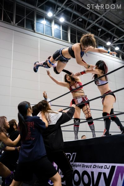 向後桃が体調不良により今大会も欠場。予定されていたタッグリーグ公式戦は順延され、岩谷麻優は2日連続で同じSTARSの飯田沙耶がパートナーに登場、この日は大江戸隊のスターライト・キッド&渡辺桃組と対戦する。キッド、桃とも岩谷を裏切った過去があるが、現在は大江戸隊一色に染まり自己を確立。パワーを武器とする飯田の踏ん張りが勝負のカギを握りそうだ。
