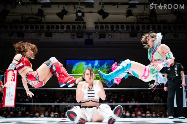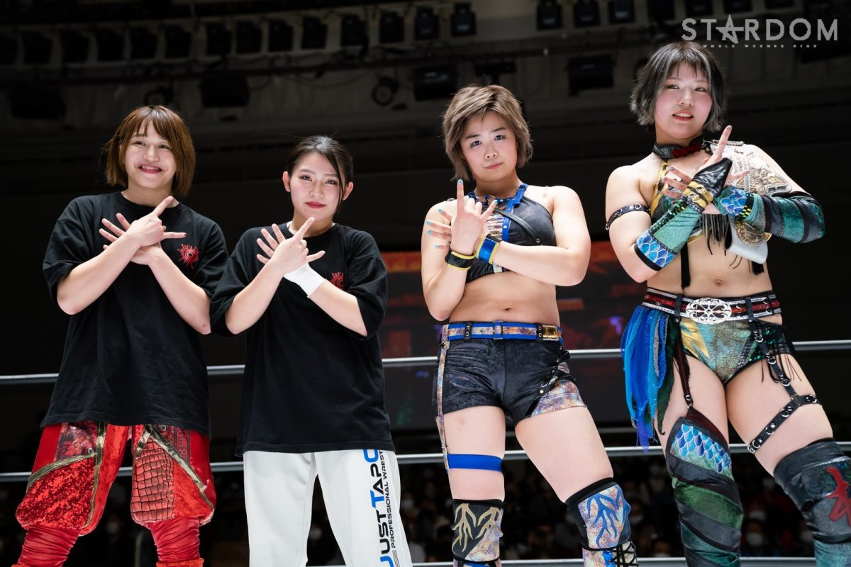 向後が「出ます」と先発に立候補。朱里組は稲葉が手を上げて試合開始。ロープワークから向後がアームホイップ、ドロップキック。向後は岩谷と合体し稲葉にフットスタンプの連続、ドロップキックの挟み撃ち。向後がボディースラム、稲葉が突きを見舞い朱里にタッチ。朱里は向後にサッカーボールキック。稲葉を呼び込むと左右からエルボーを落とし手刀で挟み撃ち。朱里が腕十字にいくが向後がエスケープ。朱里はサッカーボールキックから突進するが向後のドロップキックを食らう。岩谷がドロップキック、ドラゴンスクリュー。向後と合体し岩谷のエルボーから向後がスワンダイブ、岩谷がボディープレス。岩谷は朱里の背後にまわりドラゴン狙い。朱里が切り返しマットに叩きつける。稲葉が岩谷にニー連打から二段蹴り。岩谷が返すと、稲葉のダッシュを止めてドロップキック。向後が稲葉にドロップキック。エルボーの打ち合いへ。向後がドロップキック。岩谷と向後がフェースクラッシャー、619で合体。しかし朱里のカットが間に合う。向後はコーナーに上がるが朱里が下から張り手、雪崩式ブレーンバスター。稲葉がサッカーボールキックも2カウント。稲葉が一撃必殺ともか蹴り。向後がかわしてトラースキック。稲葉がカウンターのハイキック。しかし岩谷がカット成功。稲葉と朱里が向後にブレーンバスター、サッカーボールキックの挟み撃ちからともか蹴り。向後が返せず3カウントが入った。