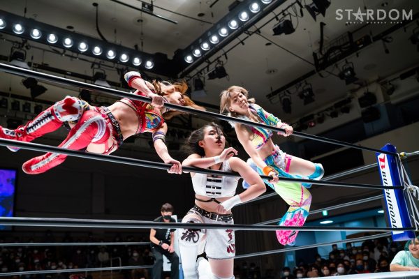 詩美とジュリアが先発でゴング。グラウンドの攻防で始まり、ジュリアが腕を取りにいく。詩美のヘッドシザーズをジュリアが抜け出し視殺戦。互いにタッチし上谷とテクラがロープワーク。テクラがコーナーから飛んで上谷を場外に送り出すとジュリアがすぐに戻して2人で踏みつける。テクラの突進を詩美が乱入して阻止、合体攻撃。詩美が控えのジュリアを落としてテクラにボディースラム。上谷がテクラに滞空時間の長いボディースラムから鎌固め。上谷の仁王立ちにテクラが張り手。上谷はエルボーで倒しロープに振るがコルバタを食らう。ジュリアが上谷に串刺しエルボー。詩美がカットするがジュリアは2人を相手に次々とネックブリーカー。ジュリアが上谷にブレーンバスターの構え。切り返した上谷はニールキック。エルボーの打ち合いからジュリアが突進を許さずバックドロップ。しかし上谷は二段蹴り。スピンキックを連続でかわしたジュリアだがスープレックスを食らう。ジュリアが突進すると上谷がスピンキック。ジュリアがこらえてニーを顔面へ。両者ダウン状態からタッチ。テクラが詩美に絡みついて変型卍固め。詩美はコーナーに叩きつけエルボー。詩美と上谷の合体を阻止してジュリアがまとめてミサイルキック、テクラがまとめてダイビングボディーアタック。ジュリアとテクラが合体のネックブリーカー、詩美にエルボーの挟み撃ち。詩美がテクラにバックフリップ。詩美と上谷が合体するがジュリアが背後からキャッチ、しかし詩美と上谷がドロップキックの競演。10分経過。詩美と上谷が合体のファンタスティックフリップ、詩美がラリアット。しかしテクラが返してみせる。詩美がジャーマンを狙うがテクラが切り返す。詩美がサイドスラムで叩きつけるとコウモリ吊り落とし。詩美と上谷がマジックキラー、詩美がアルゼンチンもテクラが丸め込むと3カウントが入った。
