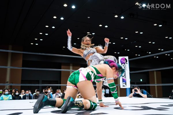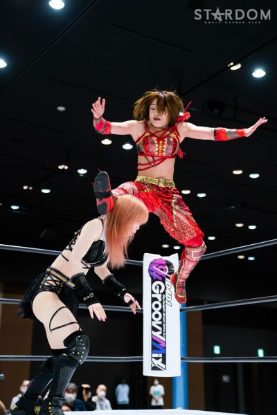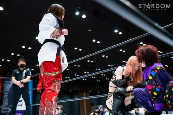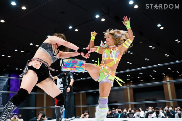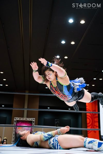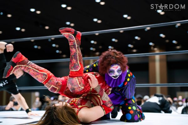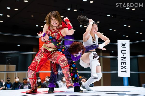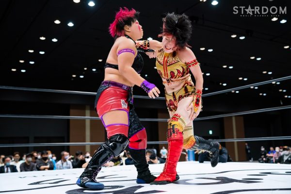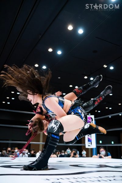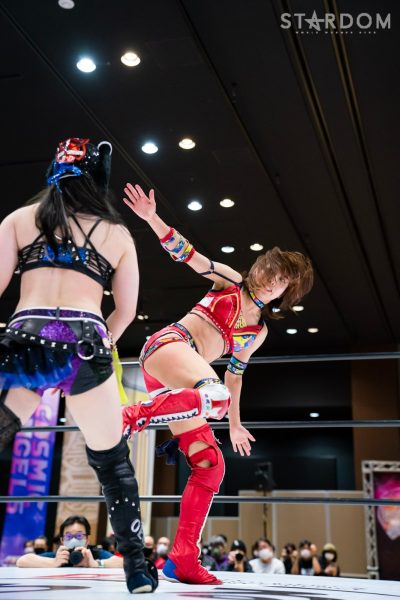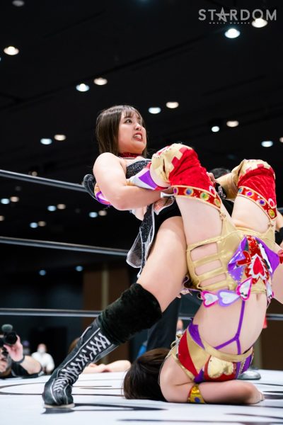 4勝1敗の舞華&ひめか組と1勝4敗のSAKI&月山和香組が公式戦で対戦。対照的な成績のチームによるタッグマッチとなった。舞華とひめかは、3度目のエントリーにして初めての舞ひめでの出場。元ゴッデス・オブ・スターダム王者であり、優勝候補の一角。その前評判通りの成績を上げ、決勝進出に向けて前進している。相手はSAKI&月山のコズエンカラーズ連合軍。白川未奈の欠場により月山が入るも、以後は4連敗と、やはり未勝利の月山には厳しい状況。ここで一矢報いて初勝利を挙げるか、それとも舞ひめが順調に白星をゲットし決勝進出に近づくか。
