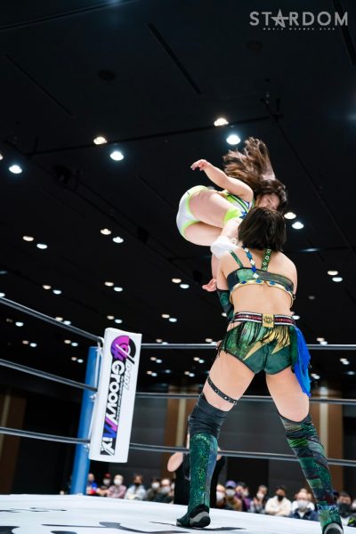 上谷「スターダムランブル優勝しました。12月29日両国国技館で、この白いベルトの防衛戦をやりたいと思います。KAIRI戦を終えて価値がさらに上がったこのベルト、ほしい人いっぱいいるでしょう」