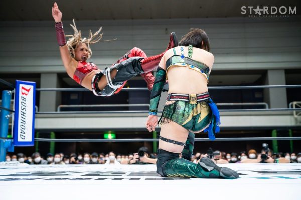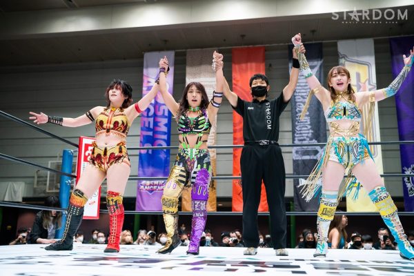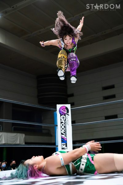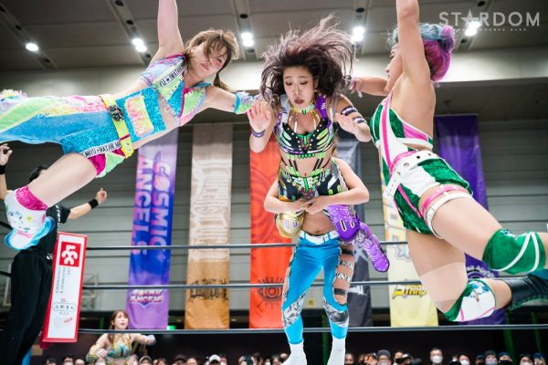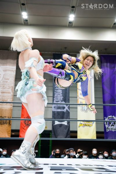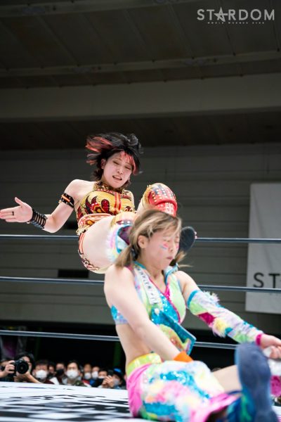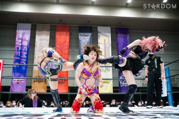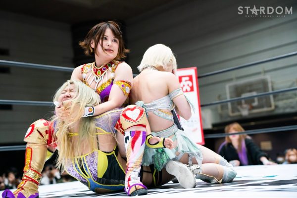 STARSの岩谷麻優&葉月&飯田沙耶組とクイーンズクエストの林下詩美&上谷沙弥&AZM組が6人タッグマッチで全面対決。両軍による華麗な闘いが展開されそうだ。