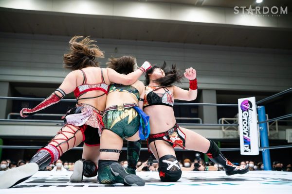 12・29両国国技館でワールド・オブ・スターダムを争う朱里とジュリアが前哨戦。赤いベルトを約1年守ってきた朱里と、今年の5★STAR GPを制して挑戦権を得たジュリアが、どんな駆け引きを展開するか。また、両者と組むMIRAI&壮麗亜美、舞華&ひめかにも両国への前哨戦だ。両軍は刀羅ナツコ&琉悪夏組を交えた3WAYタッグマッチでゴッデス・オブ・スターダム王座次期挑戦権を懸けて闘う。どちらもタッグリーグ優勝を逃してしまったあとでのチャンスだけに、何としても手に入れたいところ。こちらの駆け引きもまた注目される。