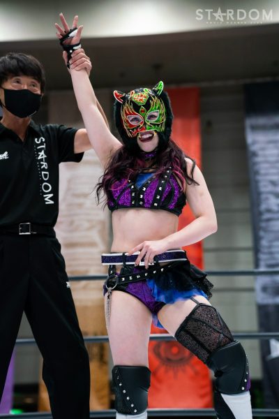 テクラが腹部に蹴りを入れてヘッドロック。キッドがロープに振ると見せかけ髪をつかんでヘアーホイップ。テクラが切り返しロープへの振り合いでともにロープで止まる。テクラがエプロン越しにスタナー、顔面蹴り。ブレーンバスターの掛け合いはどちらも譲らず。キッドがその場飛びムーンサルトプレスからテクラの顔面を蹴っていく。さらに顔面をトップロープにこすりつけていく。テクラが足を取ってアキレス腱固めからインディアンデスロックをブリッジして決めると、鎌固めに移行。テクラはキッドをロープに追い込みマスクに手をかける。テクラは「カモンキディ」と挑発しエルボーの打ち合いへ。キッドが連打しテクラがこらえる。テクラがブリッジでラリアットをかわす。キッドはテクラをロープに追い込み619、旋回式ダイビングボディープレス。テクラが返すと、キッドはフィニッシュを予告、テクラがこらえるとロープワークからスピアを放つ。テクラは蜘蛛絡みにいくがキッドがカバー。テクラが返すと、ダブルアームの構え。キッドが切り返すがトラースキックを食らう。テクラがフィニッシュ狙いでバズソーキックもキッドが返す。テクラはキッドを引き起こし顔面を蹴飛ばしていく。テクラの突進をキッドがキャッチし黒虎天罰狙い。テクラが切り返し回転足折固め。キッドが切り返し押さえ込むと3カウントが入った。試合後、テクラが襲いかかりキッドにスリーパー。桃がカットも舞華が場外に追いやる。ナツコが入り両者を分断。