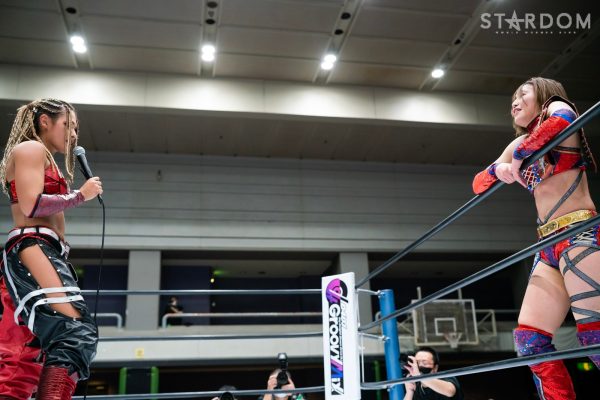舞華「きょうは赤の前哨戦でもあり、我々舞ひめ、ゴッデスの次期挑戦権を懸けた3WAYの前哨戦。壮麗はフューチャーのベルトを取って、私結構気にしてたんだけど、どうかな? MIRAIの方がグングングングン成長して、あいつ本当にチャンピオンとしてやっていけてんのかな。ゴッデス挑戦する前にやるべきことあるんじゃないの。自分の使命をまっとうできねえヤツがゴッデス挑戦権、まだ早いんじゃない?そう思う前哨戦でした」