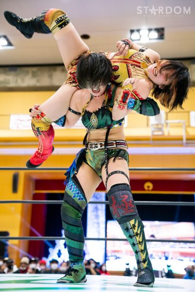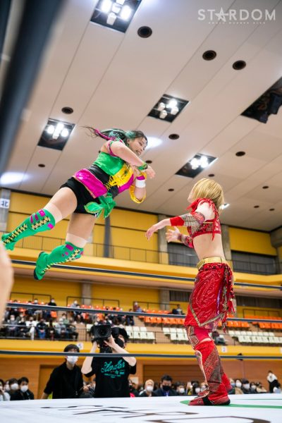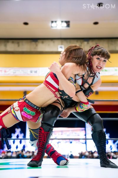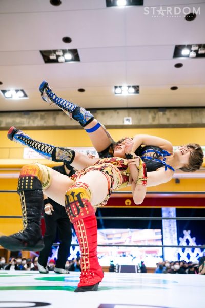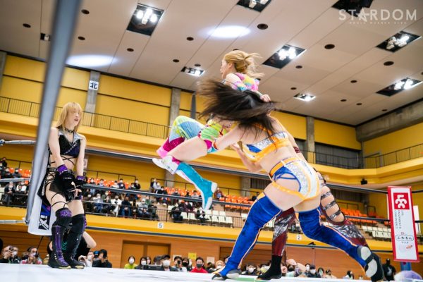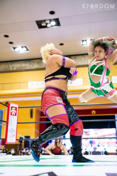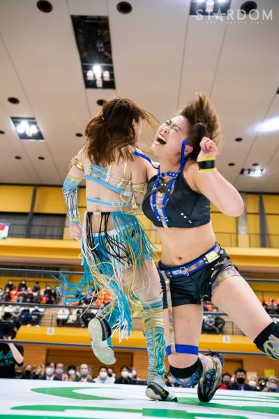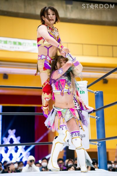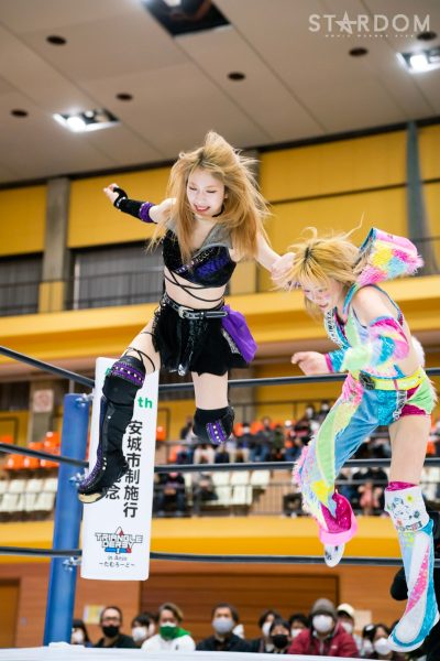 クイーンズクエストの“アフロディーテ”林下詩美&上谷沙弥組とゴッズアイの“THE NEW ERAS”MIRAI&壮麗亜美組がタッグマッチで対戦。前日の名古屋大会ではフューチャー・オブ・スターダム王者の壮麗亜美が上谷のワンダー・オブ・スターダム王座に挑戦し敗れた。早くも再激突となるが、壮麗が再チャレンジへの足掛かりをつかむか、それとも最多防衛タイ記録に並んだ上谷が返り討ちにするか。