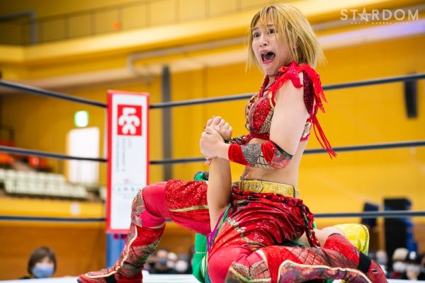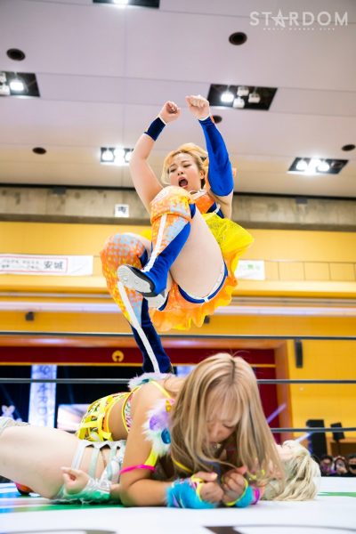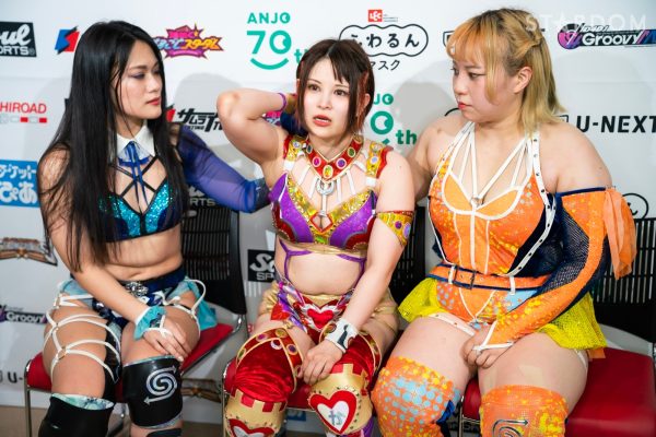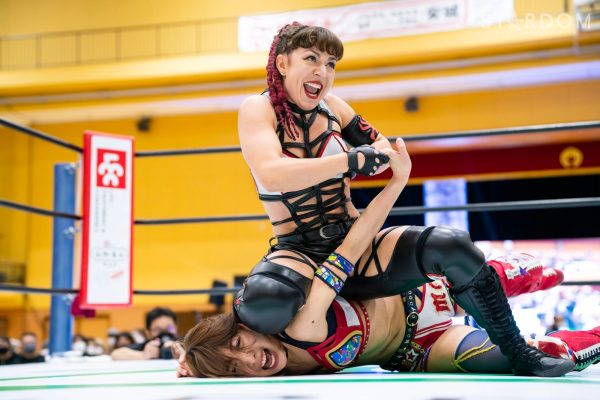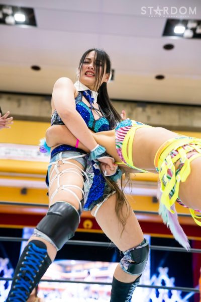 朱里と水森由菜が一騎打ち。高橋奈七永&優宇の7Uppに合流した水森が前赤いベルトの王者に挑む。両者は6人タッグリーグ戦トライアングルダービーでも対戦予定。星取り争いを控えての前哨戦でもある。