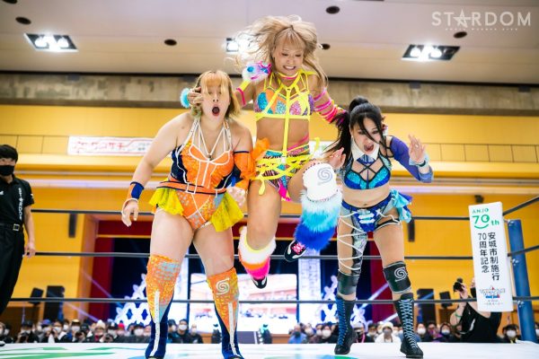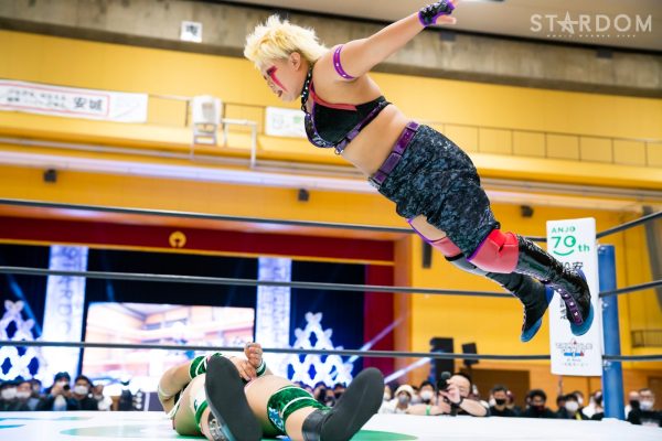 試合前、神谷学安城市長より中野に激励の花束が贈呈。なつぽいが中野の背中を押して先発に送り出す。中野は網倉と対峙し、グラウンドへもっていく。バックの取り合いから腕を取り合い、中野がヘッドロック。網倉が取り返し締め上げるとグラウンドへ。すぐに中野がヘッドシザーズも網倉が抜け出す。月山がなつぽいにヘッドロックからドロップキック連打。なつぽいが受けて立ち4発目をかわしてドロップキックのお返し。中野となつぽいがダブルのバックキック、SAKIも加わり3方向からキックを決める。なつぽいが月山にボディースラム。SAKIが月山の手足を取って変型のジャイアントスイング。中野が月山をコーナーに振ってエルボーアタック、ミドルキック、カカト落とし。なつぽいが月山にヘアーホイップ、控えをリング下に落としてからもう一度ヘアーホイップ、後方からドロップキック。月山が返すと、ドロップキックのお返しを決めて網倉に託す。網倉はクローズラインをかいくぐり中野となつぽいにラリアット、SAKIもまじえてセントーン。SAKIが網倉にビッグブーツ、網倉はダッシュをキャッチしパワースラム。網倉と櫻井が合体もSAKIがまとめてフェースクラッシャー。櫻井がブレーンバスターを狙うがSAKIがこらえる。SAKIがビッグブーツから突進も櫻井が止めてブレーンバスター。中野が入ると月山とにらみ合い。中野がエルボーにいくと月山も打ち返す。エルボーの応酬から中野が受けて立つ。中野が突進すると櫻井が止めてボディースラム、網倉がカナディアンからコーナーに追い込み次々と串刺し攻撃。網倉が2人を背負ってワープレス。月山が続いてミサイルキック。10分経過。月山が中野にパロ・スペシャルを決めると網倉がSAKIへカナディアン、櫻井がなつぽいにコブラツイストで援護する。月山が極楽ドンを決めるが中野がクリアー。月山は中野の頭部をコーナーに叩きつけコーナーからパロ・スペシャル狙い。しかしコズエンがカットに入る、しかし月山はコーナーから極楽ドン。残り3分。月山がスープレックスを決めるが2カウント。返された月山がエルボー連打。SAKIがカットしなつぽいがトラースキック、中野がバイオレットシューティング。残り2分。中野組がトリオで突進し場外に送り出すと、中野がプランチャ。中野は月山を戻してトリオでトラースキック。残り1分。中野が月山を引き起こす。月山が張り手もスピンキックを食らう。残り30秒。中野がジャーマン。月山が返すと中野はバイオレットスクリュードライバー。これで3カウントが入り中野組がリーグ戦初勝利を飾った。試合後中野が月山を引き起こしコズエン6人全員で手を挙げた。