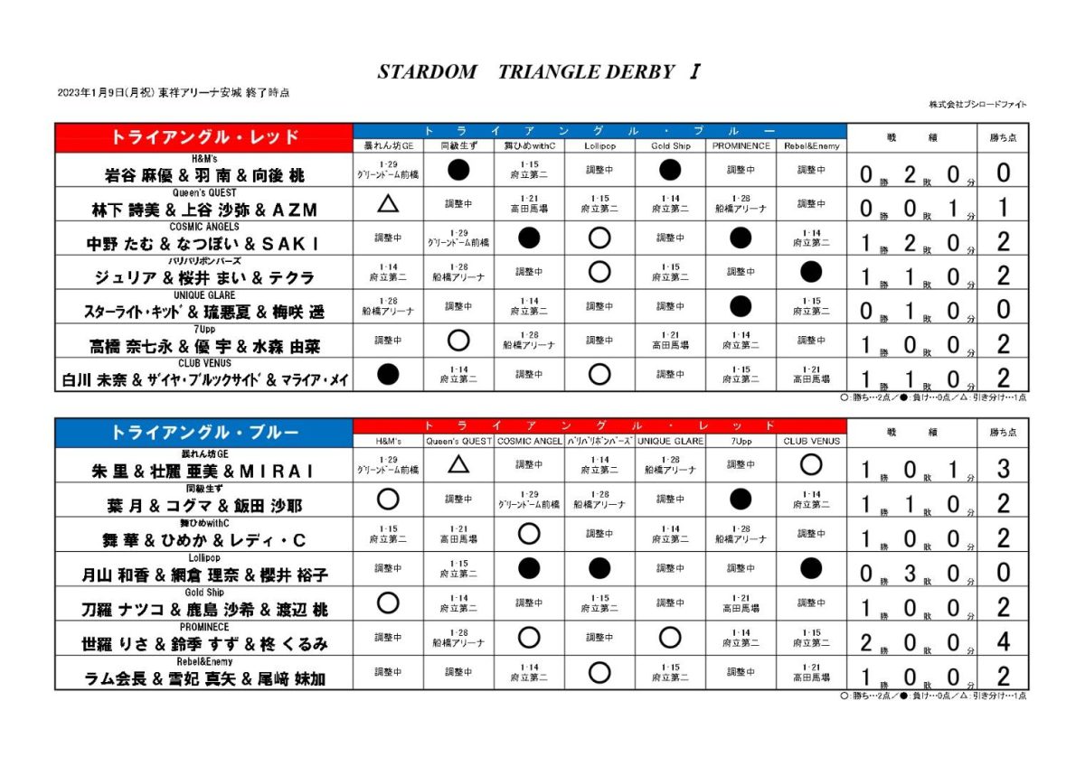 コズミックエンジェルズの中野たむが初の地元凱旋興行。中野はなつぽい&SAKIとのトリオでメインに出場し、月山和香&網倉理奈&櫻井裕子組とのコズエン同門対決に臨む。体調不良により1・6後楽園を欠場した中野だが、前日の1・8名古屋でカムバック、地元凱旋には間に合った。試合は6人タッグリーグ戦トライアングルダービーの公式戦でもあり、最後通牒を突きつけた月山との直接対決でもある。前日はプロミネンスとの公式戦で敗れてしまった中野組、月山の奮起を促しつつ、なつぽいとSAKIのアシストを得て凱旋をリーグ戦初白星で飾ることができるかどうか?