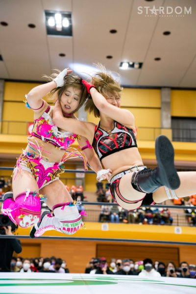 STARSの向後桃とドンナ・デル・モンドのテクラが初のシングルマッチで激突。向後にはチャレンジマッチ的なマッチメークでもあるが、世界の毒グモ相手に勝利を奪うことができるか。