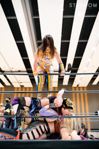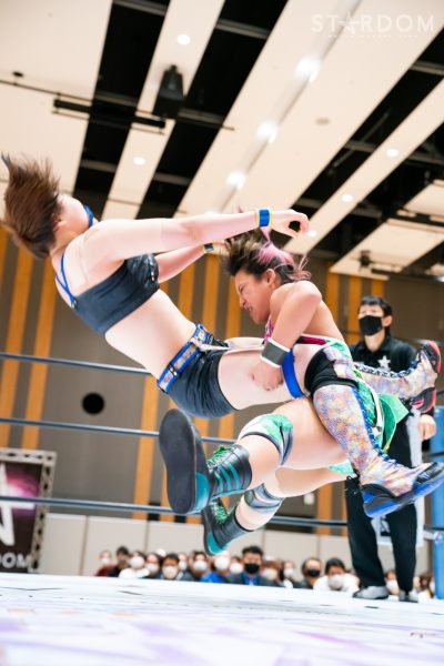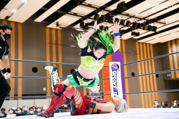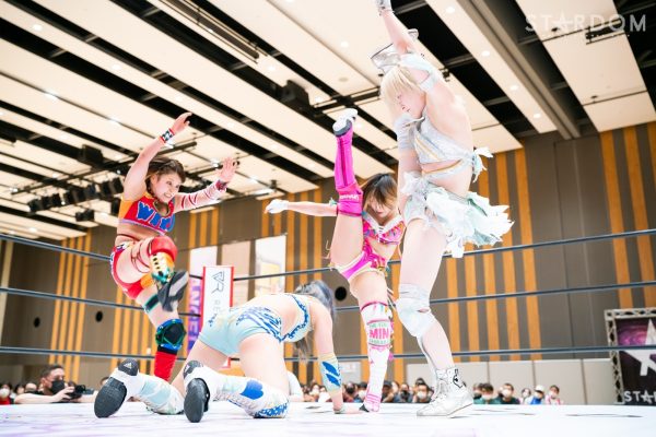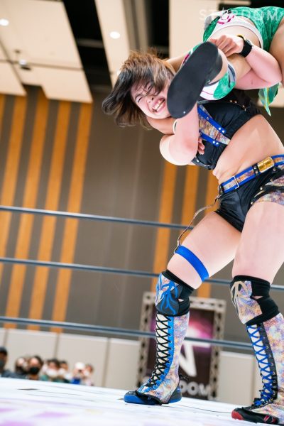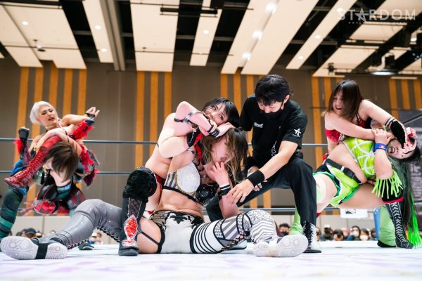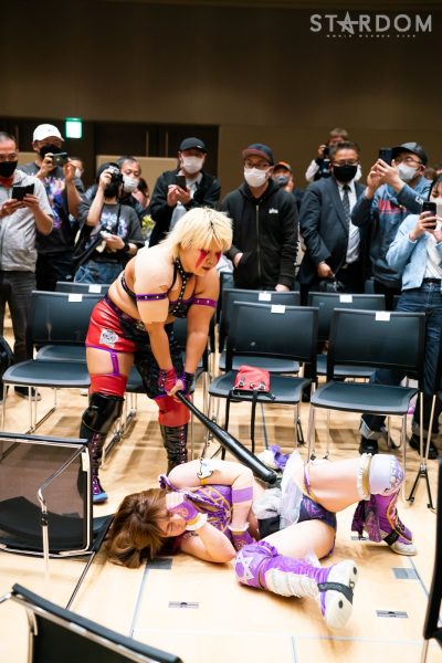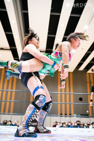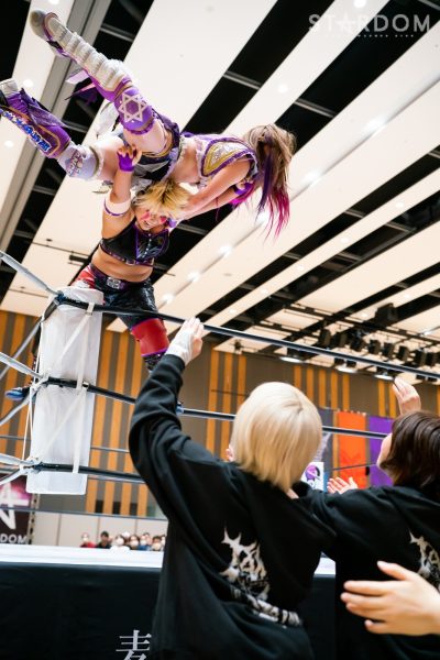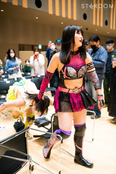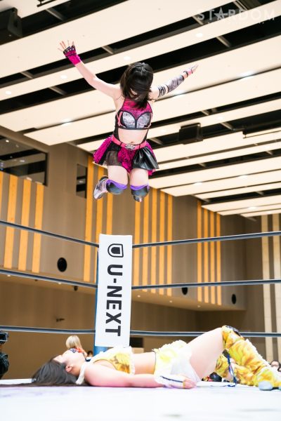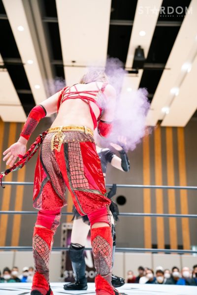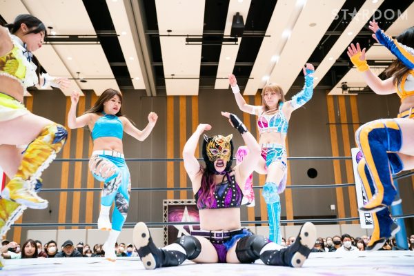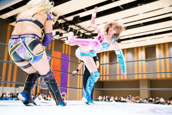 STARSの岩谷麻優&葉月&コグマ&羽南組と大江戸隊のスターライト・キッド&渡辺桃&琉悪夏&吏南組が8人タッグマッチで全面対決。STARSには羽南、大江戸隊には吏南が入っており、栃木県出身の2人による頑張りが試合のカギを握りそうだ。