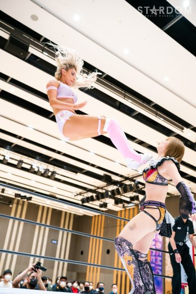 マライアがビッグブーツからコーナーに追い込み逆水平の連打。「ワタシガシンデレラ!」と言って桜井に詰め寄る。マライアは桜井を抱っこして旋回させるとバックブリーカー。桜井が張り手を打ち込みフロントキック。マライアが返すと、桜井はドラゴンスリーパー。マライアが逃れてバックの取り合いからバックドロップ。マライアはコーナーに上がりミサイルキック。桜井が返すと、マライアはパイルドライバーの体勢。桜井が切り返しドロップキック、フィッシャーマン。マライアが返して突進。桜井がかわしてエプロンに送り出す。桜井の突進を止めてマライアがエプロンに送り出す。エプロンでエルボーを打ち合い、マライアがビッグブーツ、コーナーに乗せられた桜井がヘッドバット。マライアがフランケンを狙うが桜井が切り返して蹴落とす。マライアが落下し桜井の勝利がアナウンスされた。