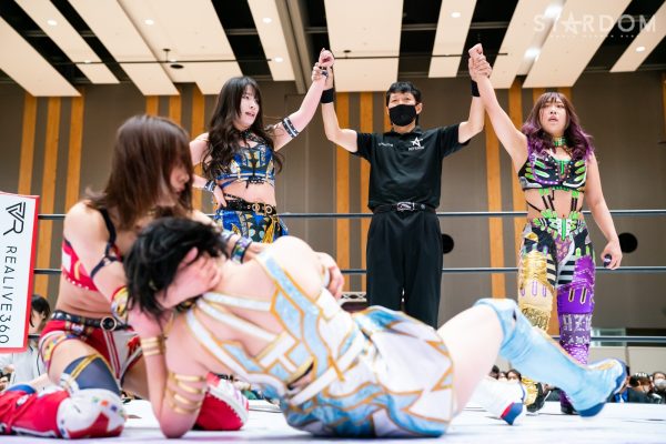 さくらと向後が握手を求めるとAZM組もしっかり応じる。さくらが向後に送り出されて先発に。対するは栃木県出身の妃南。腕の取り合いでスタートし。妃南がヘッドロックでグラウンドにもっていく。ブレイクして互いにタッチ。AZMと向後がロープワークを展開しAZMがアームホイップ、向後もやり返す。さくらが入りAZMをロープに振るが妃南が加わりダブルのドロップキック。AZMはさくらにヘアーホイップ。妃南が気合を入れてさくらにボディースラム。キャメルクラッチにとらえると、AZMが前方からドロップキック。AZMがさくらにサッカーボールキック。さくらがエルボーで向かっていくとAZMが挑発して受けて立つ。AZMがロープに振るとさくらがドロップキックもかわされる。しかしさくらはボディースラムで叩きつけ向後に託す。向後はコルバタで2人をロープに追い込み619、AZMにボディーアタック。AZMが返すと向後はフィニッシュを宣言しネクターピーチ狙い。AZMが切り返しエルボーの打ち合いへ。AZMがミサイルキックからワキ固め、ドロップキック。AZMはフィニッシュを予告しダイビングフットスタンプ。しかし向後がかわしてトラースキック。ブレーンバスター狙いはAZMが反対に投げつける。両者ダウン状態からタッチし、さくらが妃南にドロップキック4連打。しかし妃南が一発で吹っ飛ばして逆エビ固め。妃南がロープに振ると向後がスワンダイブ式ミサイルキックで援護。さくらがハイキックを食らわしボディースラム、ハイキック。妃南が串刺し攻撃をかわしAZMとキックの競演。妃南がさくらを投げつけるがカットされる。妃南はさくらに逆エビ固め。さくらはロープに接近も妃南が中央に戻して締め上げる。さくらがなんとかエスケープ。妃南が投げようとするとさくらが丸め込みの連続。さくらが突進すると妃南がネックブリーカー。さくらが返すとハイキック。AZMがハイキックで援護し妃南が払い腰。返したさくらに妃南はラブカへ。3カウントが入り、妃南がさくらをフォールした。