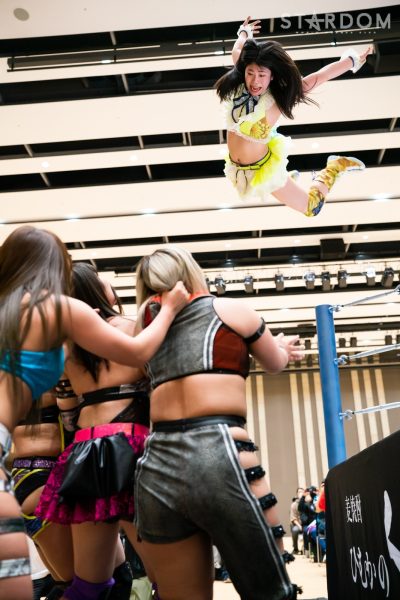 葉月が先発を志願しキッドと対峙。バックの取り合いからロープワークの攻防。キッドがコルバタもドロップキックがかわされる。葉月がドロップキックを決めてSTARSでキッドを捕獲すると連係で攻撃、4方向からドロップキックを放つ。羽南がキッドに向けてダッシュするが、リング下から足を引かれて場外戦に突入。羽南がリングに戻され、キッドがその場飛びムーンサルトプレス。琉悪夏が羽南にビッグブーツ。羽南が向かっていくが琉悪夏が首を絞めてストップ。しかし羽南が払い腰で琉悪夏をマットに叩きつけ、コグマに託す。コグマは吏南と琉悪夏を鉢合わせにしてコーナーに追い込むと、コグマと葉月で串刺し攻撃、大江戸隊をコーナーに追い込みまとめて踏みつける。琉悪夏が返すと、コグマにショルダータックル、セントーン。桃がコグマにミドルキック。コグマがカウンターで桃にドロップキック。岩谷が桃にサッカーボールキック、ハイキック。桃が蒼魔刀も岩谷が返す。岩谷が桃にジャーマン、桃が投げっぱなしテキーラ、岩谷がトラースキックも桃のハイキックでダウン。羽南と吏南がリングイン。吏南がドロップキックをかわすと、羽南とエルボーの応酬。吏南が羽南を走らせずドロップキック。吏南が羽南をコーナーに追い込みダブルニーアタック、羽南が反転してクロスボディーアタック。STARSが吏南を捕獲し合体フェースクラッシャー。羽南がフィニッシュを宣言し吏南にバックドロップ狙い。大江戸隊が乱入し次々と串刺し攻撃。吏南が羽南にフィッシャーマン。乱戦からSTARSを場外に送り出すとキッドがケブラーダで宙を舞う。羽南をリングに戻すと吏南がダイビングダブルニードロップ。しかしコグマのカットが間に合う。吏南は羽南を引き起こすと、ピンクデビル狙い。羽南が切り返し丸め込むが2カウント。吏南が卍固めを仕掛けグラウンドに移行。しかし葉月がカット成功。乱戦から岩谷が羽南を鼓舞。羽南が立ち上がりコーナーから場外へプランチャを敢行。吏南をリングに戻すとフィニッシュを宣言してバックドロップ狙い。吏南が切り返しジャックナイフで押さえ込むが岩谷がカット。羽南が吏南を抑えてSTARSがロケット発射。羽南が「終わり!」と絶叫しバックドロップホールド。吏南が返せず羽南が勝利した。