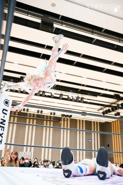 林下詩美&上谷沙弥&&天咲光由組のクイーンズクエストとなつぽい&白川未奈&月山和香組のコズミックエンジェルズによる6人タッグマッチ。4・23横浜アリーナで行われる上谷と白川の前哨戦であると同時に。3・25横浜で待望の初勝利を挙げた月山にはコズエン残留を決めて最初のユニット戦でもある。3・25横浜翌日のシンデレラ・トーナメントでは急きょ抜擢され1回戦突破、シングル初勝利まで挙げた月山が“3連勝”となるか。上谷と白川の駆け引きを中心に見どころ豊富な試合となりそうだ。