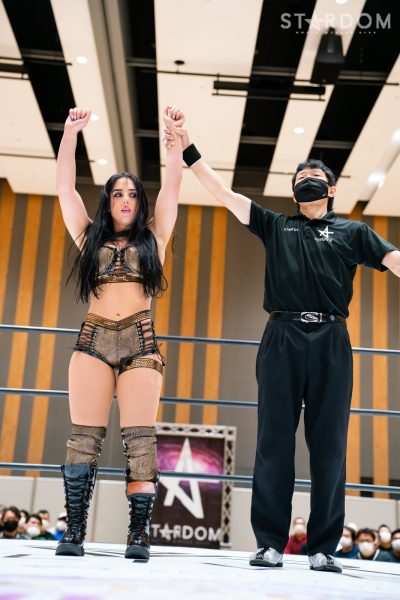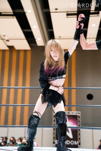 羽南「ライトキューブのこけら落とし、私がメインで勝ちました。吏南と闘えてよかったです。ゆくゆくは3人で、吏南と妃南と羽南三姉妹でアーティストのベルトも取りにいきたいと思っているので、お互い成長しあえたらなと思います。今日はSTARSのみなさんと闘えてよかったです。ありがとうございます」