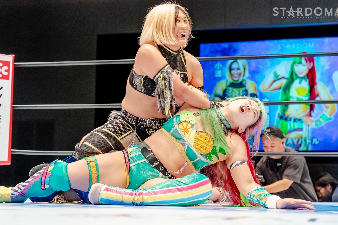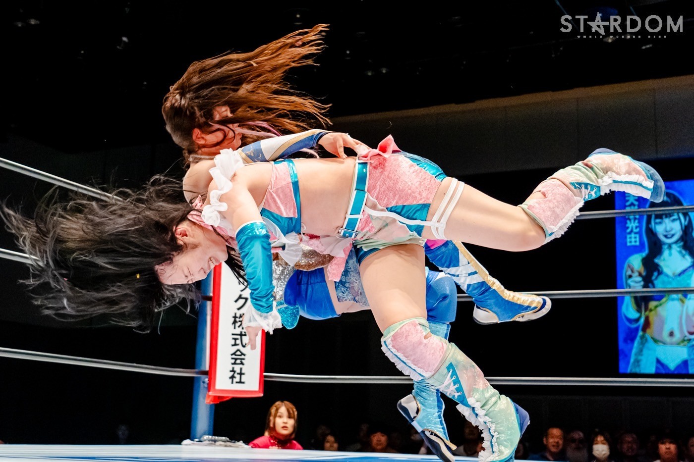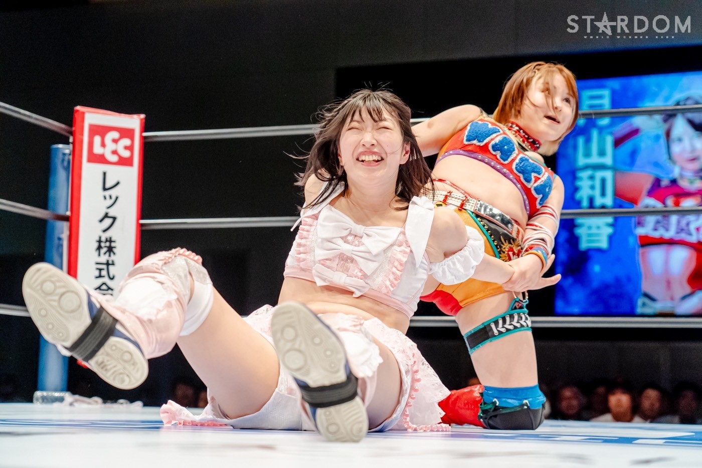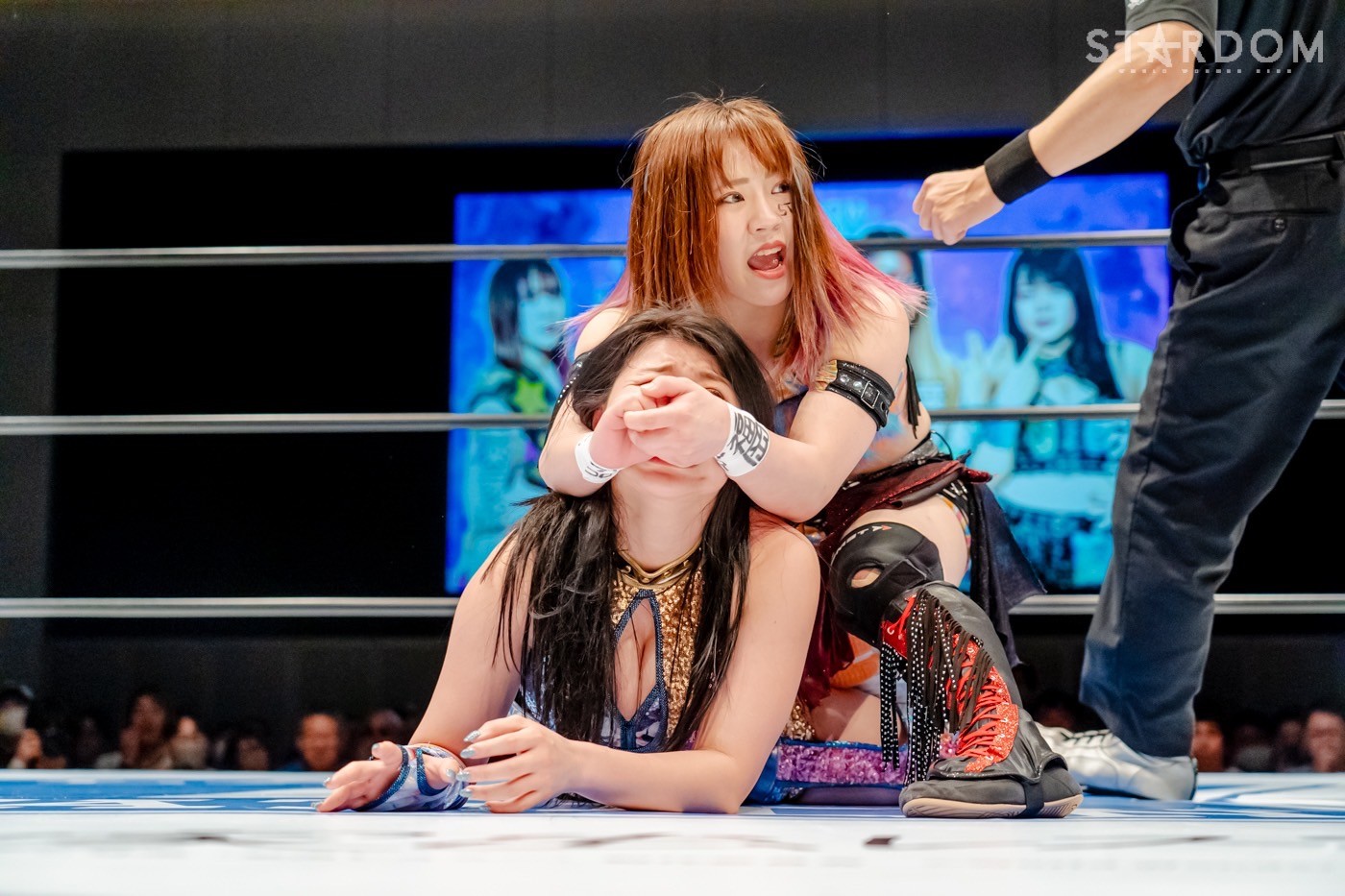 小波、水森由菜、HANAKOが一度に闘う3WAYマッチ。前日の熊本大会は水森にとってスターダムで2度目の凱旋だった。同大会ではコズミックエンジェルズの安納サオリとのシングル初対決でメンバー全員とのシングルを経験。小波、HANAKOと対戦する今大会は、水森新章のスタートとなりそうだ。