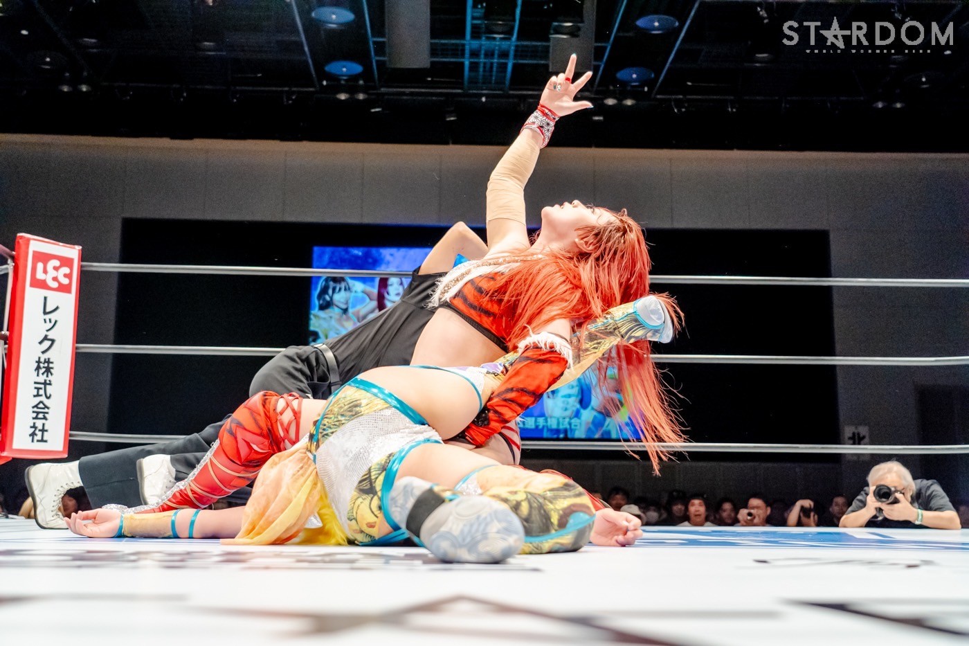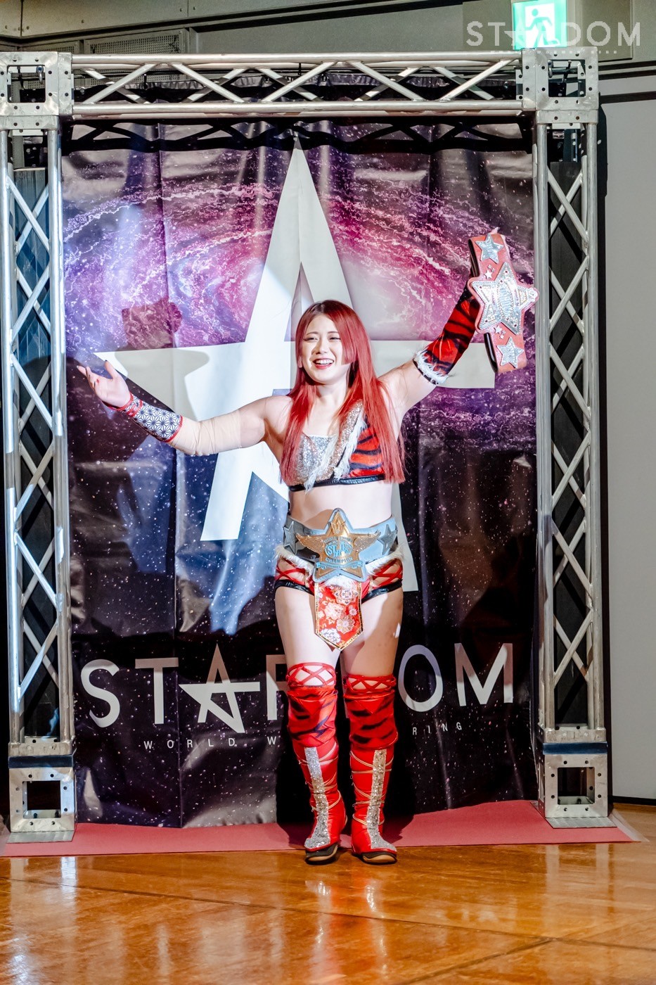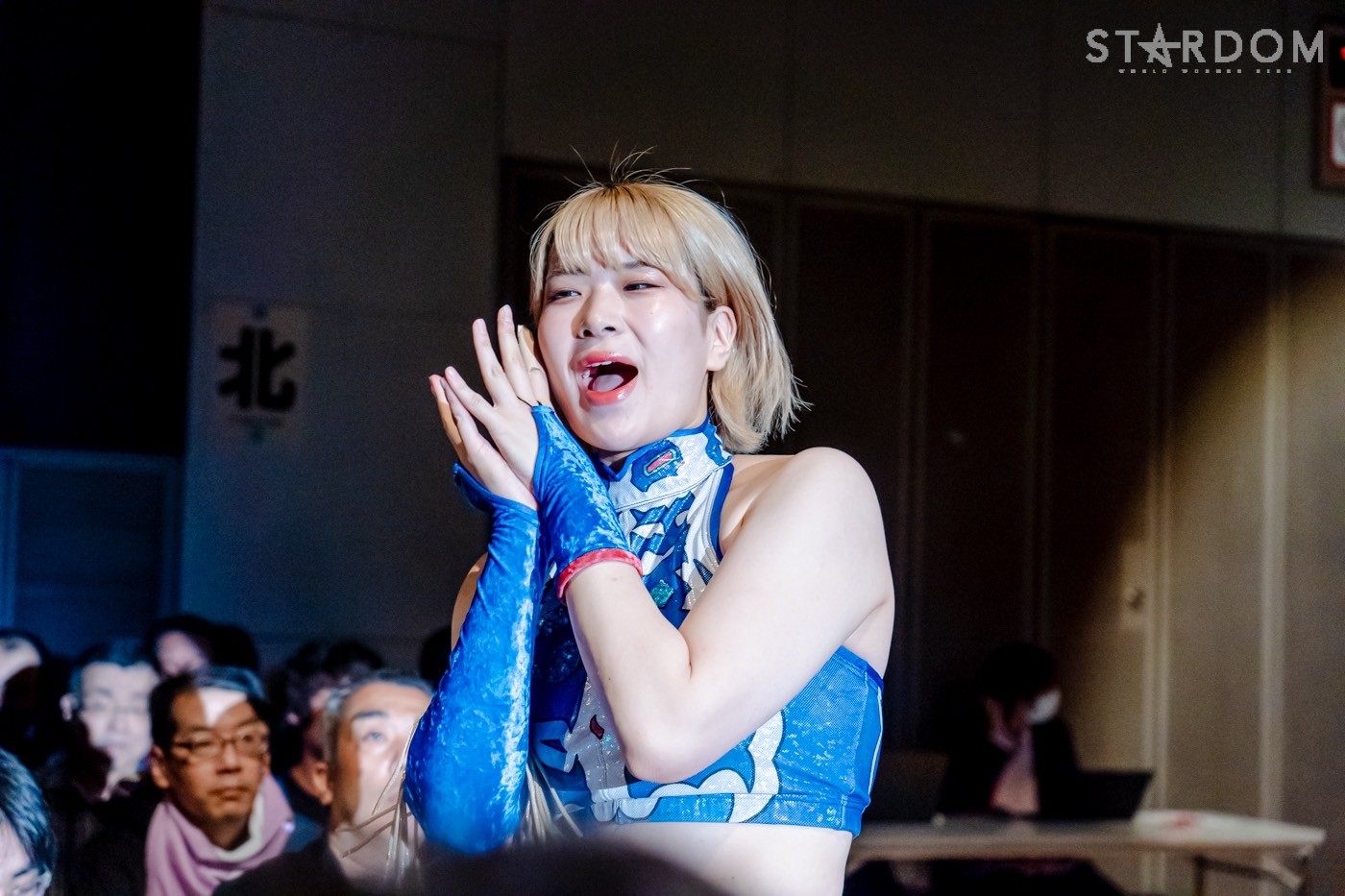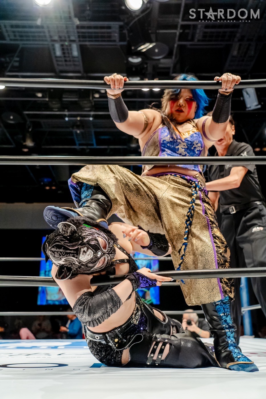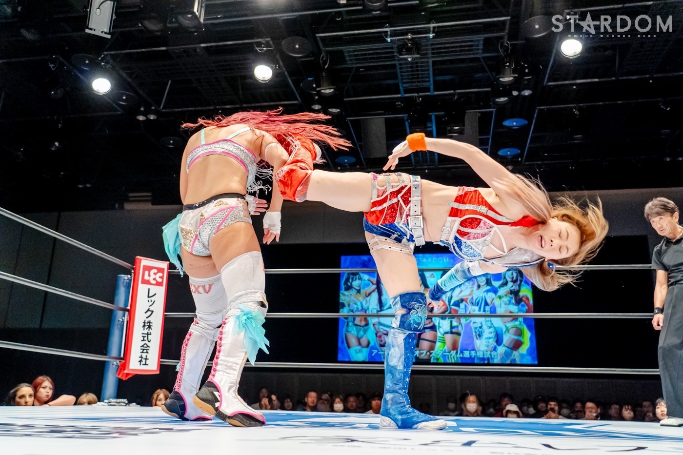 小波、水森由菜、HANAKOが一度に闘う3WAYマッチ。前日の熊本大会は水森にとってスターダムで2度目の凱旋だった。同大会ではコズミックエンジェルズの安納サオリとのシングル初対決でメンバー全員とのシングルを経験。小波、HANAKOと対戦する今大会は、水森新章のスタートとなりそうだ。