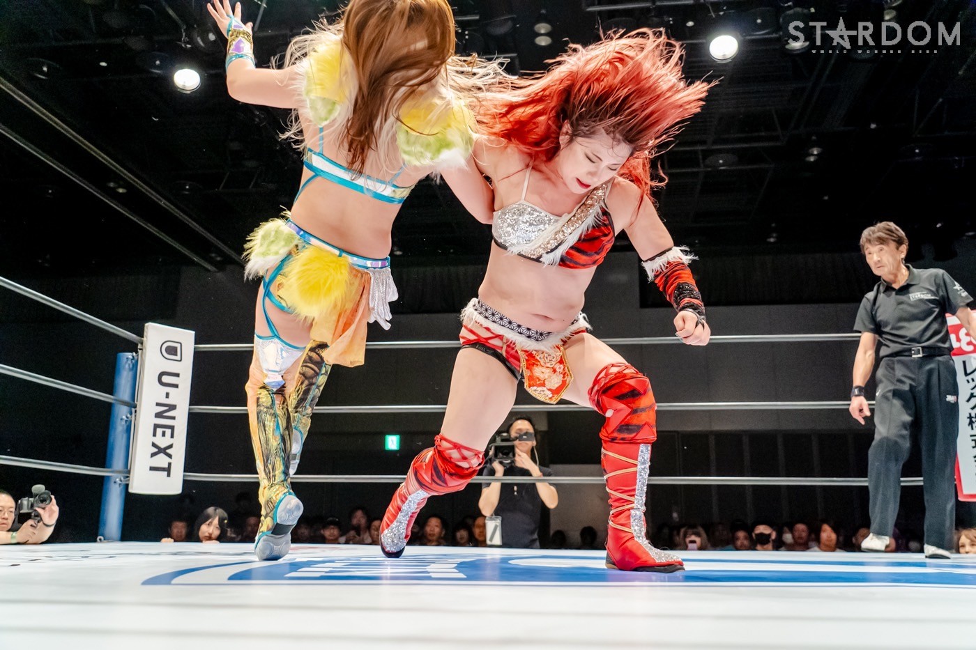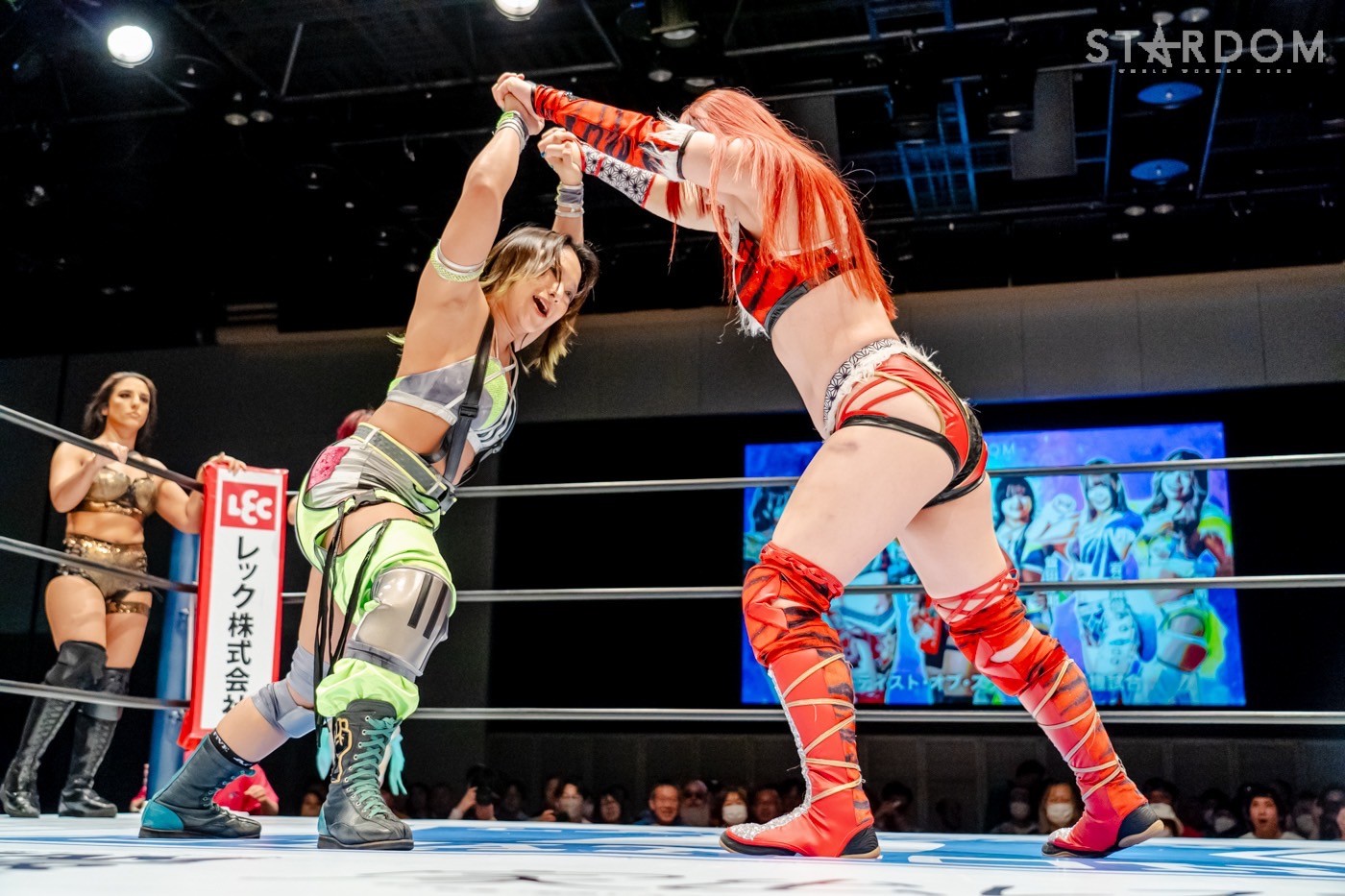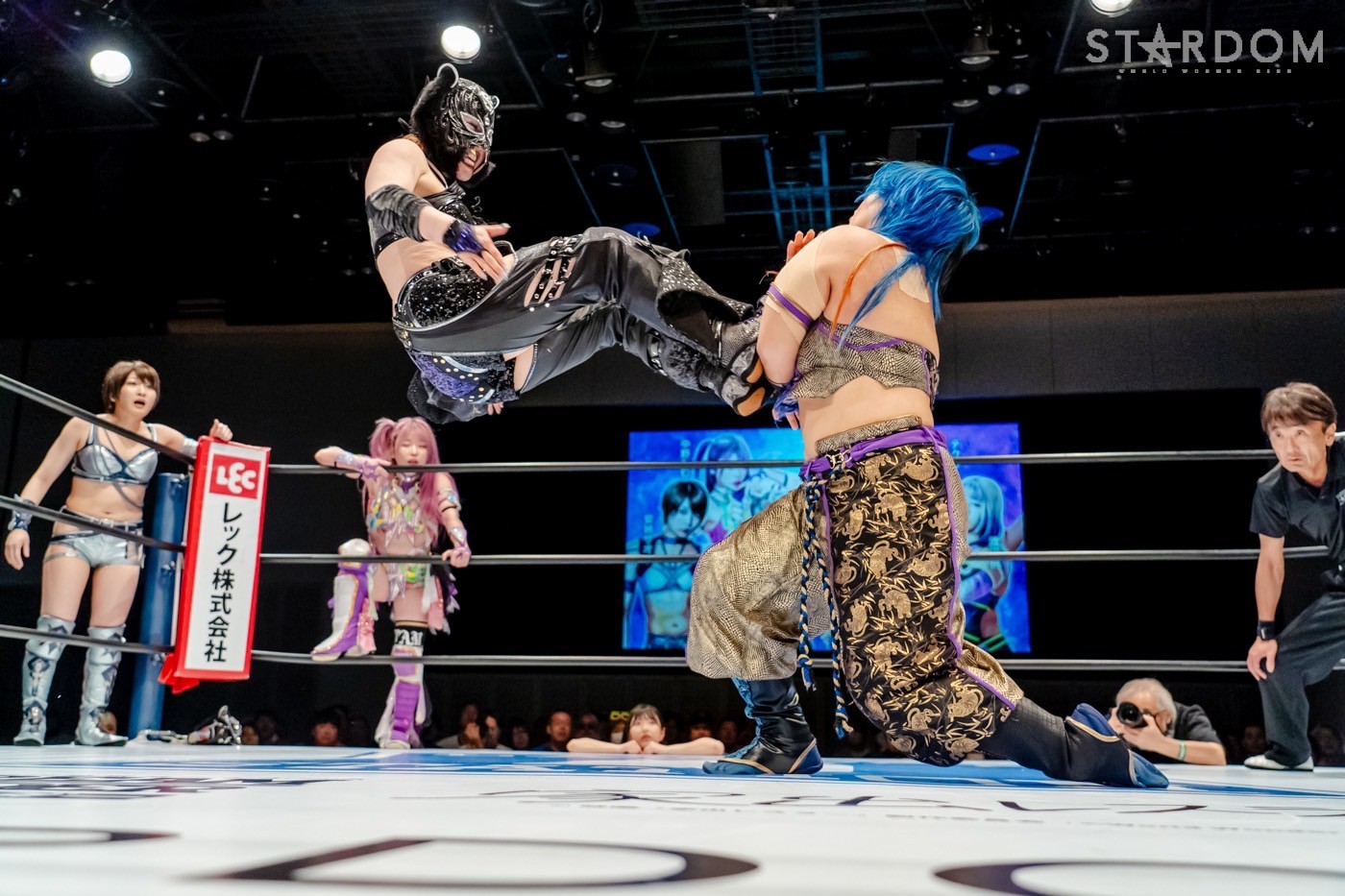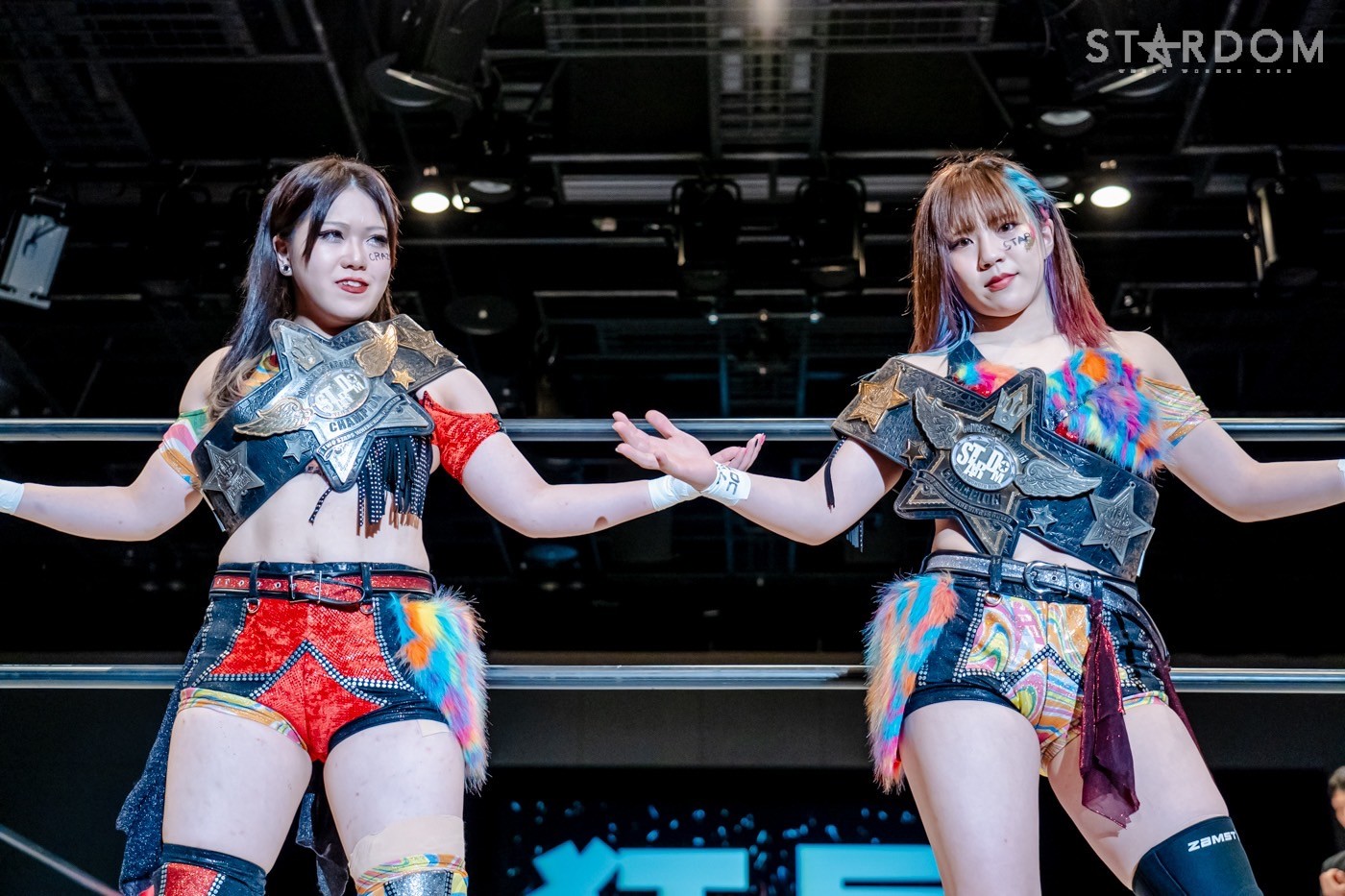 舞華と飯田が先発に名乗り。手四つでの力比べでスタートし、ロックアップでも力比べ。舞華がヘッドロックに取ると、飯田がロープに振りショルダーをぶつけ合う。舞華が「オマエがいけ」と指示。飯田が「オマエなんか倒してやるよ」とショルダータックル。舞華がショルダータックルで飯田を吹っ飛ばすが、STARSが連係で舞華を攻める。羽南が舞華の後方からニーアタック、ドロップキック。舞華が先を読んでショルダータックル。EXVがトリオで羽南に変則ドロップキック。舞華はボディースラムを羽南に連発。白川が羽南のヒザにドロップキック、サッカーボールキック。岩谷がカットし羽南と合体も、まとめてネックブリーカーを食らう。ジーナが羽南に串刺しボディーアタック、串刺しドロップキック。羽南が返すと、ジーナがヘッドシザーズ。舞華と白川もサブミッションでカットを防ぐ。羽南がエスケープすると、ジーナの突進を止めてマットに叩きつける。飯田がジーナへブレーンバスターの構え。舞華がカットするが飯田がジーナを舞華の上に投げ捨てる。さらにまとめてスライディングラリアット。白川が入るも飯田がショルダータックル。STARSがトリオでドロップキック。飯田とジーナがチョップの打ち合い。ジーナが走ろうとする飯田を止めて変型ブレーンバスター。白川が飯田にネックブリーカー、串刺しで突進。飯田がかわすが白川は延髄斬り、DDT。飯田が返すと、白川はインプラントDDT狙い。岩谷がカットし、飯田がジャンピングチョップ。岩谷が白川に串刺しアタック、ドロップキック。蹴りのかわし合いからエルボーが交錯、岩谷がトラースキック、白川がバックブロー、バックドロップ。ハイキックが交錯し、岩谷と白川がダウン。10分経過。羽南が舞華にエルボー連打。白川が串刺しエルボー、飯田も続き、バックエルボーのサンドイッチ攻撃。羽南は舞華にエルボースマッシュ、コーナーに上がるとジーナがカットし雪崩式パワースラム。舞華が滞空時間の長いブレーンバスターも羽南が返す。羽南が払い腰、STARSが合体フェースクラッシャー。羽南が舞華に突進するがジーナが阻止。EXVでビーナスタワーを敢行。舞華がカバーするが岩谷がカット。岩谷と飯田がドロップキックでEXVを場外に送り出す。岩谷がトペスイシーダで飛び、羽南が舞華にランニングエルボースマッシュ、フェイマサ―。15分経過。舞華が返すと、STARSが合体、羽南がブロックバスターホールド。羽南はフィニッシュを宣言し、舞華にバックドロップの構え。白川がカットし舞華と合体、羽南をマットに叩きつけ、舞華が山茶華。乱戦から羽南がブロックバスター、舞華がラリアット。羽南が炎華落としを切り返しセブンティーン。舞華が返すと、羽南の突進をジーナと舞華で止めて前方に叩きつける。そして舞華がみちのくドライバー。羽南が返せず王者組の防衛となった。