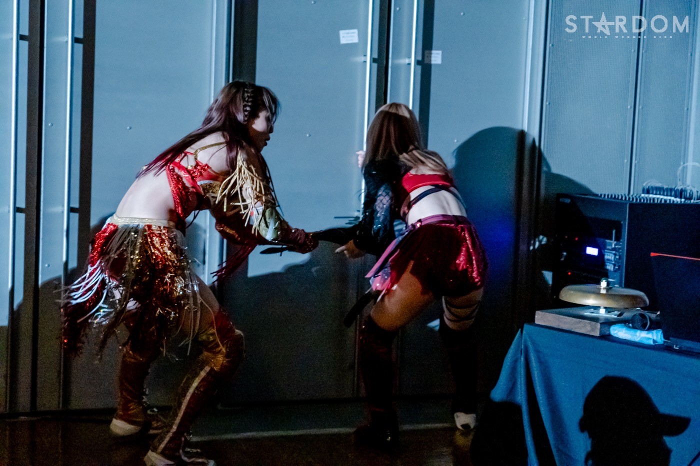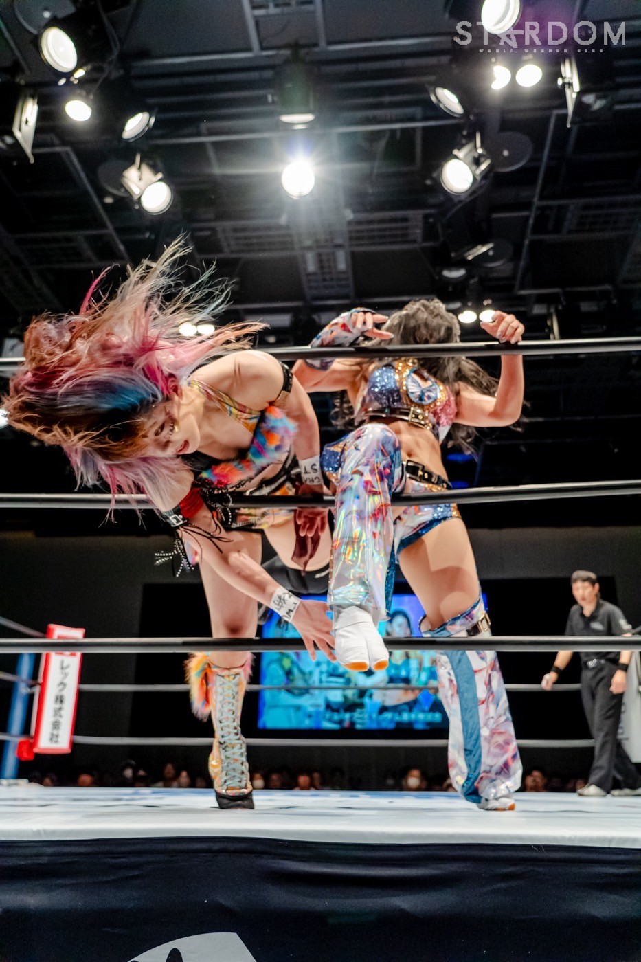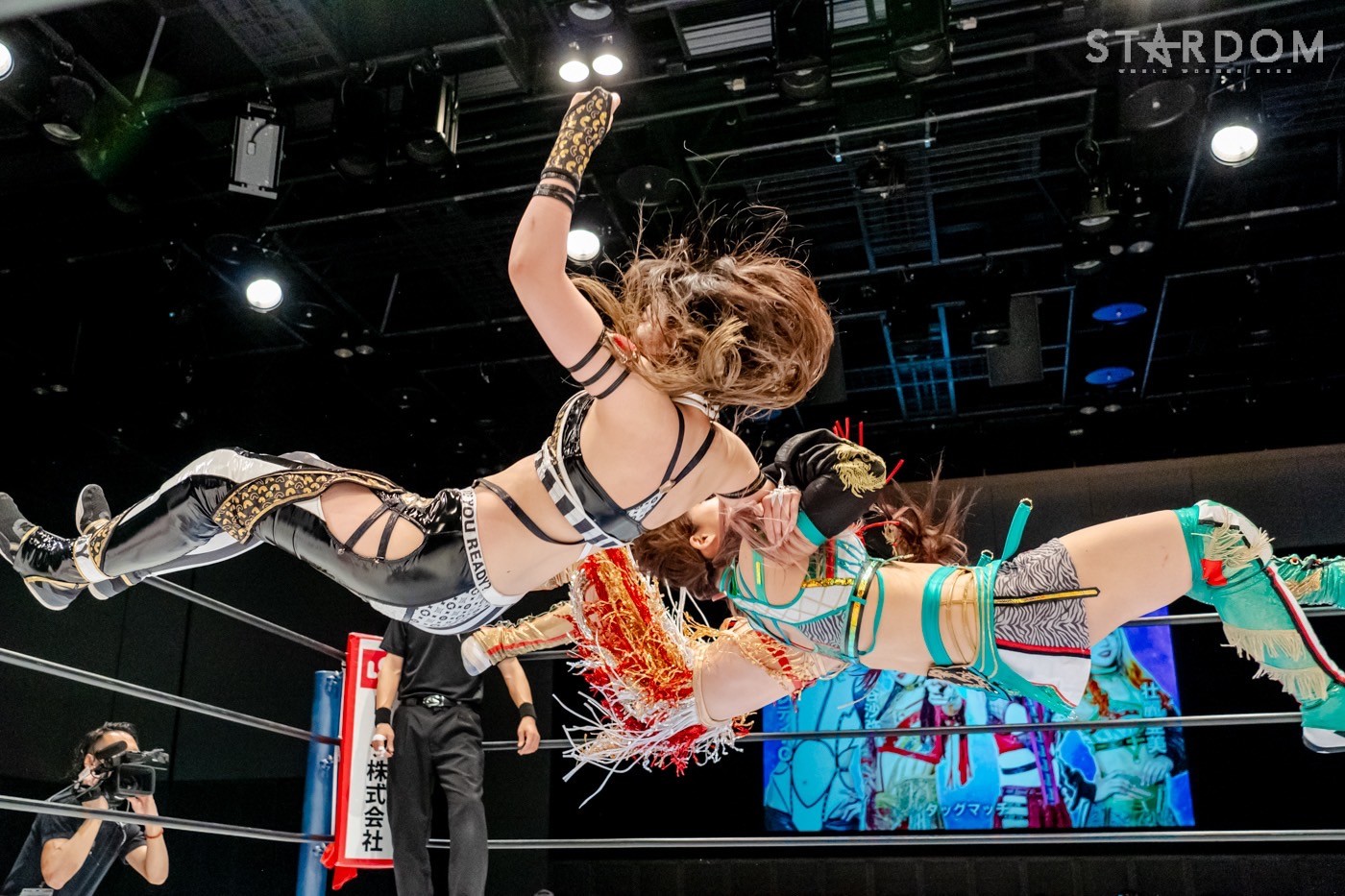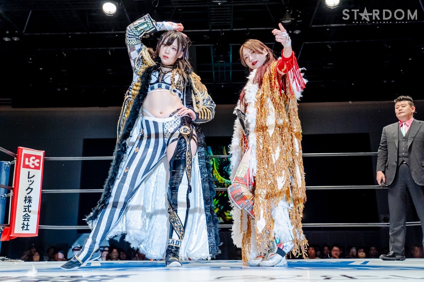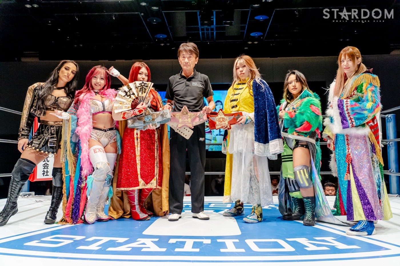 舞華と飯田が先発に名乗り。手四つでの力比べでスタートし、ロックアップでも力比べ。舞華がヘッドロックに取ると、飯田がロープに振りショルダーをぶつけ合う。舞華が「オマエがいけ」と指示。飯田が「オマエなんか倒してやるよ」とショルダータックル。舞華がショルダータックルで飯田を吹っ飛ばすが、STARSが連係で舞華を攻める。羽南が舞華の後方からニーアタック、ドロップキック。舞華が先を読んでショルダータックル。EXVがトリオで羽南に変則ドロップキック。舞華はボディースラムを羽南に連発。白川が羽南のヒザにドロップキック、サッカーボールキック。岩谷がカットし羽南と合体も、まとめてネックブリーカーを食らう。ジーナが羽南に串刺しボディーアタック、串刺しドロップキック。羽南が返すと、ジーナがヘッドシザーズ。舞華と白川もサブミッションでカットを防ぐ。羽南がエスケープすると、ジーナの突進を止めてマットに叩きつける。飯田がジーナへブレーンバスターの構え。舞華がカットするが飯田がジーナを舞華の上に投げ捨てる。さらにまとめてスライディングラリアット。白川が入るも飯田がショルダータックル。STARSがトリオでドロップキック。飯田とジーナがチョップの打ち合い。ジーナが走ろうとする飯田を止めて変型ブレーンバスター。白川が飯田にネックブリーカー、串刺しで突進。飯田がかわすが白川は延髄斬り、DDT。飯田が返すと、白川はインプラントDDT狙い。岩谷がカットし、飯田がジャンピングチョップ。岩谷が白川に串刺しアタック、ドロップキック。蹴りのかわし合いからエルボーが交錯、岩谷がトラースキック、白川がバックブロー、バックドロップ。ハイキックが交錯し、岩谷と白川がダウン。10分経過。羽南が舞華にエルボー連打。白川が串刺しエルボー、飯田も続き、バックエルボーのサンドイッチ攻撃。羽南は舞華にエルボースマッシュ、コーナーに上がるとジーナがカットし雪崩式パワースラム。舞華が滞空時間の長いブレーンバスターも羽南が返す。羽南が払い腰、STARSが合体フェースクラッシャー。羽南が舞華に突進するがジーナが阻止。EXVでビーナスタワーを敢行。舞華がカバーするが岩谷がカット。岩谷と飯田がドロップキックでEXVを場外に送り出す。岩谷がトペスイシーダで飛び、羽南が舞華にランニングエルボースマッシュ、フェイマサ―。15分経過。舞華が返すと、STARSが合体、羽南がブロックバスターホールド。羽南はフィニッシュを宣言し、舞華にバックドロップの構え。白川がカットし舞華と合体、羽南をマットに叩きつけ、舞華が山茶華。乱戦から羽南がブロックバスター、舞華がラリアット。羽南が炎華落としを切り返しセブンティーン。舞華が返すと、羽南の突進をジーナと舞華で止めて前方に叩きつける。そして舞華がみちのくドライバー。羽南が返せず王者組の防衛となった。