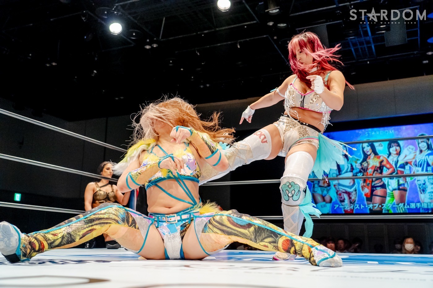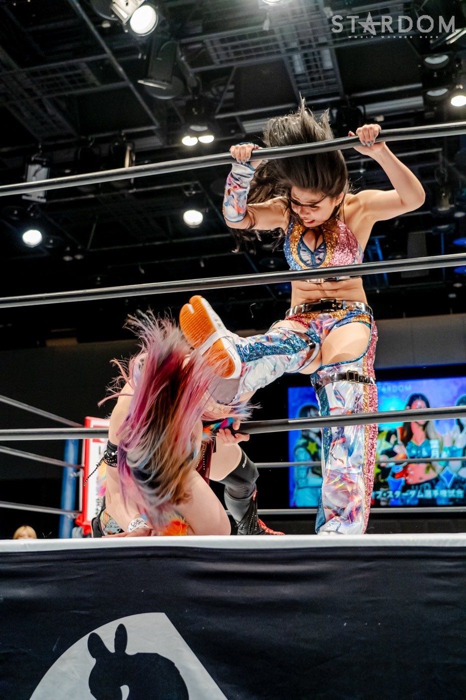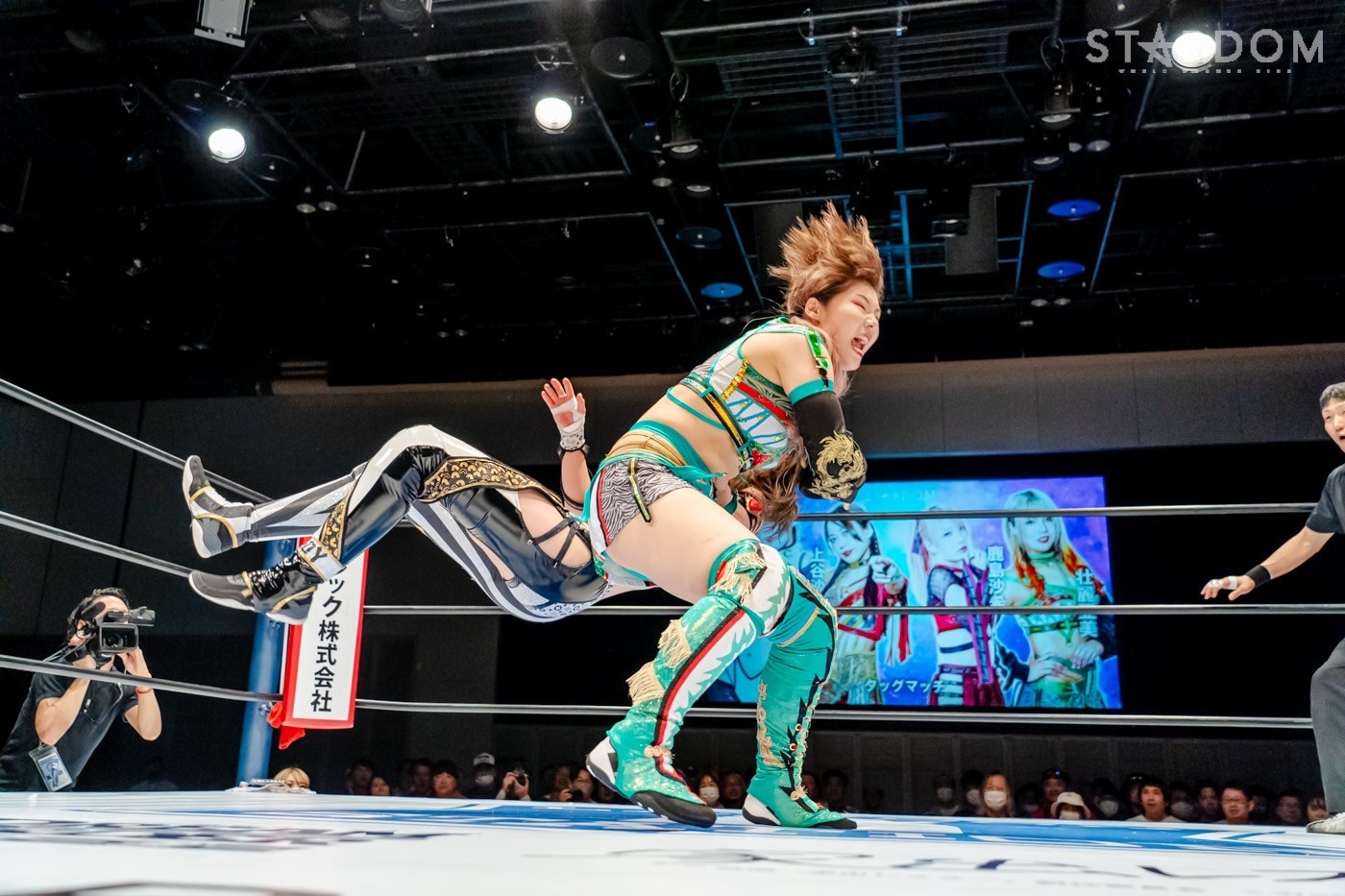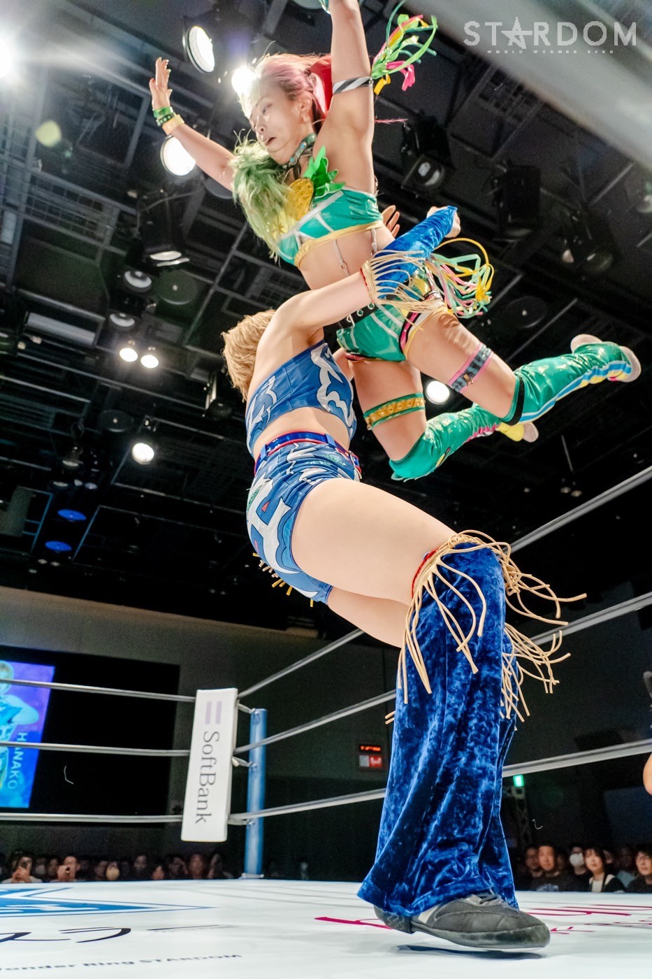 舞華と飯田が先発に名乗り。手四つでの力比べでスタートし、ロックアップでも力比べ。舞華がヘッドロックに取ると、飯田がロープに振りショルダーをぶつけ合う。舞華が「オマエがいけ」と指示。飯田が「オマエなんか倒してやるよ」とショルダータックル。舞華がショルダータックルで飯田を吹っ飛ばすが、STARSが連係で舞華を攻める。羽南が舞華の後方からニーアタック、ドロップキック。舞華が先を読んでショルダータックル。EXVがトリオで羽南に変則ドロップキック。舞華はボディースラムを羽南に連発。白川が羽南のヒザにドロップキック、サッカーボールキック。岩谷がカットし羽南と合体も、まとめてネックブリーカーを食らう。ジーナが羽南に串刺しボディーアタック、串刺しドロップキック。羽南が返すと、ジーナがヘッドシザーズ。舞華と白川もサブミッションでカットを防ぐ。羽南がエスケープすると、ジーナの突進を止めてマットに叩きつける。飯田がジーナへブレーンバスターの構え。舞華がカットするが飯田がジーナを舞華の上に投げ捨てる。さらにまとめてスライディングラリアット。白川が入るも飯田がショルダータックル。STARSがトリオでドロップキック。飯田とジーナがチョップの打ち合い。ジーナが走ろうとする飯田を止めて変型ブレーンバスター。白川が飯田にネックブリーカー、串刺しで突進。飯田がかわすが白川は延髄斬り、DDT。飯田が返すと、白川はインプラントDDT狙い。岩谷がカットし、飯田がジャンピングチョップ。岩谷が白川に串刺しアタック、ドロップキック。蹴りのかわし合いからエルボーが交錯、岩谷がトラースキック、白川がバックブロー、バックドロップ。ハイキックが交錯し、岩谷と白川がダウン。10分経過。羽南が舞華にエルボー連打。白川が串刺しエルボー、飯田も続き、バックエルボーのサンドイッチ攻撃。羽南は舞華にエルボースマッシュ、コーナーに上がるとジーナがカットし雪崩式パワースラム。舞華が滞空時間の長いブレーンバスターも羽南が返す。羽南が払い腰、STARSが合体フェースクラッシャー。羽南が舞華に突進するがジーナが阻止。EXVでビーナスタワーを敢行。舞華がカバーするが岩谷がカット。岩谷と飯田がドロップキックでEXVを場外に送り出す。岩谷がトペスイシーダで飛び、羽南が舞華にランニングエルボースマッシュ、フェイマサ―。15分経過。舞華が返すと、STARSが合体、羽南がブロックバスターホールド。羽南はフィニッシュを宣言し、舞華にバックドロップの構え。白川がカットし舞華と合体、羽南をマットに叩きつけ、舞華が山茶華。乱戦から羽南がブロックバスター、舞華がラリアット。羽南が炎華落としを切り返しセブンティーン。舞華が返すと、羽南の突進をジーナと舞華で止めて前方に叩きつける。そして舞華がみちのくドライバー。羽南が返せず王者組の防衛となった。
