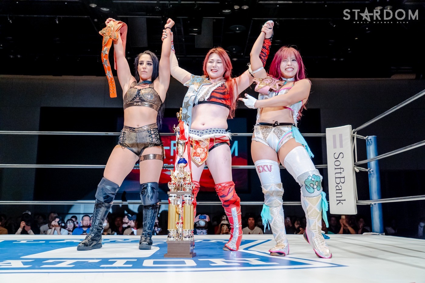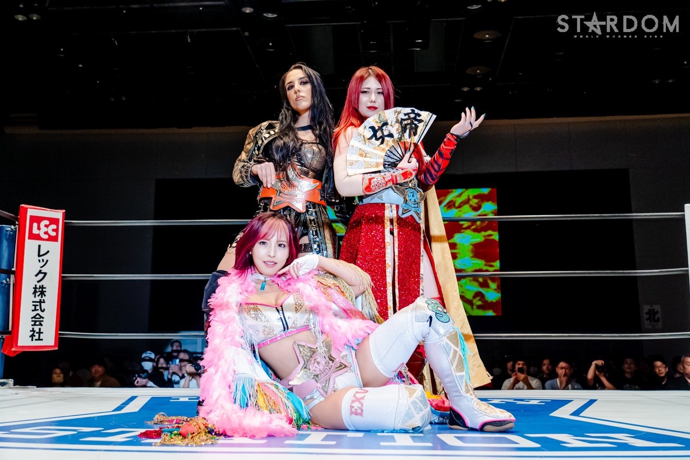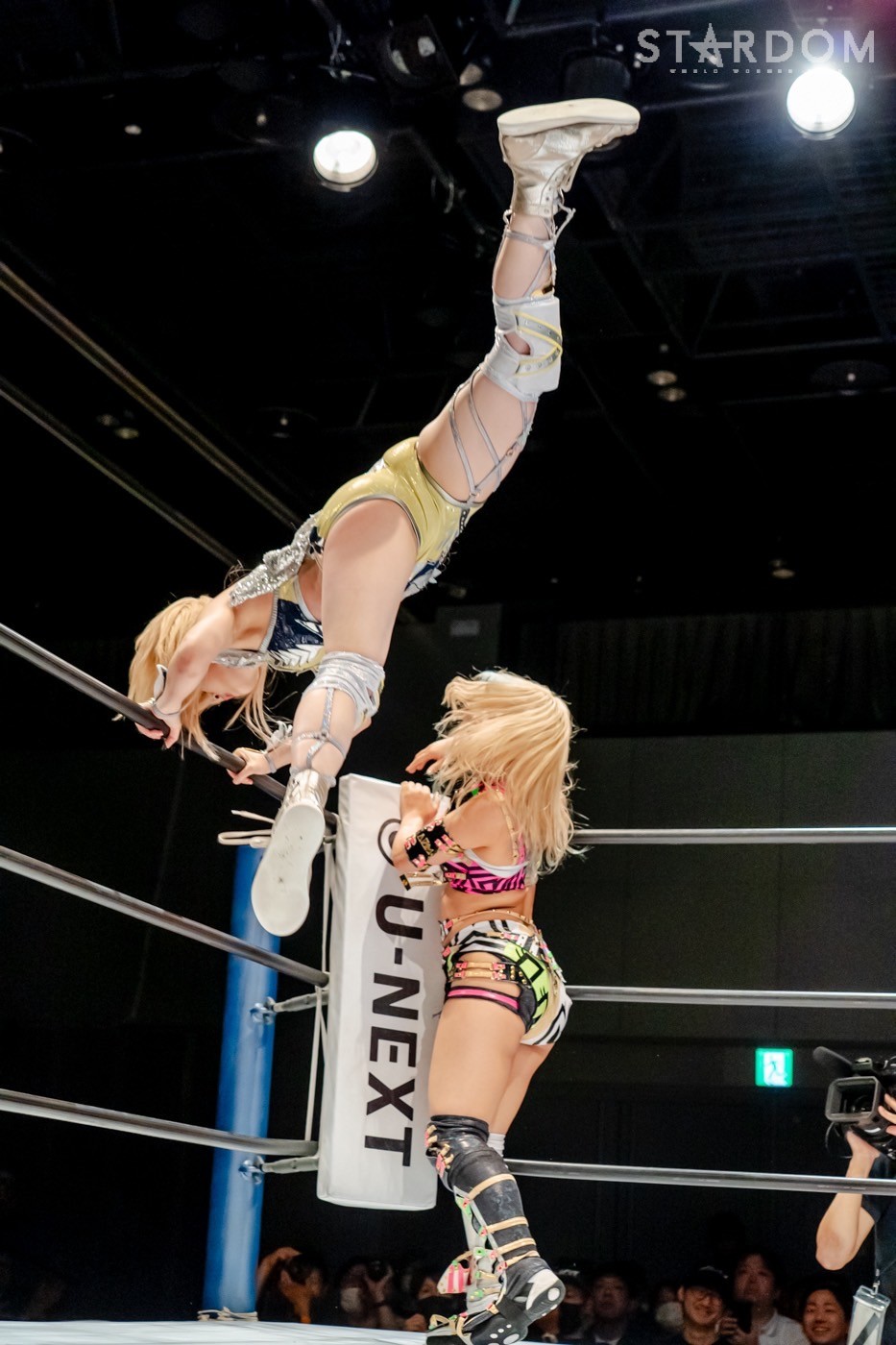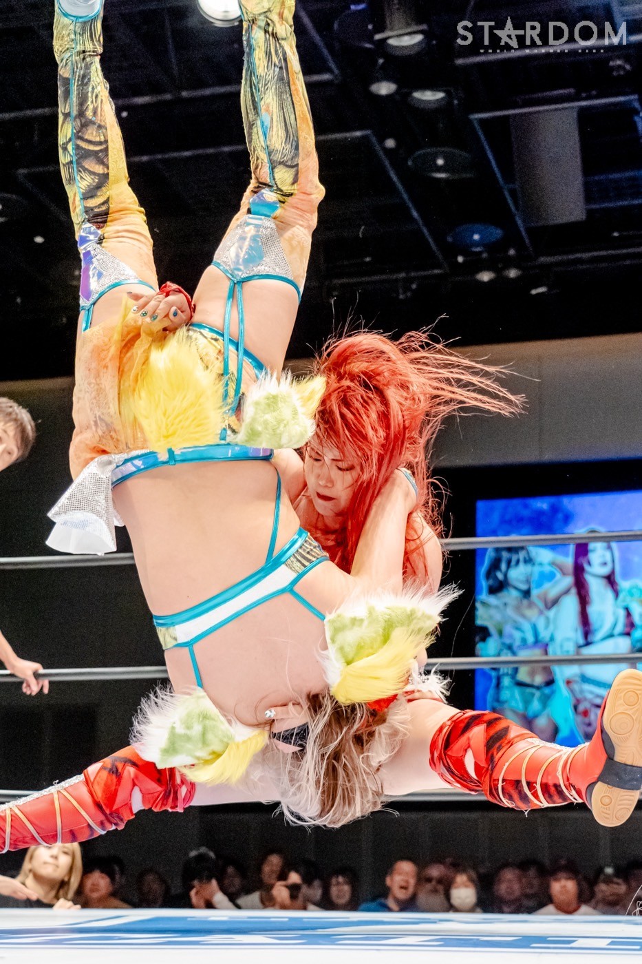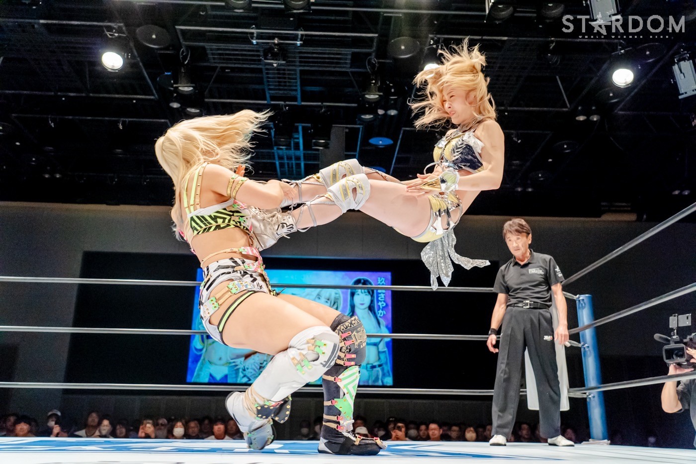 舞華と飯田が先発に名乗り。手四つでの力比べでスタートし、ロックアップでも力比べ。舞華がヘッドロックに取ると、飯田がロープに振りショルダーをぶつけ合う。舞華が「オマエがいけ」と指示。飯田が「オマエなんか倒してやるよ」とショルダータックル。舞華がショルダータックルで飯田を吹っ飛ばすが、STARSが連係で舞華を攻める。羽南が舞華の後方からニーアタック、ドロップキック。舞華が先を読んでショルダータックル。EXVがトリオで羽南に変則ドロップキック。舞華はボディースラムを羽南に連発。白川が羽南のヒザにドロップキック、サッカーボールキック。岩谷がカットし羽南と合体も、まとめてネックブリーカーを食らう。ジーナが羽南に串刺しボディーアタック、串刺しドロップキック。羽南が返すと、ジーナがヘッドシザーズ。舞華と白川もサブミッションでカットを防ぐ。羽南がエスケープすると、ジーナの突進を止めてマットに叩きつける。飯田がジーナへブレーンバスターの構え。舞華がカットするが飯田がジーナを舞華の上に投げ捨てる。さらにまとめてスライディングラリアット。白川が入るも飯田がショルダータックル。STARSがトリオでドロップキック。飯田とジーナがチョップの打ち合い。ジーナが走ろうとする飯田を止めて変型ブレーンバスター。白川が飯田にネックブリーカー、串刺しで突進。飯田がかわすが白川は延髄斬り、DDT。飯田が返すと、白川はインプラントDDT狙い。岩谷がカットし、飯田がジャンピングチョップ。岩谷が白川に串刺しアタック、ドロップキック。蹴りのかわし合いからエルボーが交錯、岩谷がトラースキック、白川がバックブロー、バックドロップ。ハイキックが交錯し、岩谷と白川がダウン。10分経過。羽南が舞華にエルボー連打。白川が串刺しエルボー、飯田も続き、バックエルボーのサンドイッチ攻撃。羽南は舞華にエルボースマッシュ、コーナーに上がるとジーナがカットし雪崩式パワースラム。舞華が滞空時間の長いブレーンバスターも羽南が返す。羽南が払い腰、STARSが合体フェースクラッシャー。羽南が舞華に突進するがジーナが阻止。EXVでビーナスタワーを敢行。舞華がカバーするが岩谷がカット。岩谷と飯田がドロップキックでEXVを場外に送り出す。岩谷がトペスイシーダで飛び、羽南が舞華にランニングエルボースマッシュ、フェイマサ―。15分経過。舞華が返すと、STARSが合体、羽南がブロックバスターホールド。羽南はフィニッシュを宣言し、舞華にバックドロップの構え。白川がカットし舞華と合体、羽南をマットに叩きつけ、舞華が山茶華。乱戦から羽南がブロックバスター、舞華がラリアット。羽南が炎華落としを切り返しセブンティーン。舞華が返すと、羽南の突進をジーナと舞華で止めて前方に叩きつける。そして舞華がみちのくドライバー。羽南が返せず王者組の防衛となった。