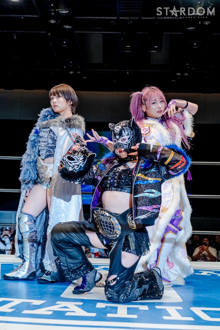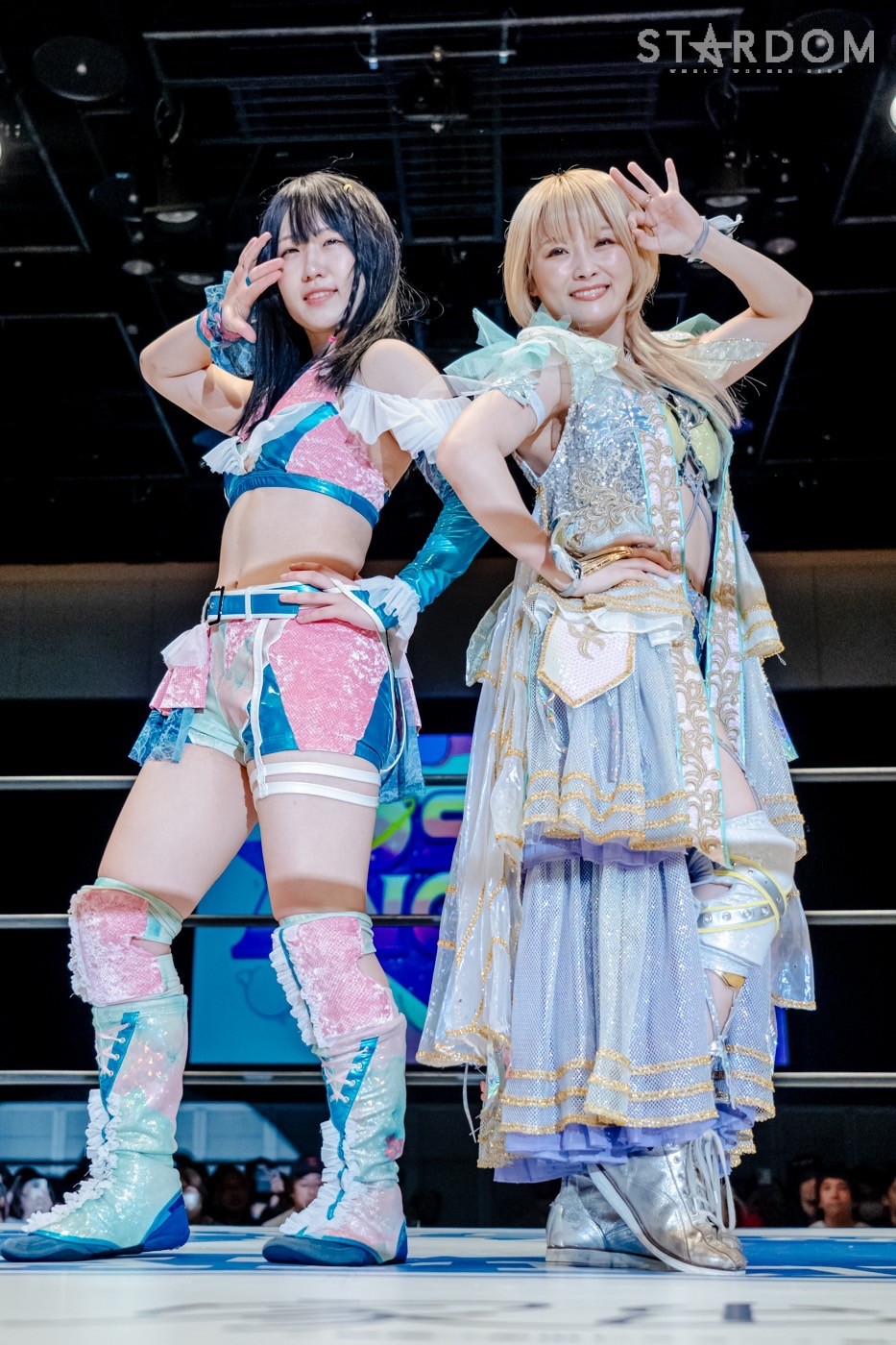 星来が控えのコグマをドロップキックで落とし葉月にドロップキック連打、ネックブリーカー。葉月が返すと、星来は変型キャメルクラッチ。コグマがカットし、ダブルでドロップキック、ブレーンバスター。鈴季組が回避も葉月とコグマがドロップキック。葉月はエプロンで星来にDDT、スワンダイブ式ミサイルキック。星来が返すと葉月はフェースロック。星来がなんとかエスケープ成功。葉月がエルボー、星来もやり返す。葉月が丸め込み、コグマがアシスト。鈴季と星来が合体で丸め込みからドロップキック。鈴季がバックを取り星来がコーナーへ。コグマがカットし星来をロープに叩きつける。葉月が鈴季にブレーンバスター。コグマがプランチャ、葉月がトペを狙うが落とされてしまう。星来が三角飛びプランチャをコグマに見舞う。戻った星来がリング上に葉月にネックブリーカー、流星龍。15分経過。コグマがカットも星来はフィニッシュを宣言。鈴季がバックを取り星来がコードブレイカー、頭部にドロップキック、しかしコグマがダイビングボディープレスでカット。鈴季がコグマにジャーマン。鈴季とコグマのエルボーが交錯しダウン。4人がダウン。星来が葉月にエルボー連打、ダッシュを葉月が丸め込む。星来が返すと丸め込み。星来の流れ星を葉月がギリギリで返す。星来が突進するが葉月がロープを引いて転落させる。コグマが鈴季にボディーアタック。コグマがプランチャ、葉月がトペで場外へ。葉月が星来をリングに戻し雪崩式コードブレイカー。星来が返すと、葉月がカナディアン、コグマが突進。鈴季がカットし星来が流れ星。しかしコグマのカットが間に合う。鈴季がコグマにテキーラショット、鈴季がバックを取り星来がコードブレイカー、鈴季がジャーマン、星来がボム。葉月が返し20分経過。星来が葉月を引き起こし、チェックメイト狙い。葉月が切り替えしコグマとネックブリーカー。葉月は星来にダイビングセントーン。しかし、星来の肩が上がる。葉月は星来に垂直落下式ブレーンバスター。鈴季がカットも、コグマが持ち上げて葉月がコードブレイカー。そして滞空時間を取って垂直落下式ブレーンバスターを決める。これで3カウントが入り王座が移動した。