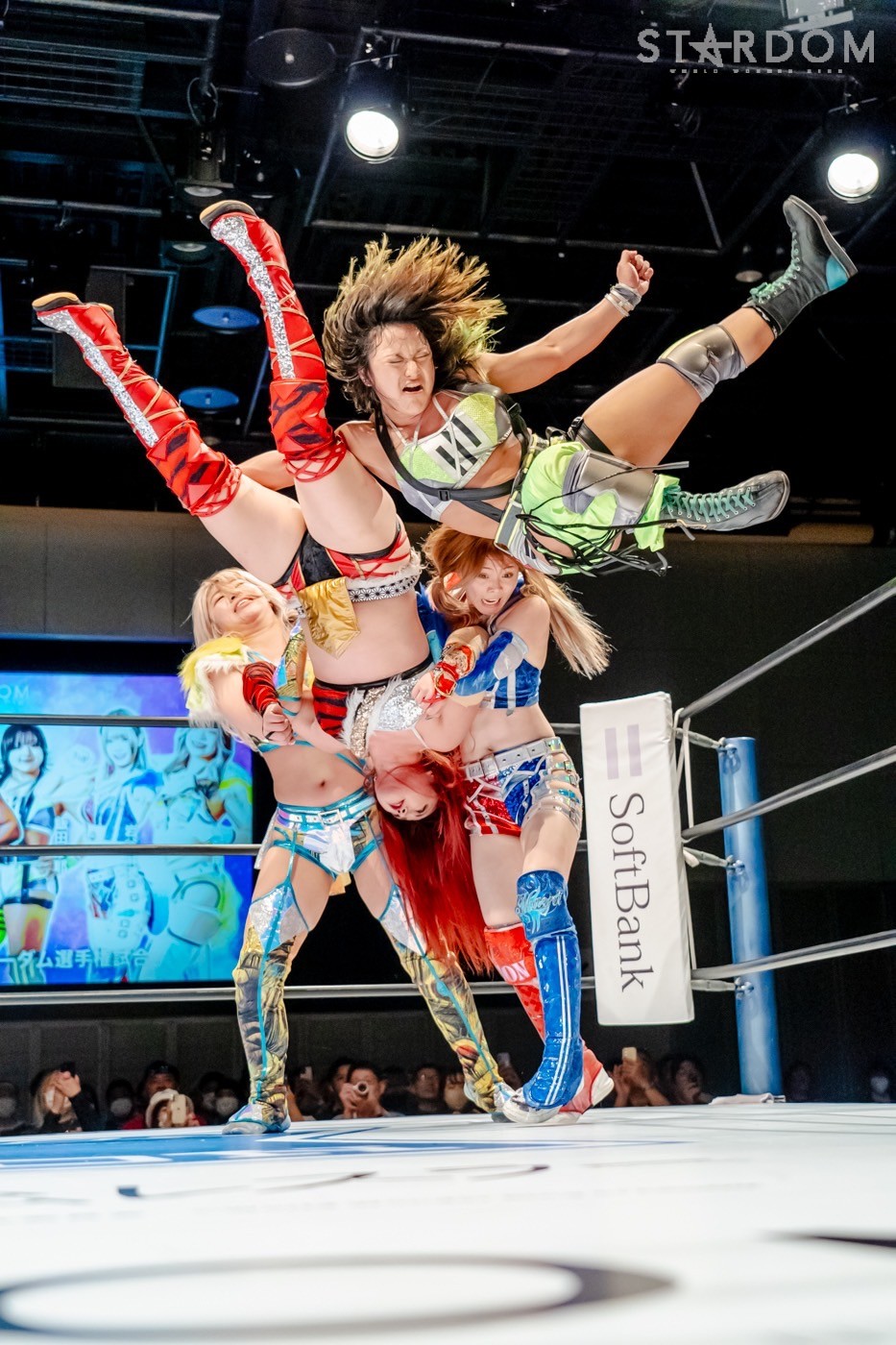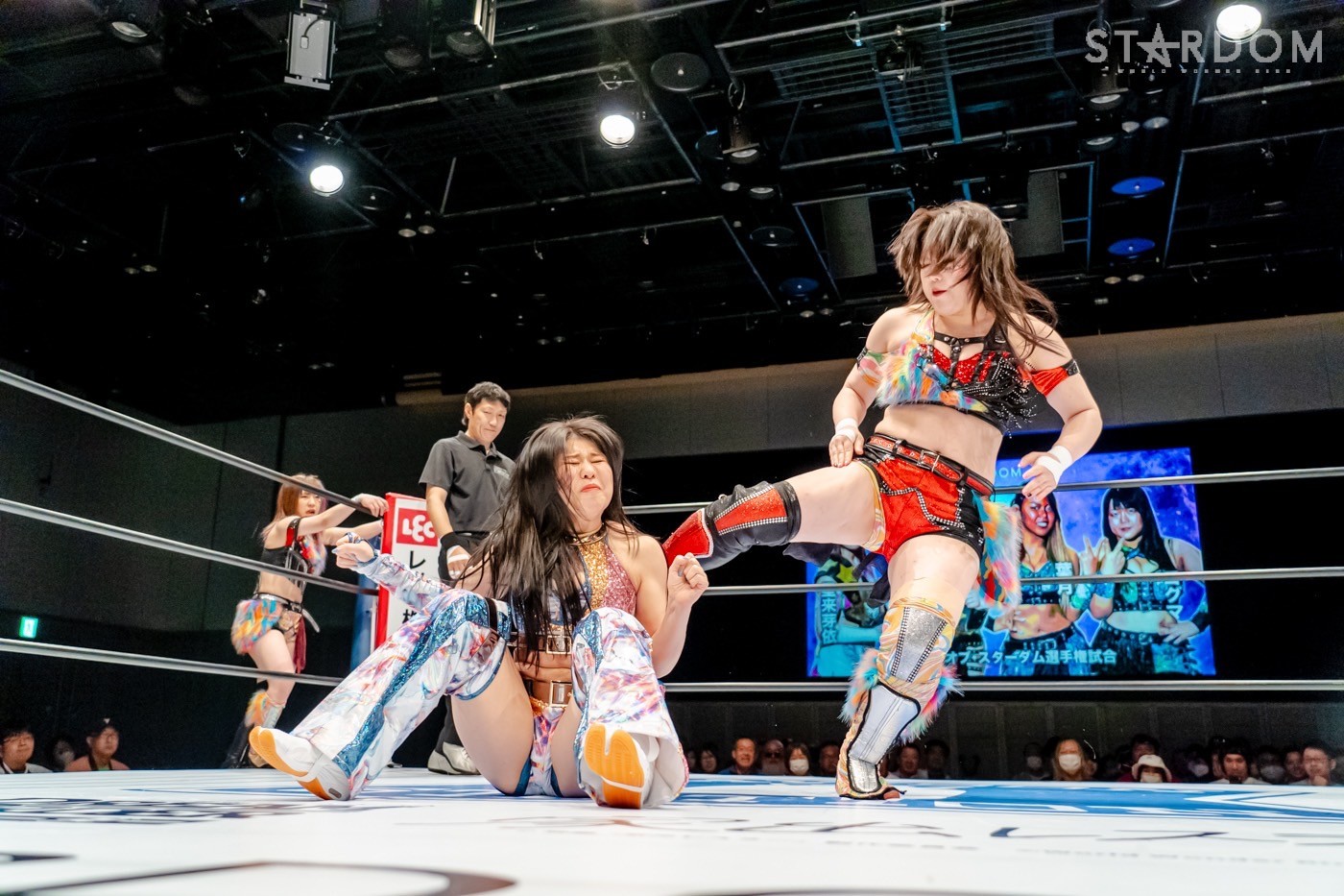 ゴング前に葉月とコグマが奇襲攻撃。エルボー連打からロープに振るが、鈴季組がエプロンに出てロープを引く。鈴季と星来で葉月を捕らえてダブルで攻撃。星来は葉月にヘアーホイップ。葉月をコーナーに追い込み、星来が至近距離からドロップキックを連打。鈴季が葉月にエルボー、中央にもっていきカバー。葉月が返すと、鈴季はエルボー連打。鈴季は「(葉月は)いいですね、応援されて」とサッカーボールキック。星来が葉月に突進するとコグマが乱入し連係攻撃。葉月が星来に顔面ウォッシュ、ボディースラム。コグマが星来の腹部を踏みつけフットスタンプ。星来が返すと、クロスボディーアタック。鈴季がコグマに串刺しエルボーアタック、串刺しニーアタック。葉月がカットしコグマとクローズライン、鈴季がかわしてスピアを叩き込む。コグマと鈴季がエルボーの打ち合い。鈴季の一発でコグマがダウン。しかしコグマがバックを取り丸め込む。コグマは2人を鉢合わせにしてフェースクラッシャー。鈴季が返すと、コグマがエルボー連打。鈴季もやり返しエルボーの応酬。葉月と鈴季もエルボーの打ち合い。葉月がDDT、コーナーに上がると鈴季がデッドリードライブ狙い。葉月が立ち上がりコードブレイカー、雪崩式ブレーンバスターの構え。鈴季が切り返し反転、雪崩式フランケンシュタイナー。葉月が二段蹴り、鈴季がジャーマン。両者がヘッドバットでダウン。