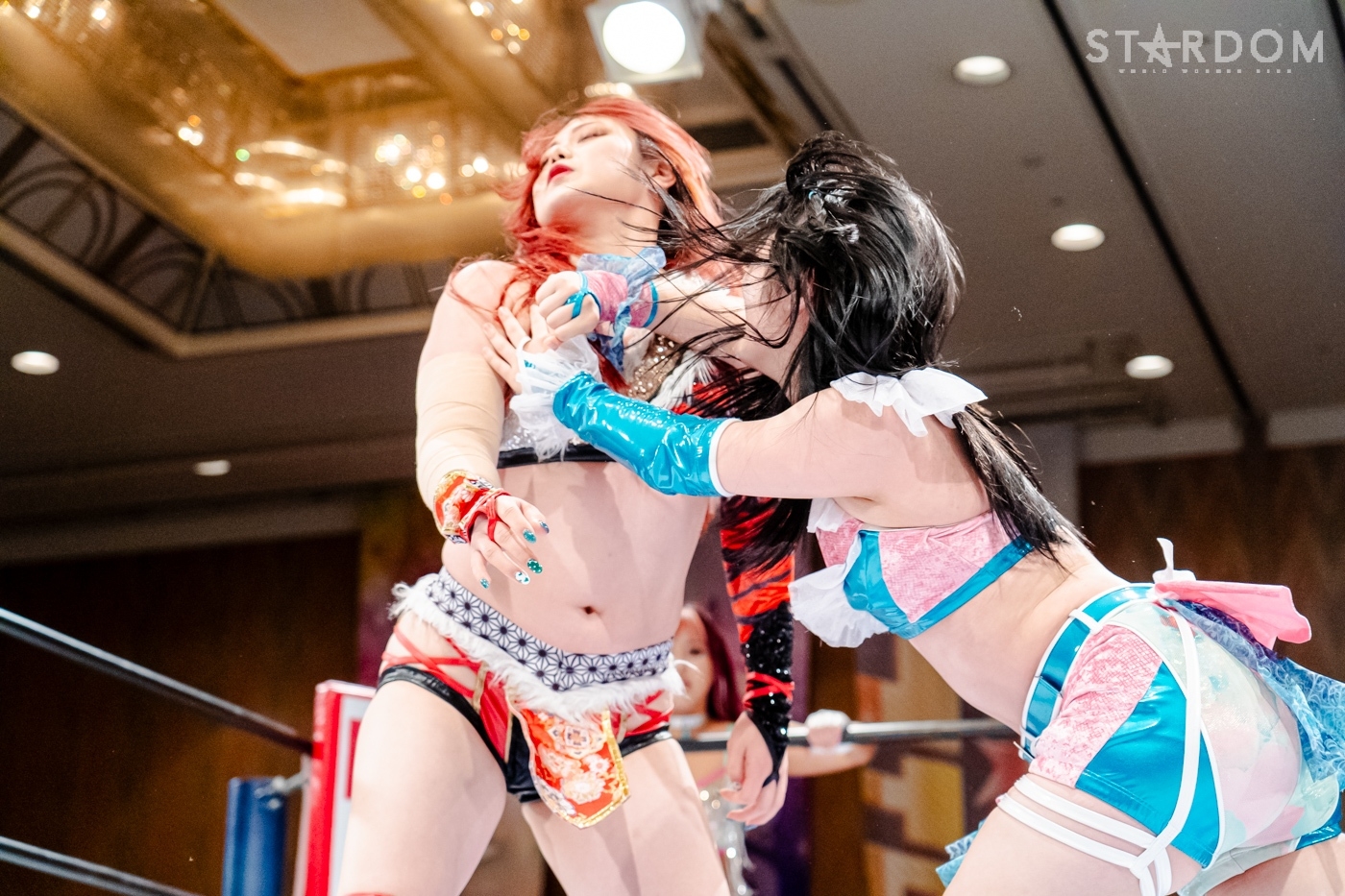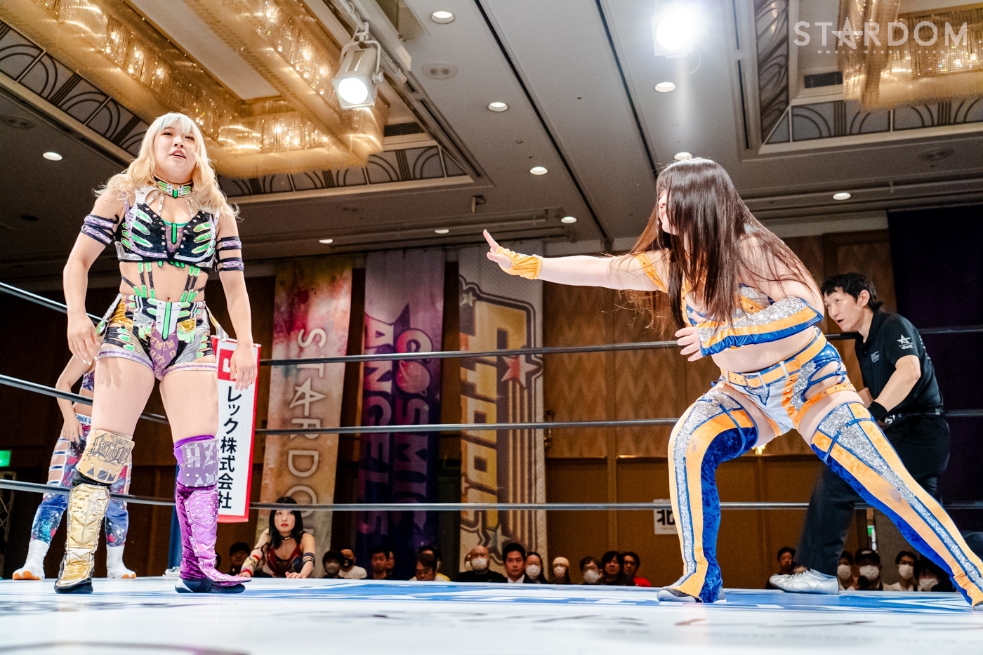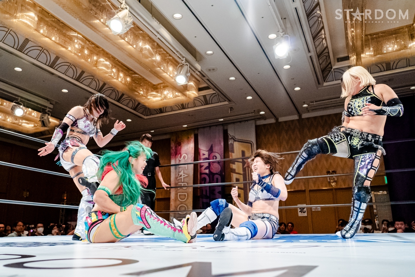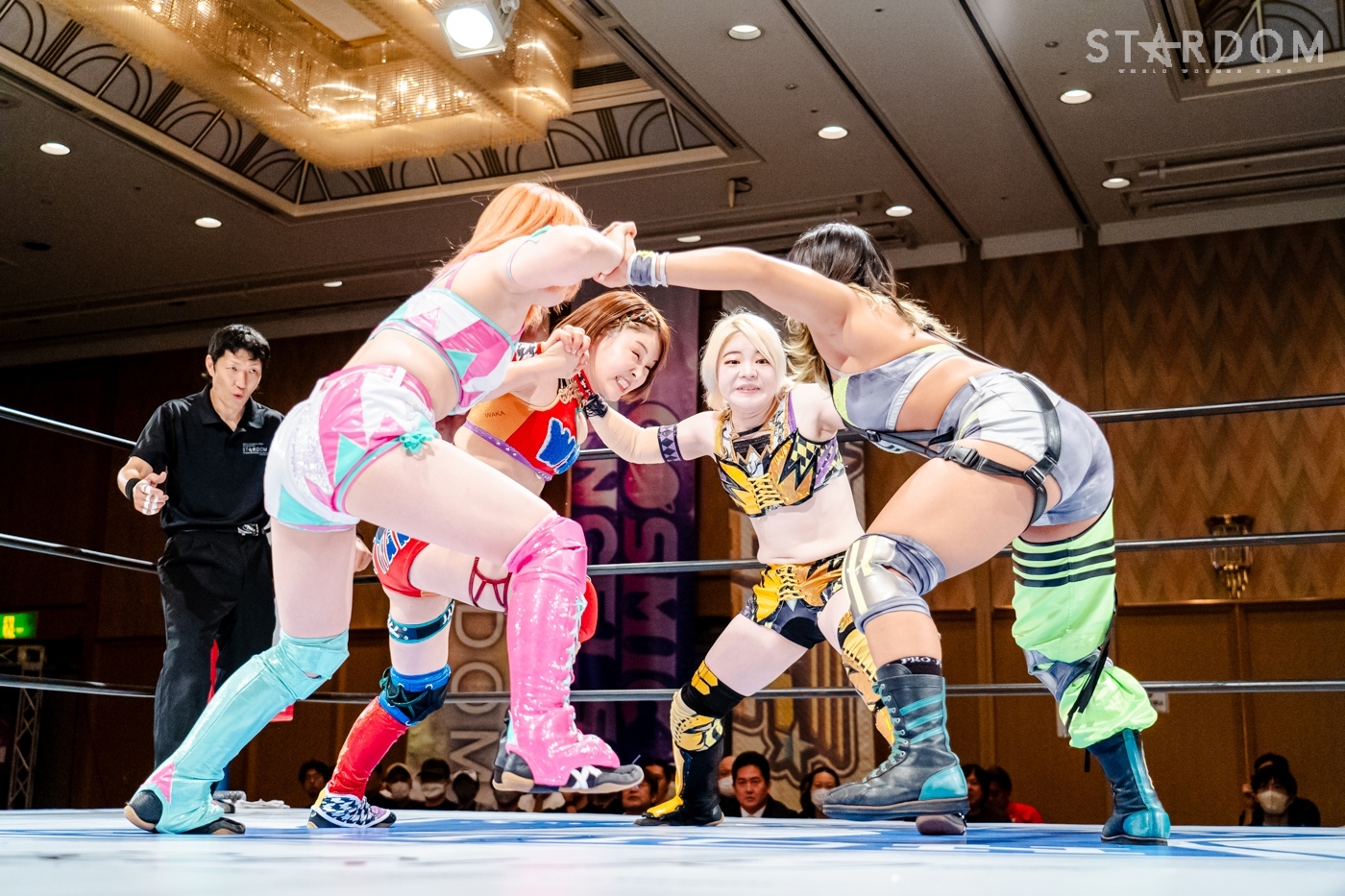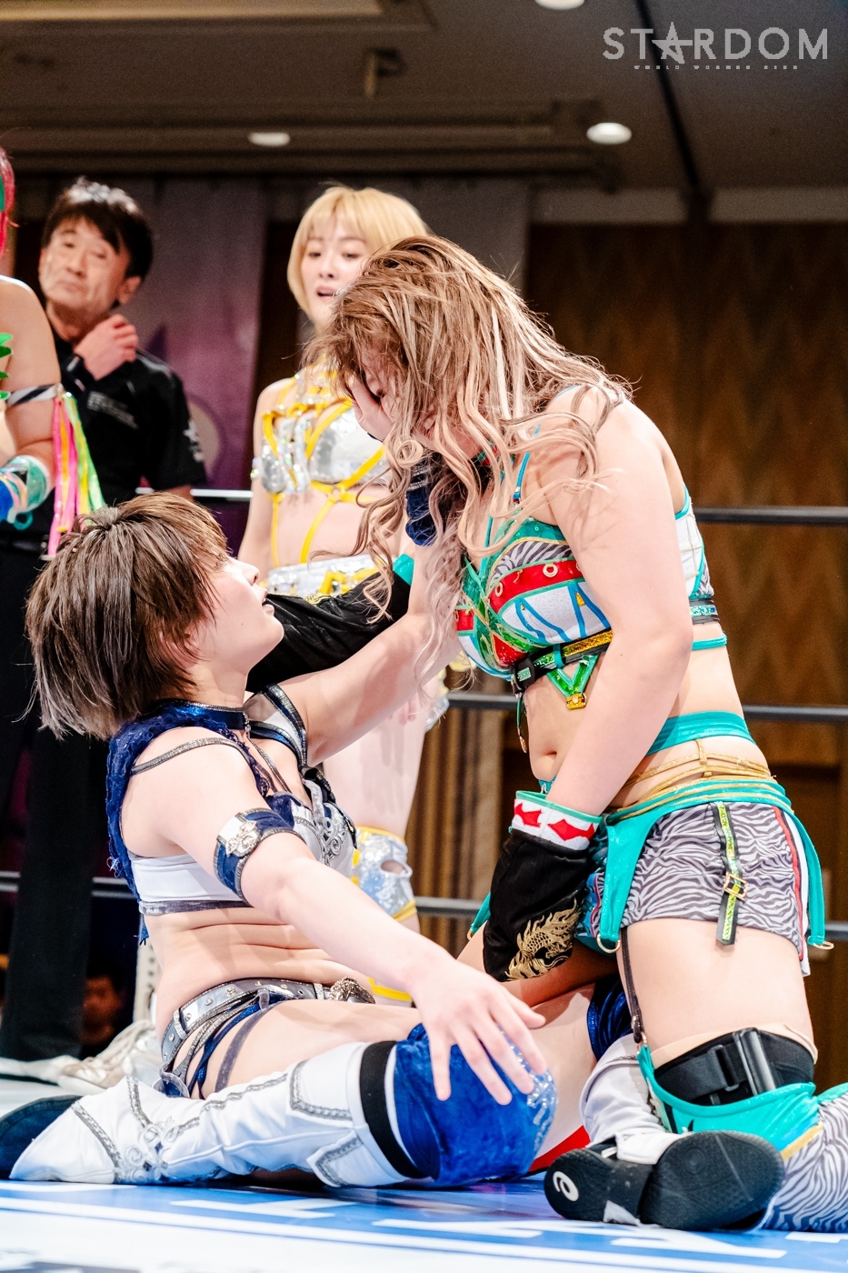 当初はSTARSの葉月&コグマ&飯田沙耶&向後桃組とクイーンズクエストの上谷沙弥&AZM&レディ・C&天咲光由組による8人タッグマッチが予定されていたが、上谷が体調不良により急きょ欠場、飯田が第2試合の4WAYマッチに加わり、葉月&コグマ&向後組vsAZM&レディ・C&天咲組の6人タッグマッチとなる。5・5福岡で鈴季すず&星来芽依組を破りゴッデス・オブ・スターダム王者に返り咲いた葉月&コグマ組には翌日の初防衛戦が控えている。そのため、この試合は王者組とAZM&天咲組による前哨戦だ。
