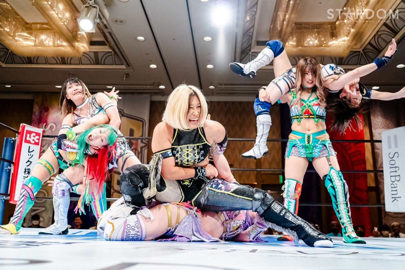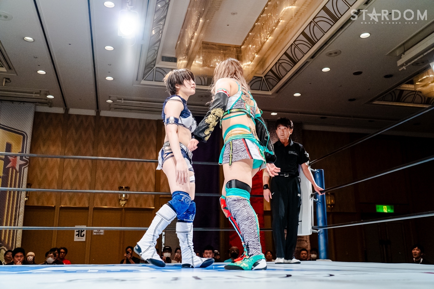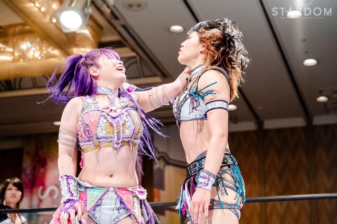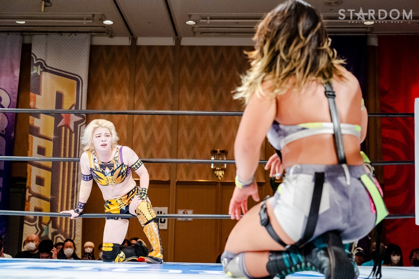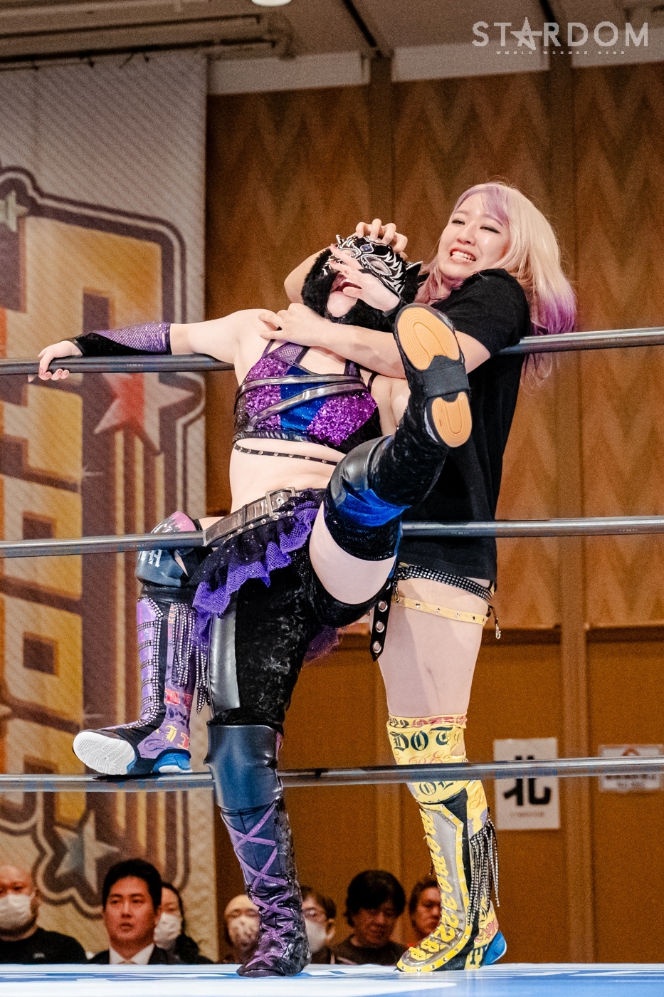 当初はSTARSの葉月&コグマ&飯田沙耶&向後桃組とクイーンズクエストの上谷沙弥&AZM&レディ・C&天咲光由組による8人タッグマッチが予定されていたが、上谷が体調不良により急きょ欠場、飯田が第2試合の4WAYマッチに加わり、葉月&コグマ&向後組vsAZM&レディ・C&天咲組の6人タッグマッチとなる。5・5福岡で鈴季すず&星来芽依組を破りゴッデス・オブ・スターダム王者に返り咲いた葉月&コグマ組には翌日の初防衛戦が控えている。そのため、この試合は王者組とAZM&天咲組による前哨戦だ。