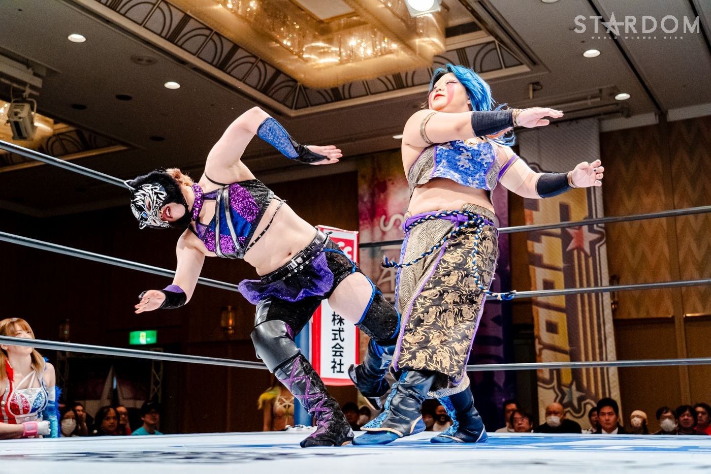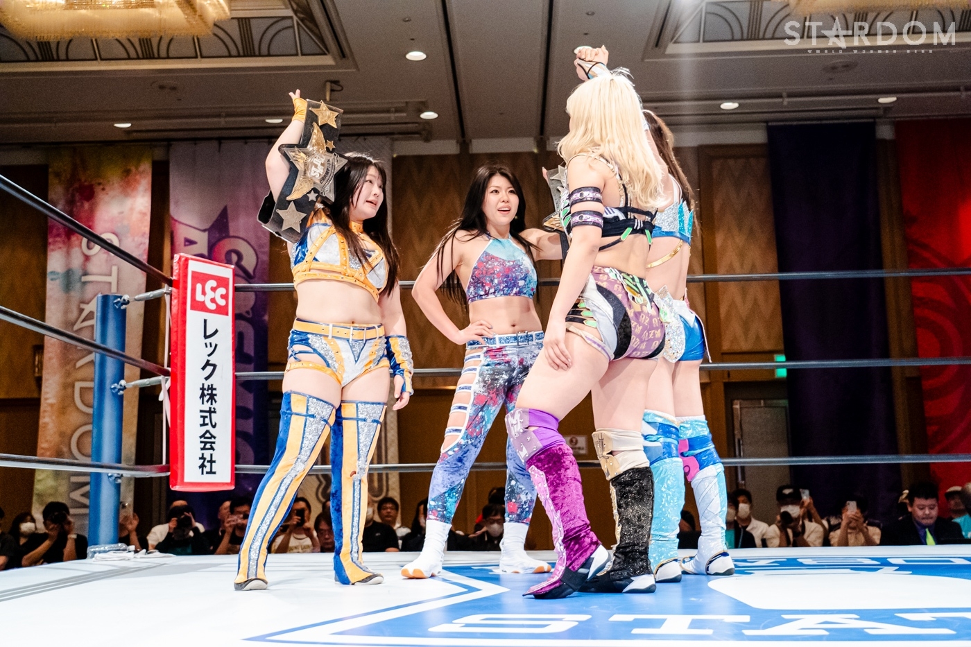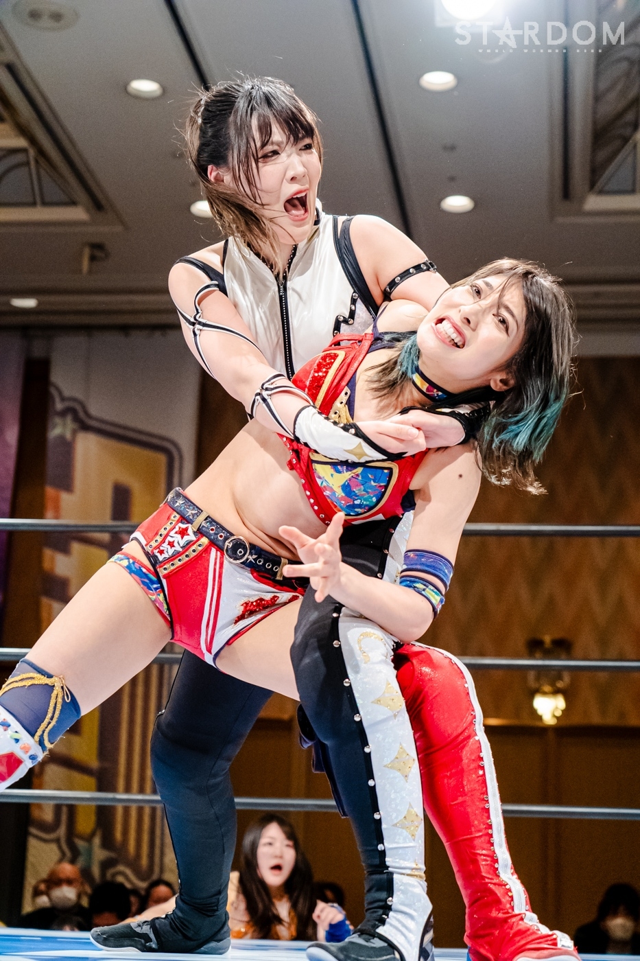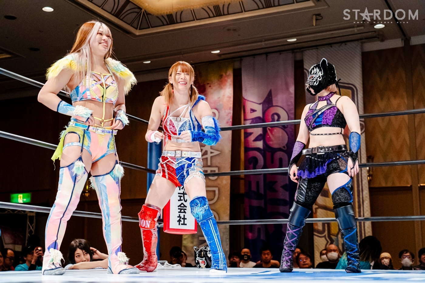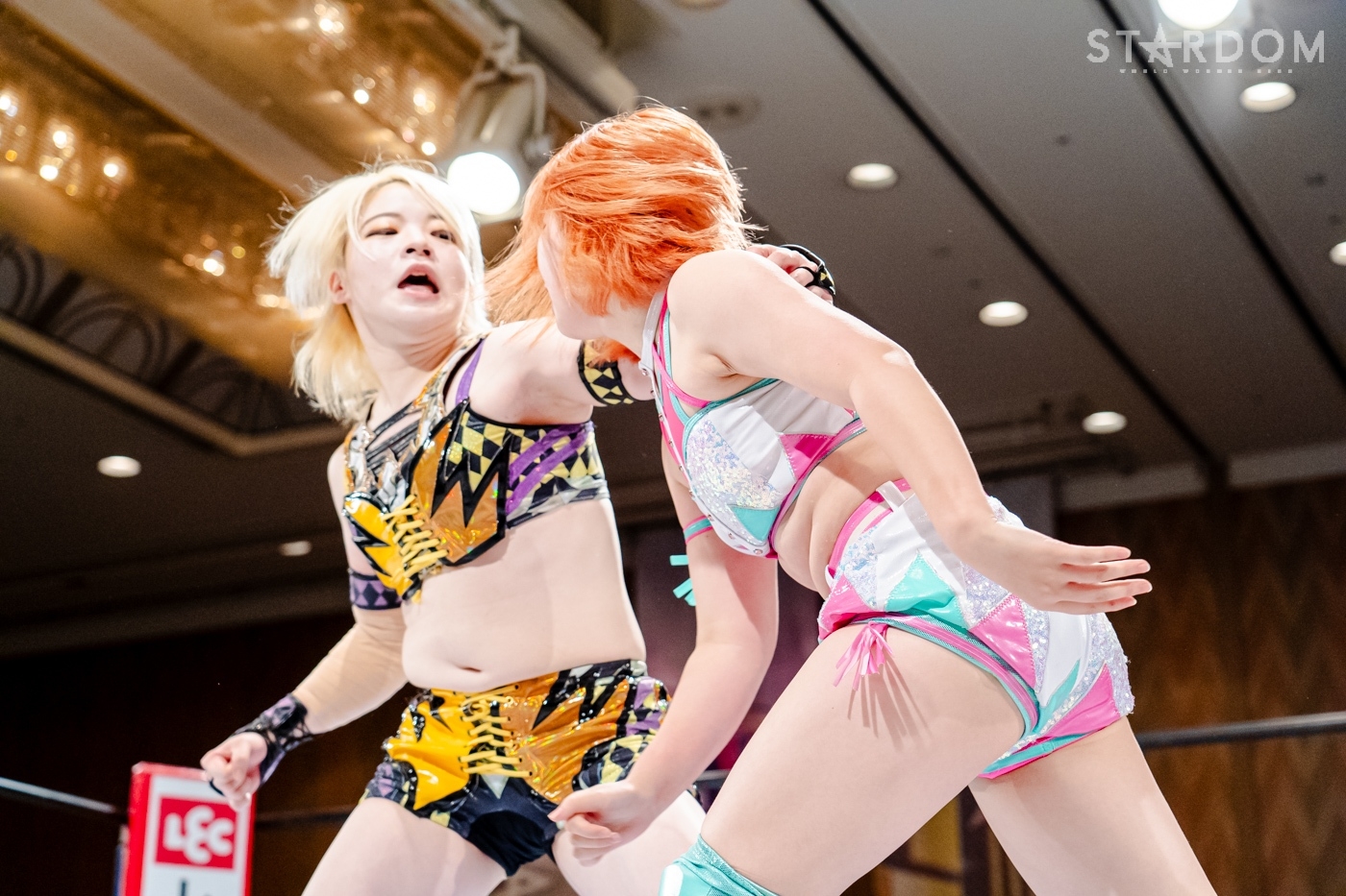 当初はSTARSの葉月&コグマ&飯田沙耶&向後桃組とクイーンズクエストの上谷沙弥&AZM&レディ・C&天咲光由組による8人タッグマッチが予定されていたが、上谷が体調不良により急きょ欠場、飯田が第2試合の4WAYマッチに加わり、葉月&コグマ&向後組vsAZM&レディ・C&天咲組の6人タッグマッチとなる。5・5福岡で鈴季すず&星来芽依組を破りゴッデス・オブ・スターダム王者に返り咲いた葉月&コグマ組には翌日の初防衛戦が控えている。そのため、この試合は王者組とAZM&天咲組による前哨戦だ。