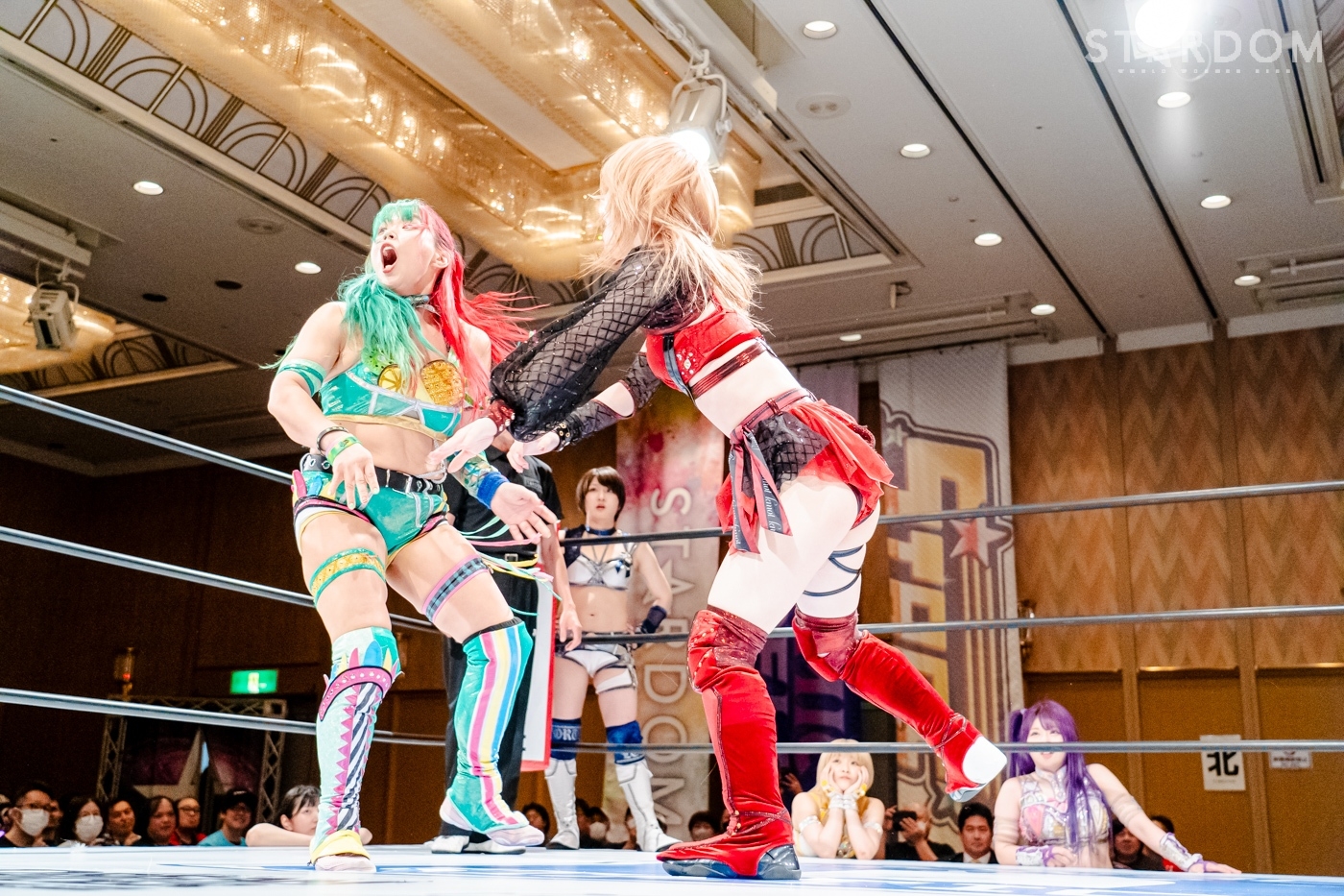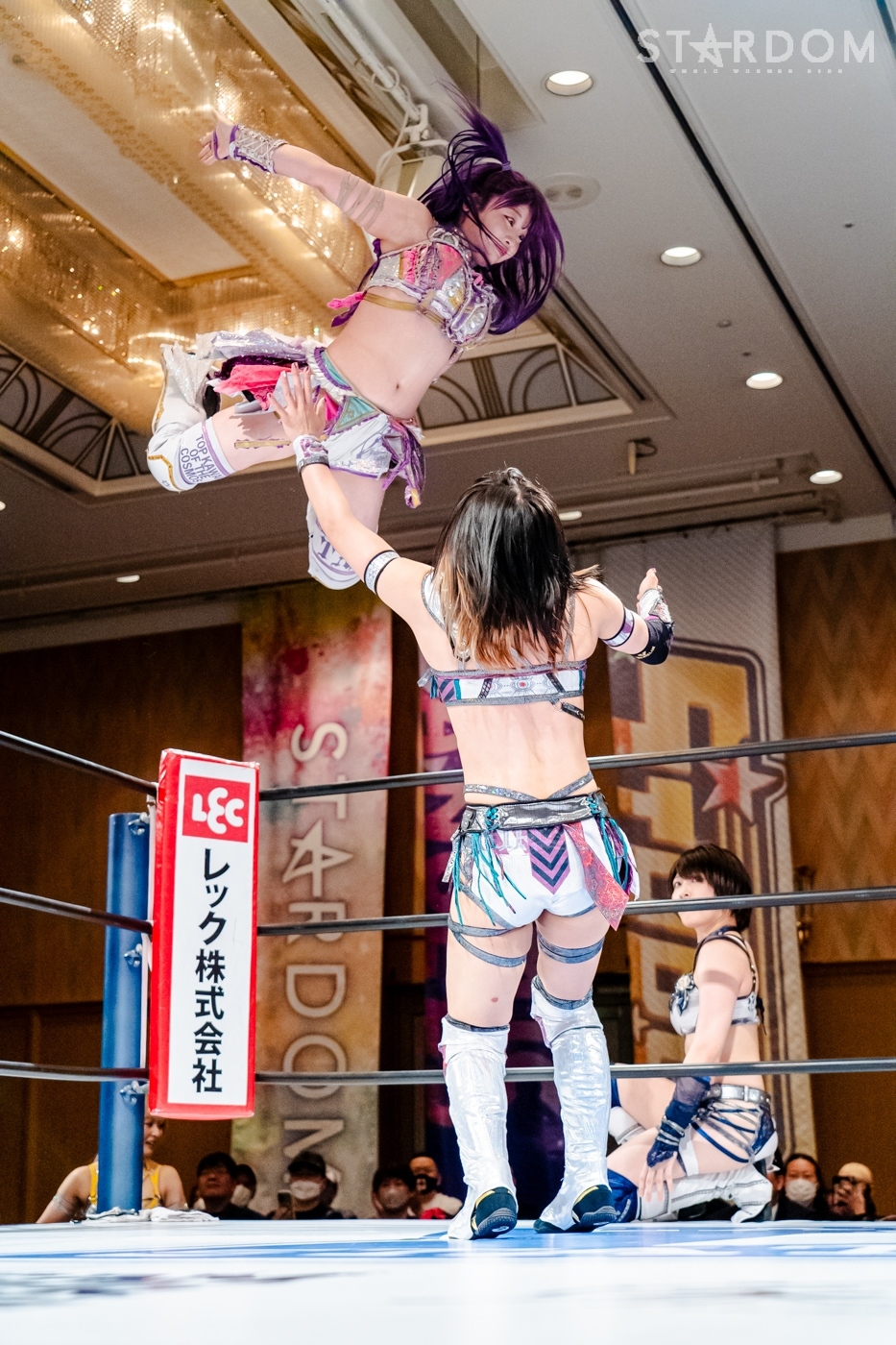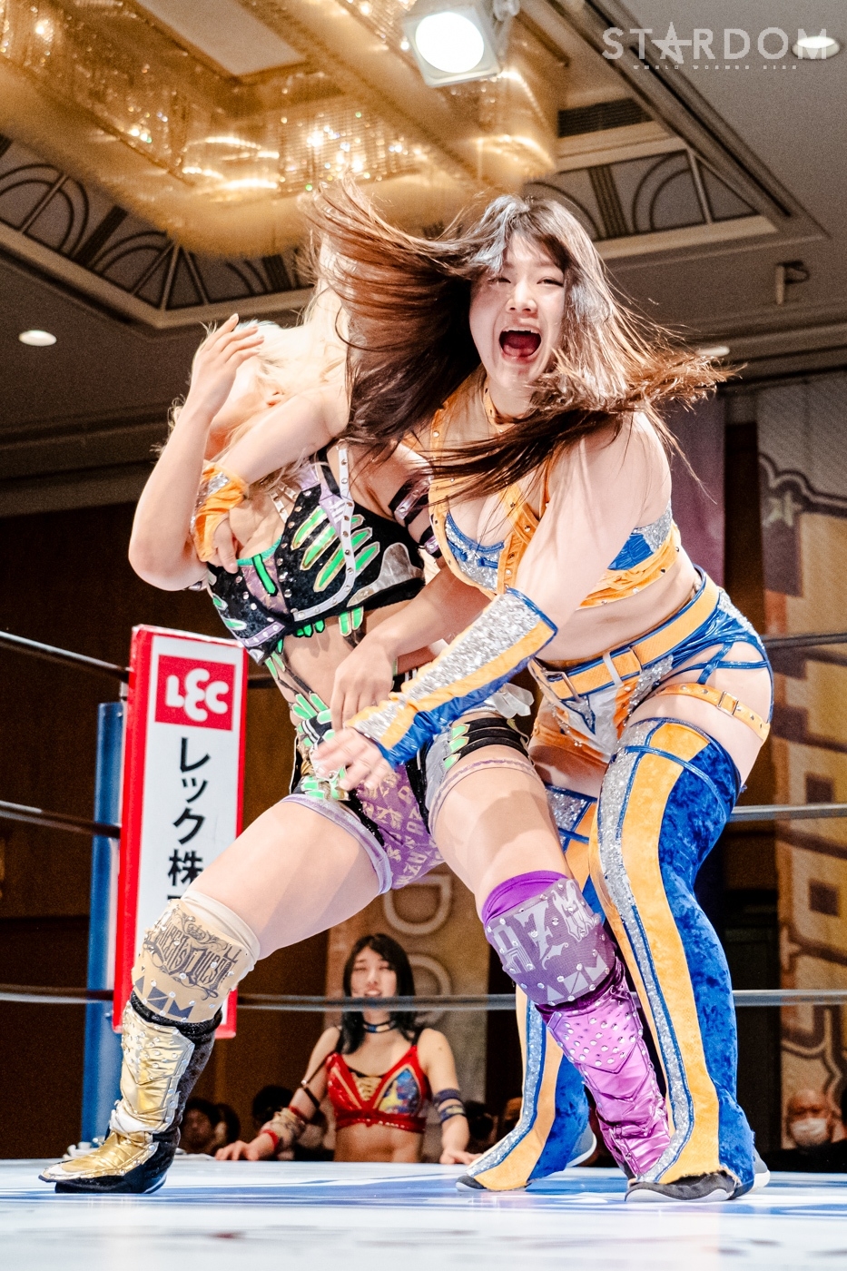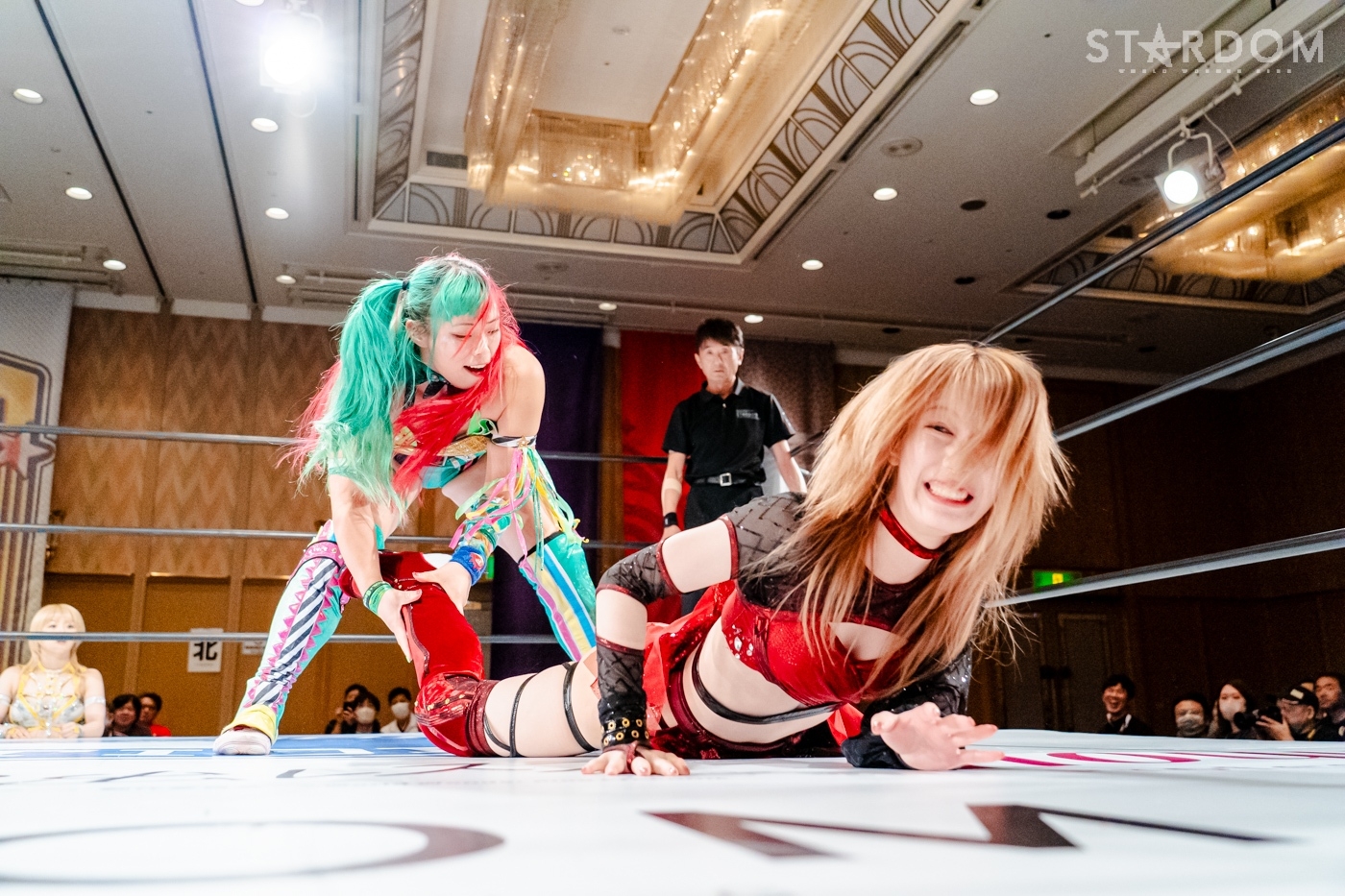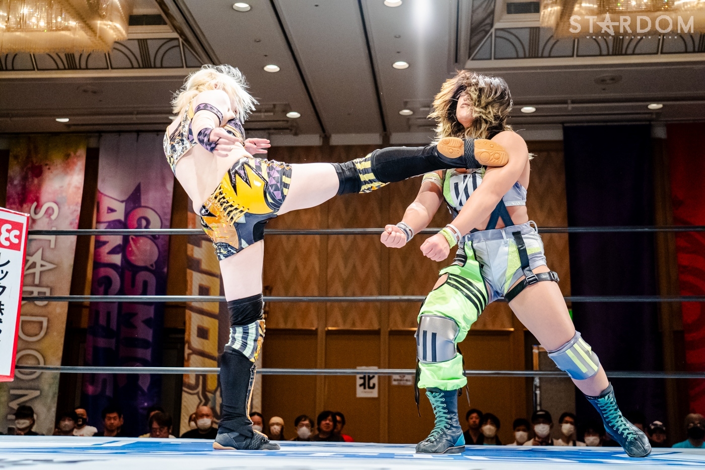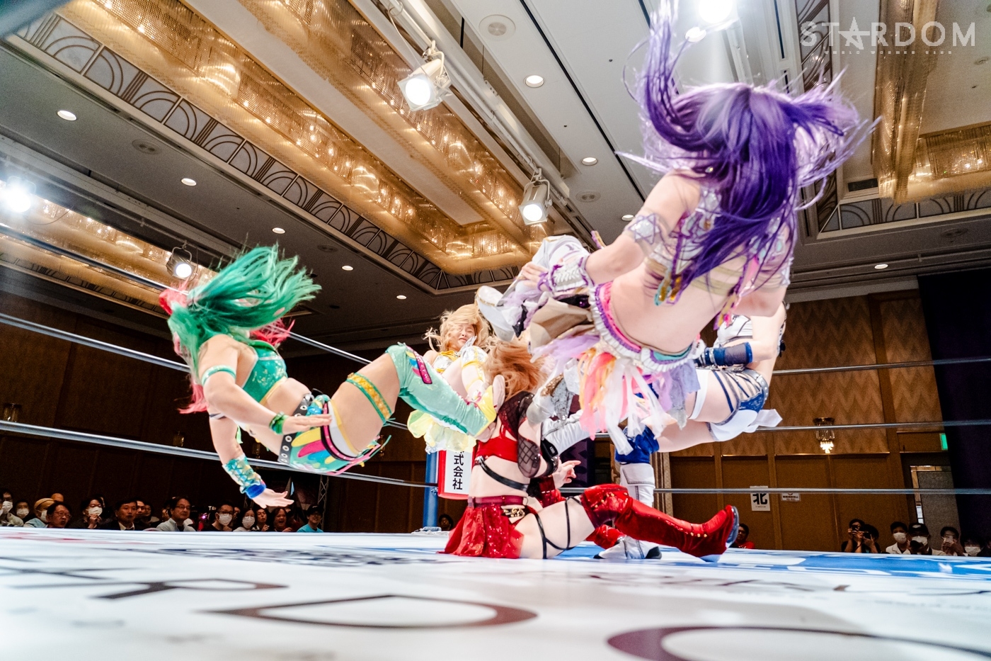 当初はSTARSの葉月&コグマ&飯田沙耶&向後桃組とクイーンズクエストの上谷沙弥&AZM&レディ・C&天咲光由組による8人タッグマッチが予定されていたが、上谷が体調不良により急きょ欠場、飯田が第2試合の4WAYマッチに加わり、葉月&コグマ&向後組vsAZM&レディ・C&天咲組の6人タッグマッチとなる。5・5福岡で鈴季すず&星来芽依組を破りゴッデス・オブ・スターダム王者に返り咲いた葉月&コグマ組には翌日の初防衛戦が控えている。そのため、この試合は王者組とAZM&天咲組による前哨戦だ。