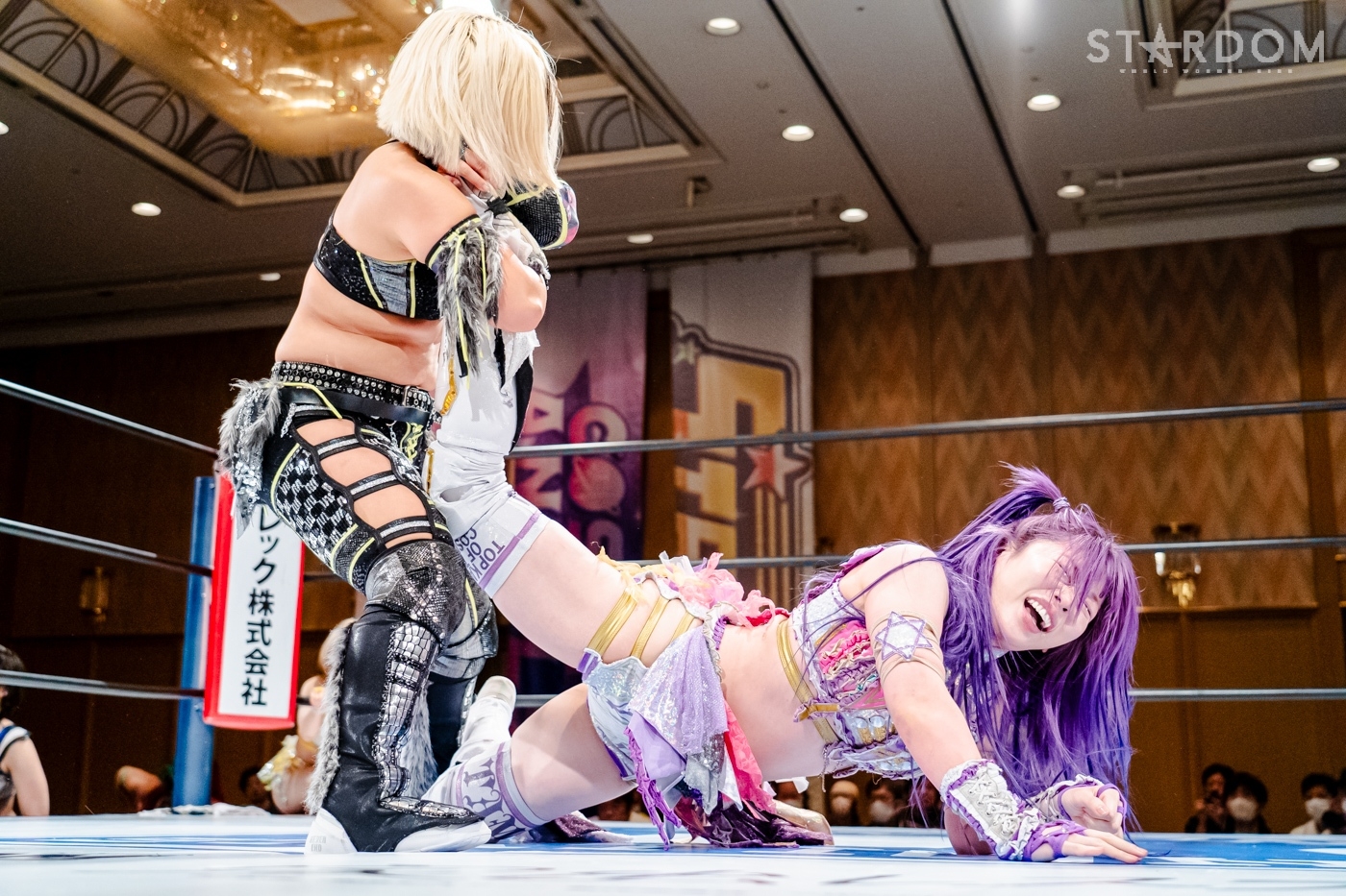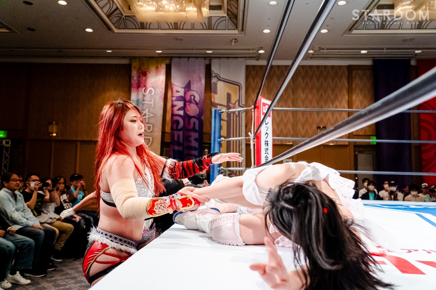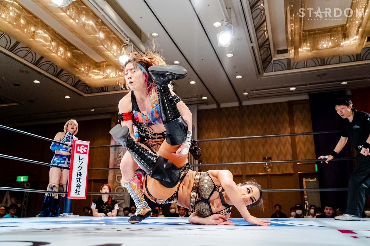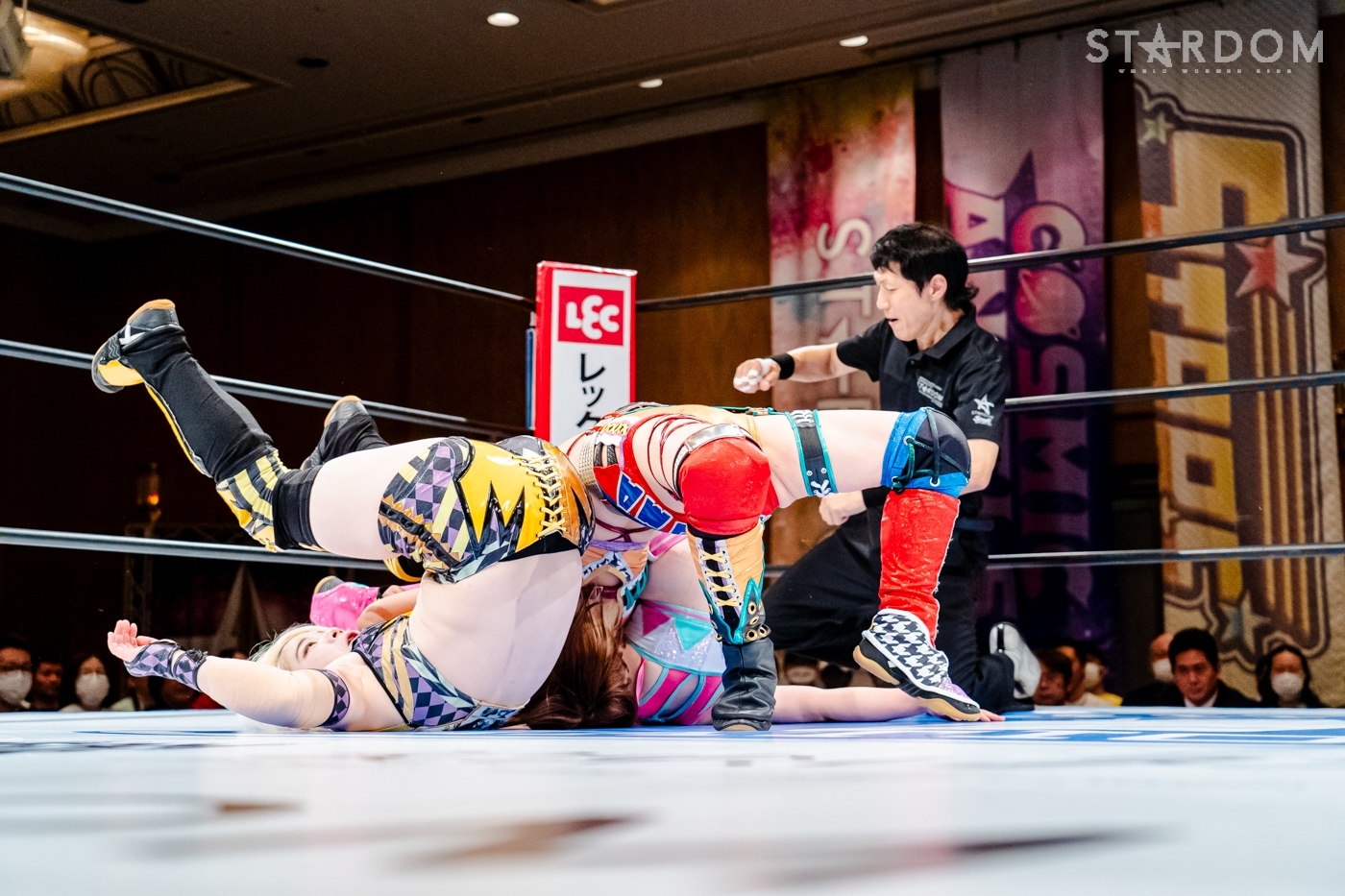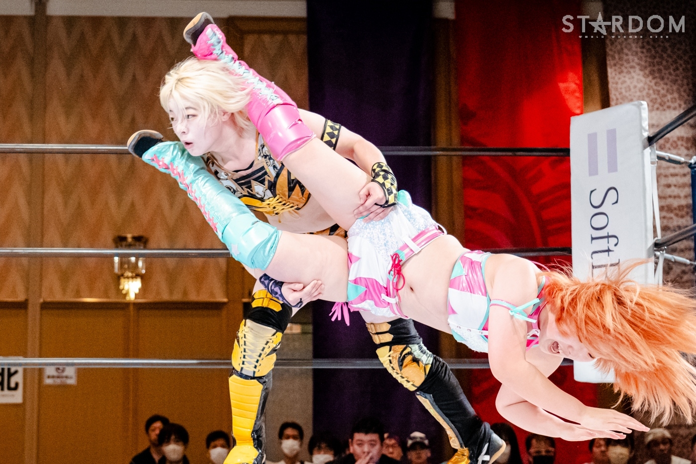 当初はSTARSの葉月&コグマ&飯田沙耶&向後桃組とクイーンズクエストの上谷沙弥&AZM&レディ・C&天咲光由組による8人タッグマッチが予定されていたが、上谷が体調不良により急きょ欠場、飯田が第2試合の4WAYマッチに加わり、葉月&コグマ&向後組vsAZM&レディ・C&天咲組の6人タッグマッチとなる。5・5福岡で鈴季すず&星来芽依組を破りゴッデス・オブ・スターダム王者に返り咲いた葉月&コグマ組には翌日の初防衛戦が控えている。そのため、この試合は王者組とAZM&天咲組による前哨戦だ。