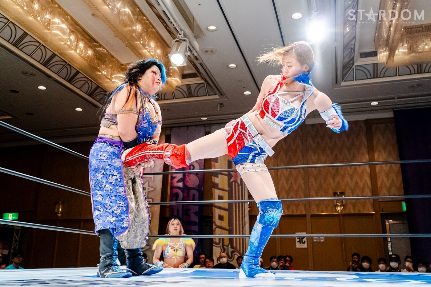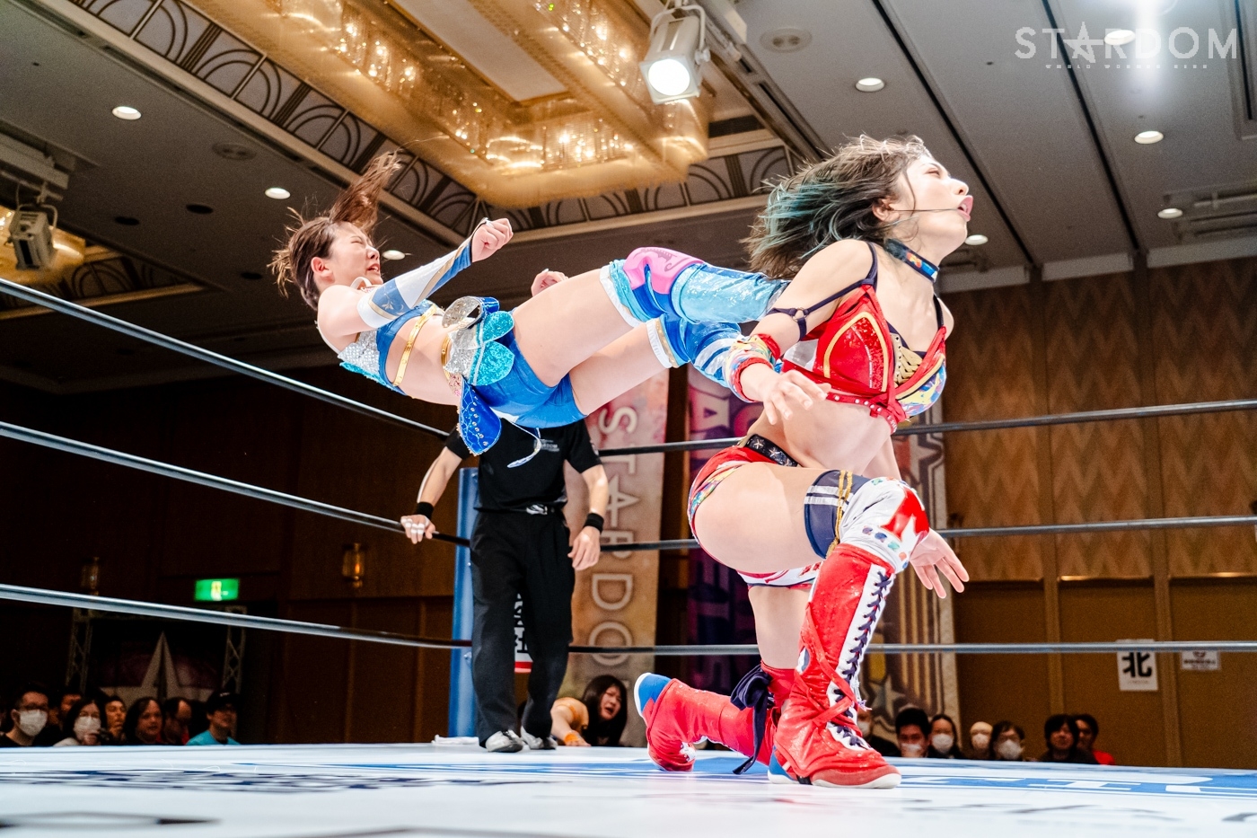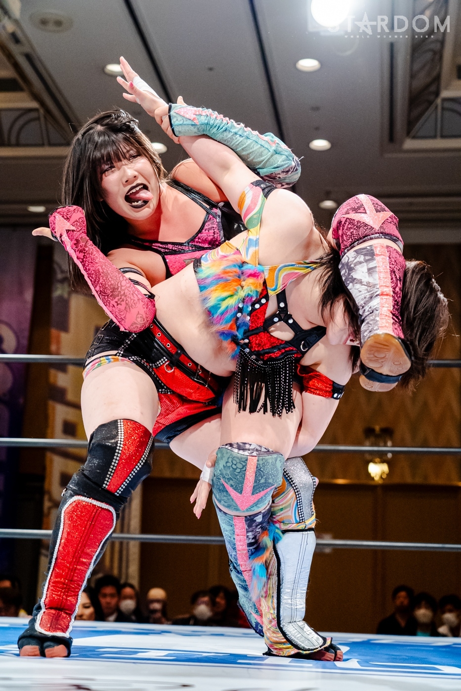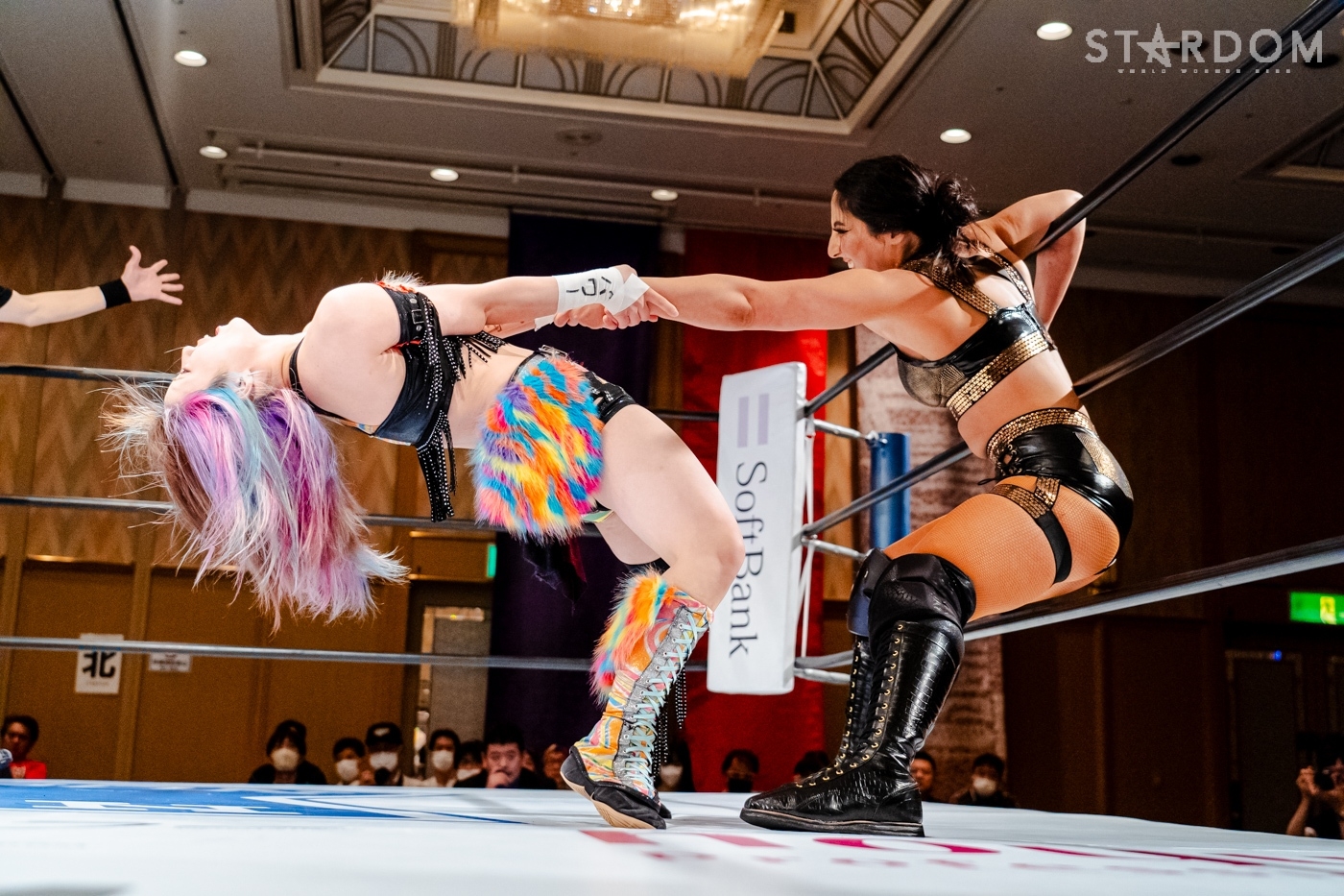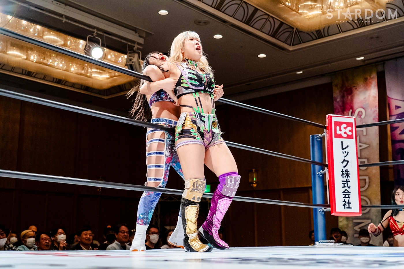 当初はSTARSの葉月&コグマ&飯田沙耶&向後桃組とクイーンズクエストの上谷沙弥&AZM&レディ・C&天咲光由組による8人タッグマッチが予定されていたが、上谷が体調不良により急きょ欠場、飯田が第2試合の4WAYマッチに加わり、葉月&コグマ&向後組vsAZM&レディ・C&天咲組の6人タッグマッチとなる。5・5福岡で鈴季すず&星来芽依組を破りゴッデス・オブ・スターダム王者に返り咲いた葉月&コグマ組には翌日の初防衛戦が控えている。そのため、この試合は王者組とAZM&天咲組による前哨戦だ。