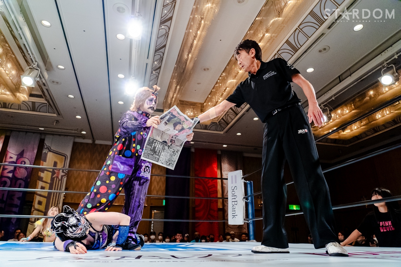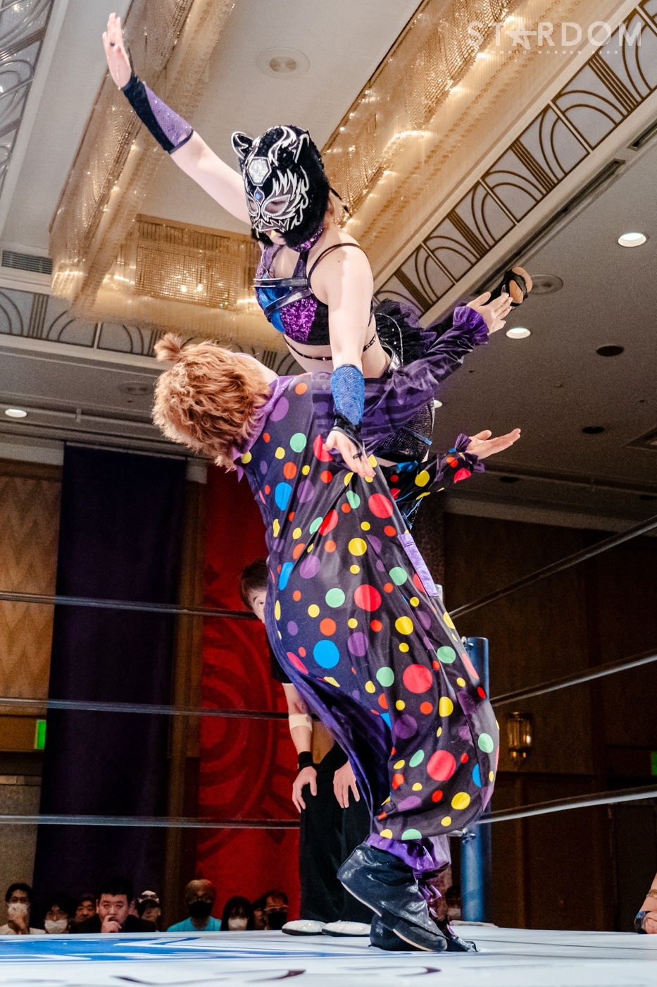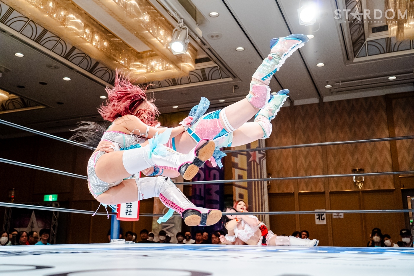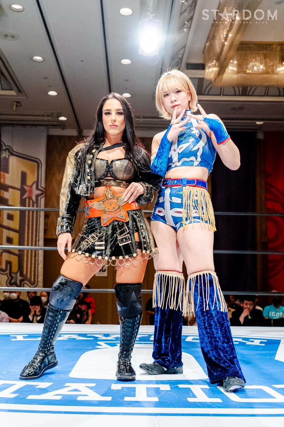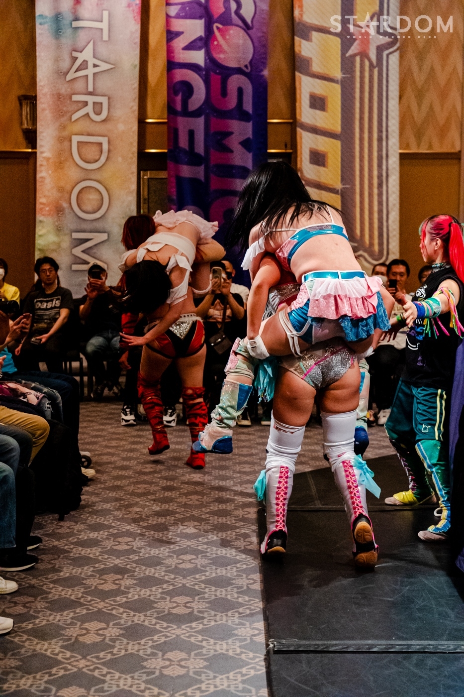 当初はSTARSの葉月&コグマ&飯田沙耶&向後桃組とクイーンズクエストの上谷沙弥&AZM&レディ・C&天咲光由組による8人タッグマッチが予定されていたが、上谷が体調不良により急きょ欠場、飯田が第2試合の4WAYマッチに加わり、葉月&コグマ&向後組vsAZM&レディ・C&天咲組の6人タッグマッチとなる。5・5福岡で鈴季すず&星来芽依組を破りゴッデス・オブ・スターダム王者に返り咲いた葉月&コグマ組には翌日の初防衛戦が控えている。そのため、この試合は王者組とAZM&天咲組による前哨戦だ。