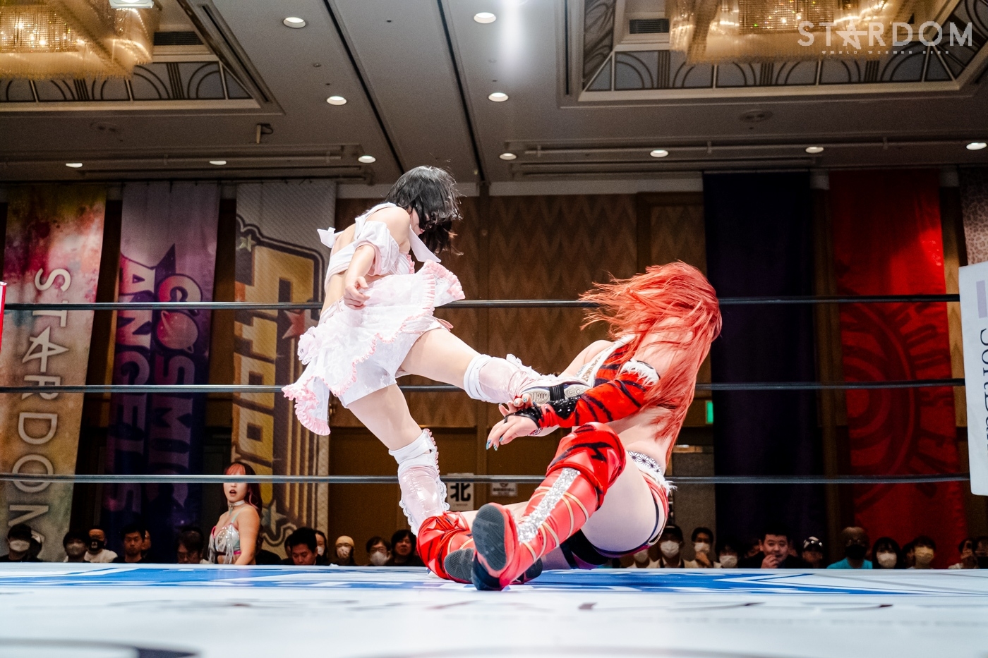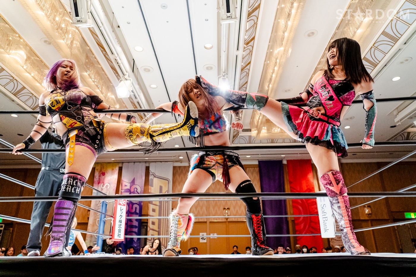 キッドとナツコが先発。キッドがコーナーにナツコにキックで奇襲をかけ岩谷、羽南と連係攻撃。トリオでのドロップキックを狙うがカットされ、ナツコがキッドにドロップキック。吏南と桃が乱入し、キッドを攻撃。ナツコがキッドにセントーン。フキゲンがスポーツ紙で殴打、キッドにキャメルクラッチでギブアップを迫る。テクラはキッドのマスクをつかんでマットに叩きつける。ロープに追い込むと顔面をかきむしる。キッドの突進を止めてテクラがタランチュラ、後頭部にトラースキック。キッドがエルボーでナツコに向かっていくが、ショルダータックルの連打を食らう。キッドのエルボー連打にナツコは張り手一発で倒してみせる。キッドがナツコをかいくぐり岩谷とタッチ。岩谷がナツコに串刺しアタック、ミサイルキック。ナツコが返すとフキゲンと合体、しかし岩谷がまとめてアームホイップ、羽南とドロップキックで競演。ナツコが岩谷の顔面をかきむしりバックフリップ、テクラがビッグブーツ連打、ブレーンバスター。岩谷が返すと、テクラはヒザ十字。岩谷がテクラをかわしてドロップキック。羽南がテクラにニーアタック、ランニングエルボースマッシュ、腕十字。しかし大江戸隊がカットする。羽南の突進にテクラがエルボー。羽南が返すと、テクラをかわして岩谷とダブルのドロップキック。テクラがカウンターのスピアを羽南に放つ。フキゲンが羽南にセントーン。ブレーンバスター予告は失敗し羽南の払い腰を食らう。キッドがフキゲンにボディーアタック、ドロップキック。10分経過。キッドがその場跳びムーンサルト。フキゲンに串刺し攻撃をさせずドロップキック。フキゲンがキッドの突進をかわすが、これもまた串刺しく檄をさせてもらえず。大江戸隊がキッドの足を引き、全員で攻撃。しかしSTARSが分断しキッドに託す、キッドはフキゲンにブレーンバスターを狙う。キッドが切り返しストレッチマフラー。キッドとSTARSが3方向でボディーアタック、フィッシャーマンの競演。フキゲンが返すとキッドの突進を丸め込む。キッドが返すと丸め込みの応酬。ナツコが鉄パイプで殴打しカット。岩谷がトラースキックでナツコを場外に送り出し、トペスイシーダ。キッドがフキゲンに旋回式ダイビングボディープレス。返したフキゲンに岩谷、羽南が合体フェースバスター、キッドがフィニッシュを予告しムーンサルトプレス。フキゲンがかわしまるめこむが2カウント。キッドがドロップキックからスープレックス狙い。ナツコがボックスで殴打しフキゲンが丸め込むと3カウントが入った。