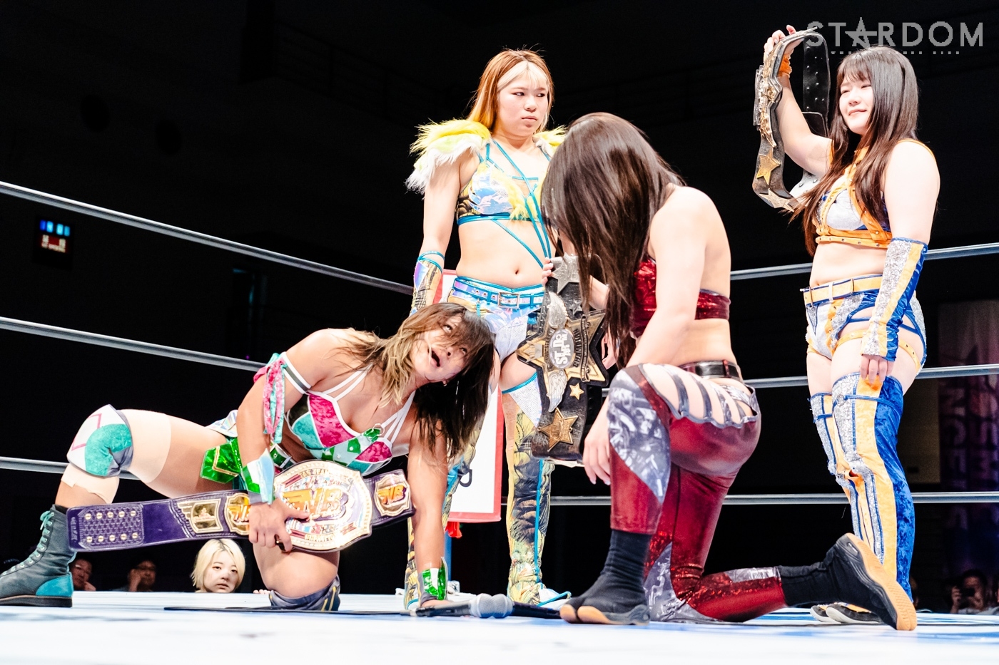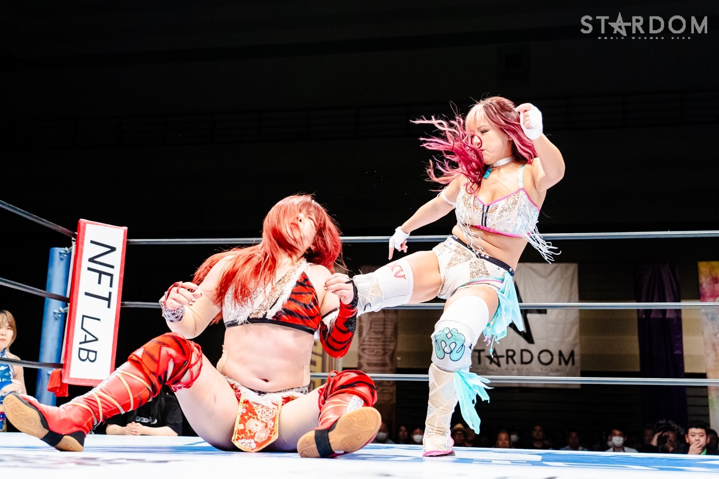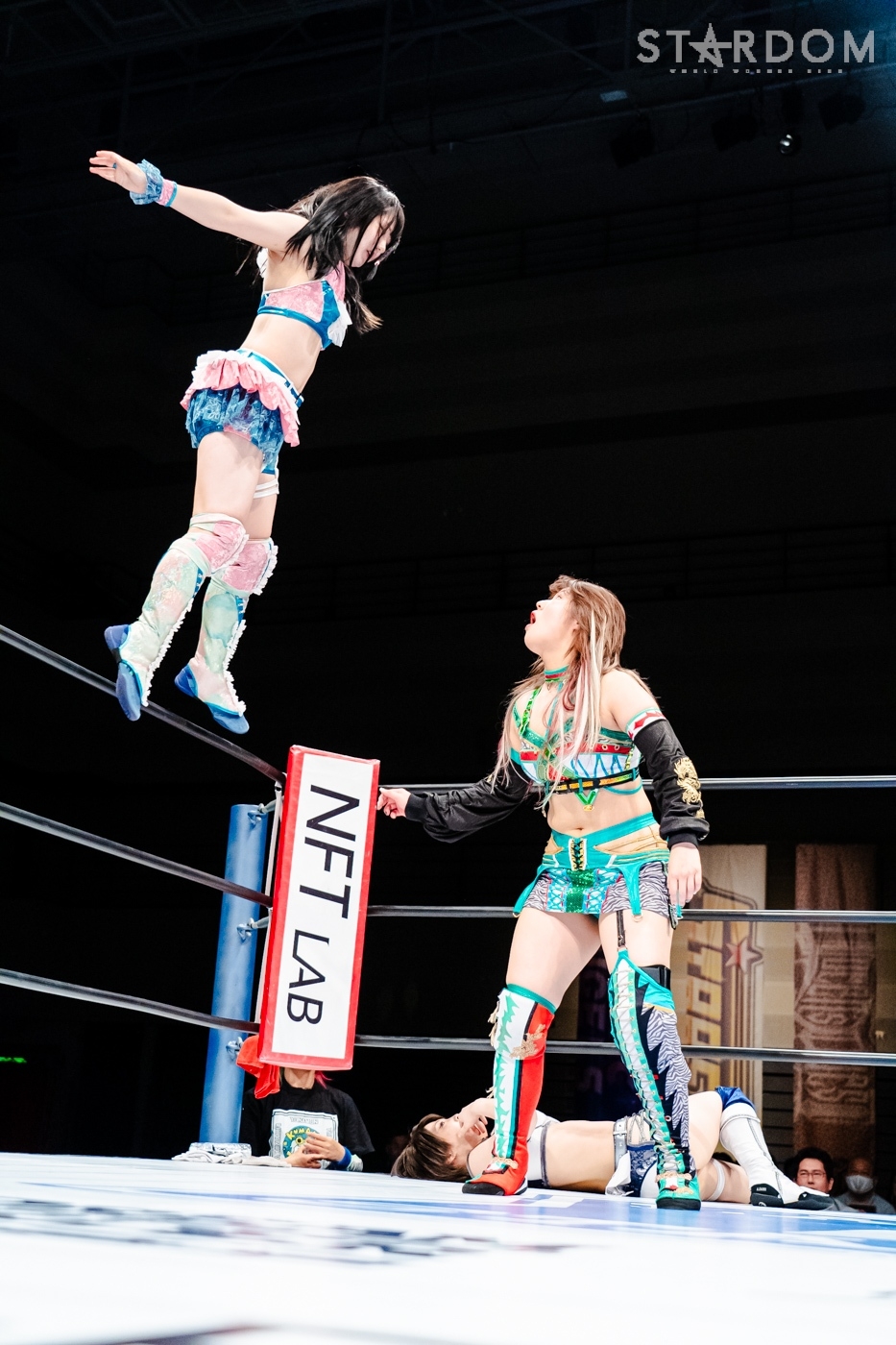 向後、水森が先発に名乗りを挙げると、星来も先発に。水森が手を取ろうとするが向後、星来も乗らずに共闘してドロップキックの挟み撃ち。と見せかけ星来は向後を丸め込む。水森がコズエンで合体し、トリオで星来にストンピング連打、ドロップキック。STARSTとキッドがコズエンをロープワーで翻弄しドロップキック。向後が星来にドロップキック。星来が返すと、梨杏が向後をカットしロープに固定、星来とAZMがエプロンでドロップキックの挟み撃ち、リング内でもドロップキックで競演。水森が星来を担いで交互にぶつけると、コーナーに追い込み突進。向後と星来が合体、向後が水森にボディーアタック。キッドが星来とロープワークの攻防。星来が握手を求めるとキッドが応じかけたところで水森がショルダータックルで分断。なつぽいがキッドと星来にボディーアタック、キッドがかわして星来にヒット。キッドはなつぽいとのダブルを宣言し。しかし、AZMが入り星来とミサイルキックで競演する。AZMとなつぽいがロープワークの攻防。AZMがワキ固めにとるがキッドがAZMにストレッチマフラー。水森がカットし、なつぽいと水森で合体。キッドがかわしSTARSでの619競演を決める。キッドと岩谷がコズエンにまとめてその場跳びムーンサルト。キッドとAZMがエルボーの打ち合い。なつぽいがAZMにドロップキック、キッドとの合体を宣言もAZMが切り返す。なつぽいとキッドが丸め込みの攻防、AZMも加わり、なつぽいとダブルでキッドを丸め込む。星来と梨杏がドロップキックで分断。AZMになつぽいがトラースキック、キッドがAZMを切り返し、なつぽいがポイ捨てジャーマン。キッドにAZMがブレーンバスター。中野、岩谷が梨杏を捕獲しダッシュ。しかし梨杏がかわして中野と岩谷が同士討ち、中野は岩谷と梨杏にDDT。中野が梨杏にサッカーボールキック、ニーアタック。梨杏が返すと、中野はブレ―バスター狙い。岩谷がカットし梨杏にバックキック、梨杏、星来、AZM、梨杏が次々と岩谷にドロップキック。岩谷がトラースキックもダイビングフットスタンプが梨杏にかわされる。コズエンが岩谷にカカト落とし。中野が岩谷にジャーマンもキッドがカット。10分経過。コズエンが向かっていくと梨杏のクロスボディーから星来とAZMがドロップキック。星来が場外へダイブし、中野がリングに戻される。梨杏がブレーンバスターを狙うと中野がこらえる。梨杏がエルボー連打、中野が一発で吹っ飛ばす。コーナーに振られた梨杏が中野をかわしてドロップキック、フィッシャーマン。岩谷がカットしトラースキック、梨杏が中野を丸め込むがカットされる。向後が場外ダイブ、岩谷がキッドと合体しかけるが失敗、岩谷がミサイルキック。キッドが梨杏を捕獲しフィッシャーマン、岩谷がフロッグスプラッシュ。梨杏が返せず岩谷が3カウントを奪ってみせた。