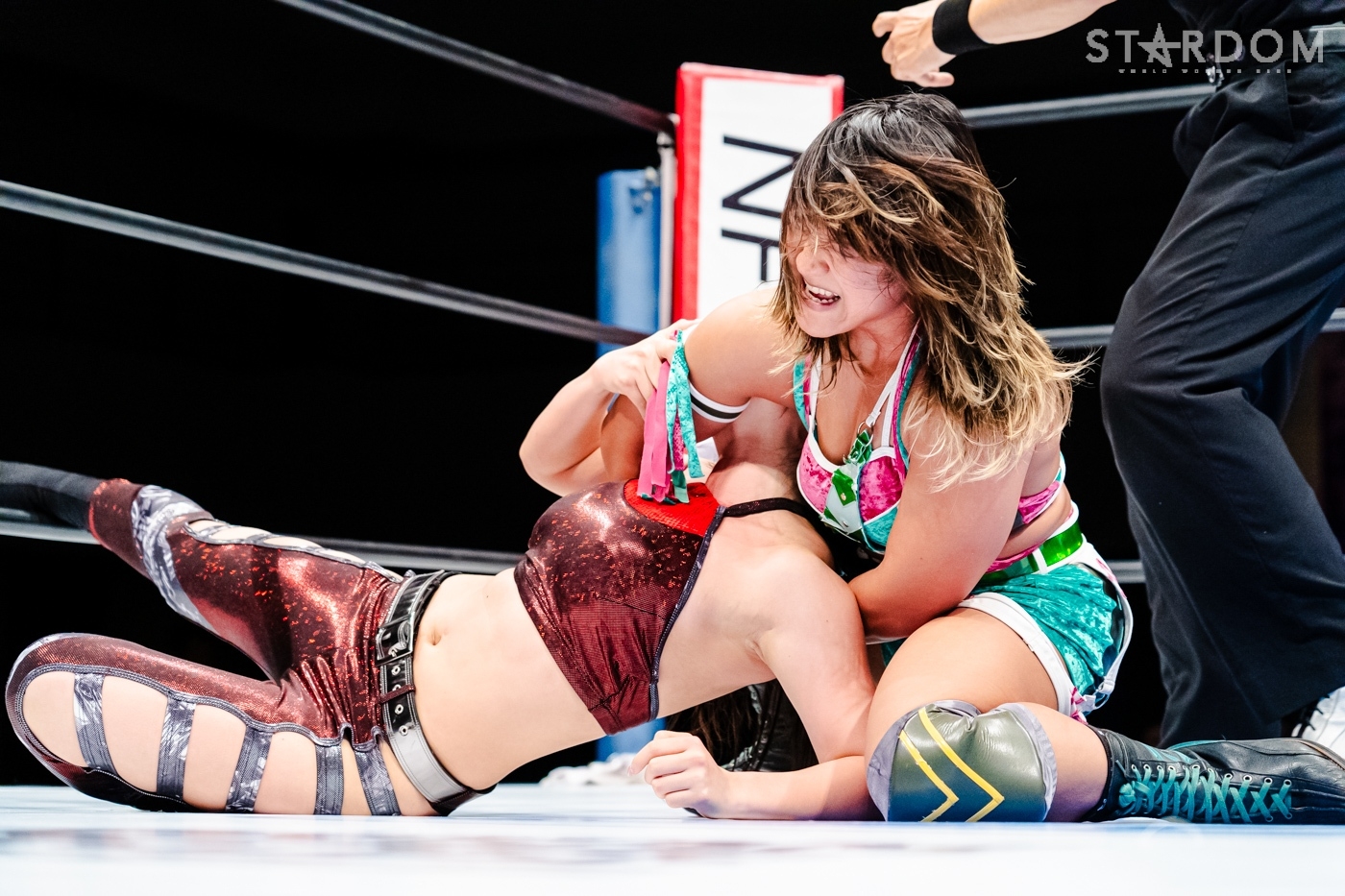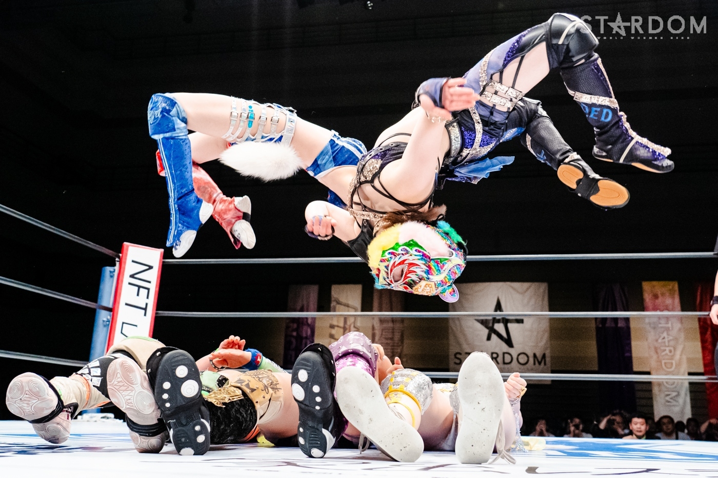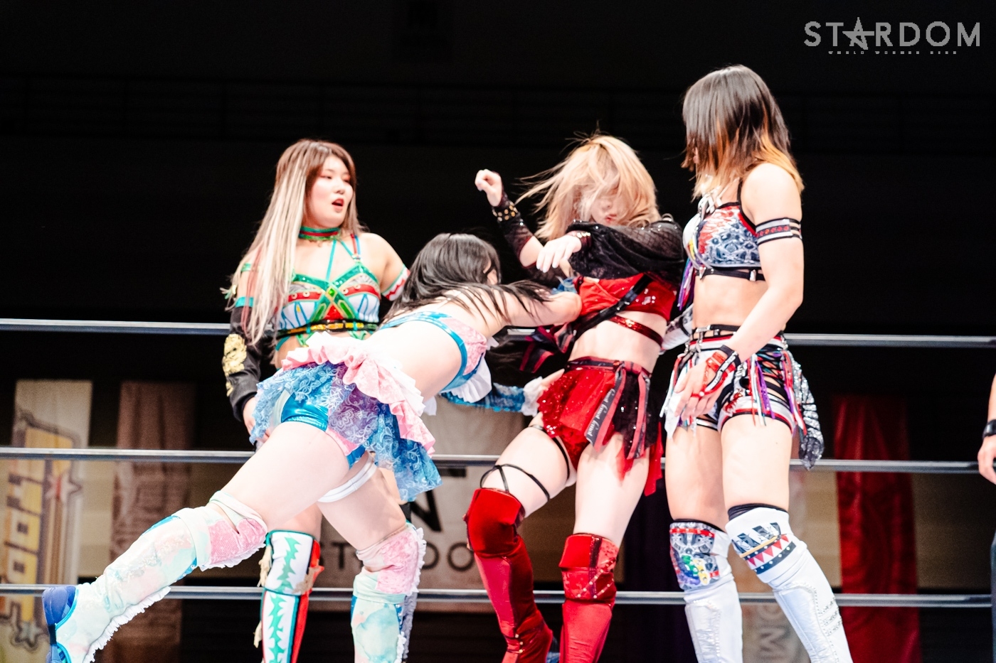 向後、水森が先発に名乗りを挙げると、星来も先発に。水森が手を取ろうとするが向後、星来も乗らずに共闘してドロップキックの挟み撃ち。と見せかけ星来は向後を丸め込む。水森がコズエンで合体し、トリオで星来にストンピング連打、ドロップキック。STARSTとキッドがコズエンをロープワーで翻弄しドロップキック。向後が星来にドロップキック。星来が返すと、梨杏が向後をカットしロープに固定、星来とAZMがエプロンでドロップキックの挟み撃ち、リング内でもドロップキックで競演。水森が星来を担いで交互にぶつけると、コーナーに追い込み突進。向後と星来が合体、向後が水森にボディーアタック。キッドが星来とロープワークの攻防。星来が握手を求めるとキッドが応じかけたところで水森がショルダータックルで分断。なつぽいがキッドと星来にボディーアタック、キッドがかわして星来にヒット。キッドはなつぽいとのダブルを宣言し。しかし、AZMが入り星来とミサイルキックで競演する。AZMとなつぽいがロープワークの攻防。AZMがワキ固めにとるがキッドがAZMにストレッチマフラー。水森がカットし、なつぽいと水森で合体。キッドがかわしSTARSでの619競演を決める。キッドと岩谷がコズエンにまとめてその場跳びムーンサルト。キッドとAZMがエルボーの打ち合い。なつぽいがAZMにドロップキック、キッドとの合体を宣言もAZMが切り返す。なつぽいとキッドが丸め込みの攻防、AZMも加わり、なつぽいとダブルでキッドを丸め込む。星来と梨杏がドロップキックで分断。AZMになつぽいがトラースキック、キッドがAZMを切り返し、なつぽいがポイ捨てジャーマン。キッドにAZMがブレーンバスター。中野、岩谷が梨杏を捕獲しダッシュ。しかし梨杏がかわして中野と岩谷が同士討ち、中野は岩谷と梨杏にDDT。中野が梨杏にサッカーボールキック、ニーアタック。梨杏が返すと、中野はブレ―バスター狙い。岩谷がカットし梨杏にバックキック、梨杏、星来、AZM、梨杏が次々と岩谷にドロップキック。岩谷がトラースキックもダイビングフットスタンプが梨杏にかわされる。コズエンが岩谷にカカト落とし。中野が岩谷にジャーマンもキッドがカット。10分経過。コズエンが向かっていくと梨杏のクロスボディーから星来とAZMがドロップキック。星来が場外へダイブし、中野がリングに戻される。梨杏がブレーンバスターを狙うと中野がこらえる。梨杏がエルボー連打、中野が一発で吹っ飛ばす。コーナーに振られた梨杏が中野をかわしてドロップキック、フィッシャーマン。岩谷がカットしトラースキック、梨杏が中野を丸め込むがカットされる。向後が場外ダイブ、岩谷がキッドと合体しかけるが失敗、岩谷がミサイルキック。キッドが梨杏を捕獲しフィッシャーマン、岩谷がフロッグスプラッシュ。梨杏が返せず岩谷が3カウントを奪ってみせた。