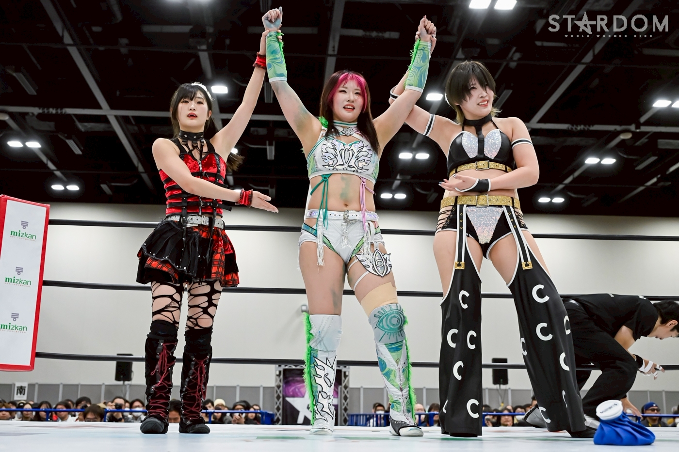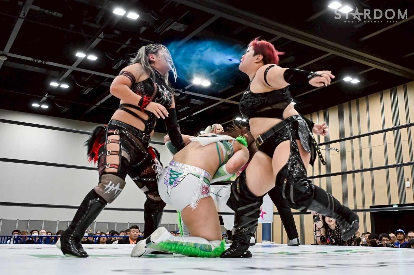 ゴングを待たずにH.A.T.E.が奇襲攻撃、場外戦にもっていく。上谷が古沢、小波が壮麗、ナツコがレディを圧倒。古沢が戻され、上谷が顔面を踏みつける。ロープに固定するとH.A.T.E.で攻撃し、上谷がカカト落とし。ナツコが古沢に高速ブレーンバスターを連発。古沢が返すと、ナツコは逆エビ固め。古沢がロープに振られるが、ナツコにドロップキック連打。レディがナツコにビッグブーツ連発。ナツコが返すと、レディがコブラツイスト狙い。上谷がカットするが、レディはまとめてコブラツイストで締め上げる。さらにまとめてネックブリーカー。ナツコが返すと、レディとショルダータックルをぶつけ合う。ナツコがクロスボディーからセントーン。小波がレディにニーアタック、スライディングキック。レディが小波を前方に叩きつけ、壮麗に託す。壮麗が串刺しラリアットからショルダータックルで小波を吹っ飛ばす。壮麗は予告してブレーンバスターの構え。小波が切り返し、ぶら下がり式腕十字、PKで蹴り飛ばす。古沢が小波をカットし、レディと壮麗が合体で叩きつける。壮麗は小波にブレーンバスター。小波が返すと、壮麗の突進をかわしてH.A.T.E.が串刺し攻撃の連続。H.A.T.E.が蹴りの連続。小波がコーナーから三角蹴りも、壮麗が返す。小波は、フィニッシュを宣言してトライアングルランサー。しかし、レディがビッグブーツでカットし、壮麗がラリアット連打。ナツコが突進すると、古沢がロープを引いて場外に送り出す。壮麗が小波にブルーサンダー。しかし、小波が返してみせる。壮麗はフィニッシュを宣言して、雷の如くを狙う。ナツコの毒霧がかわされて小波に誤爆、壮麗がまとめてラリアット。壮麗とレディが小波を持ち上げて後方に叩きつける。しかし、上谷のカットが間に合う。するとレディが上谷へのビッグブーツでH.A.T.E.を分断、壮麗が雷の如くを決めると小波が返せず3カウントが入った。
