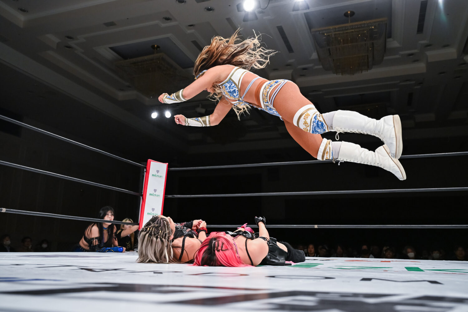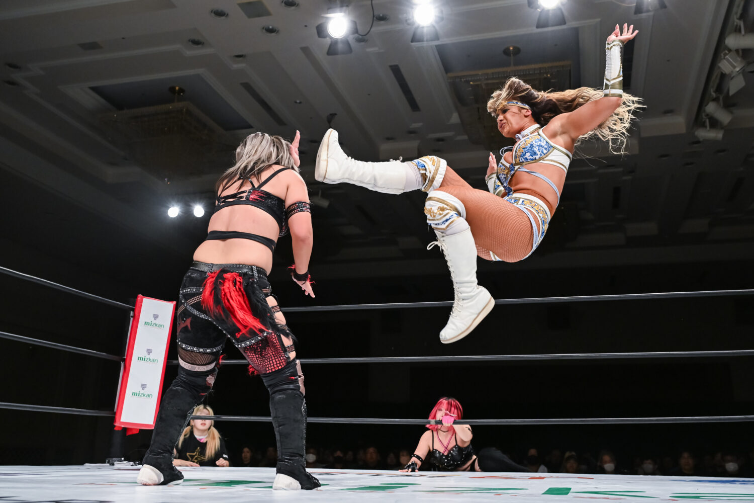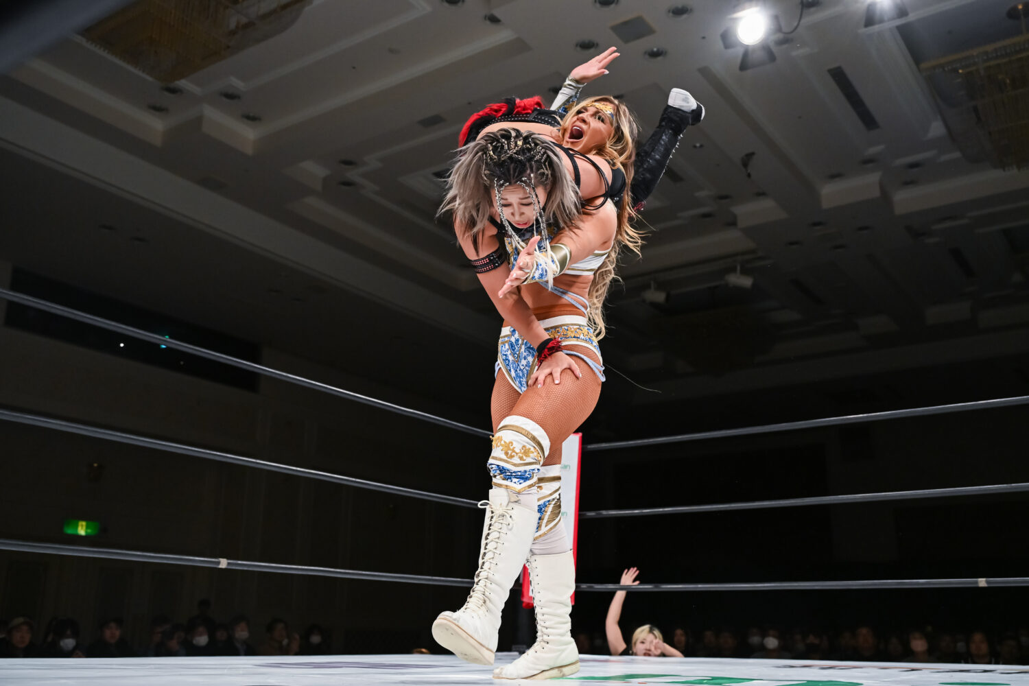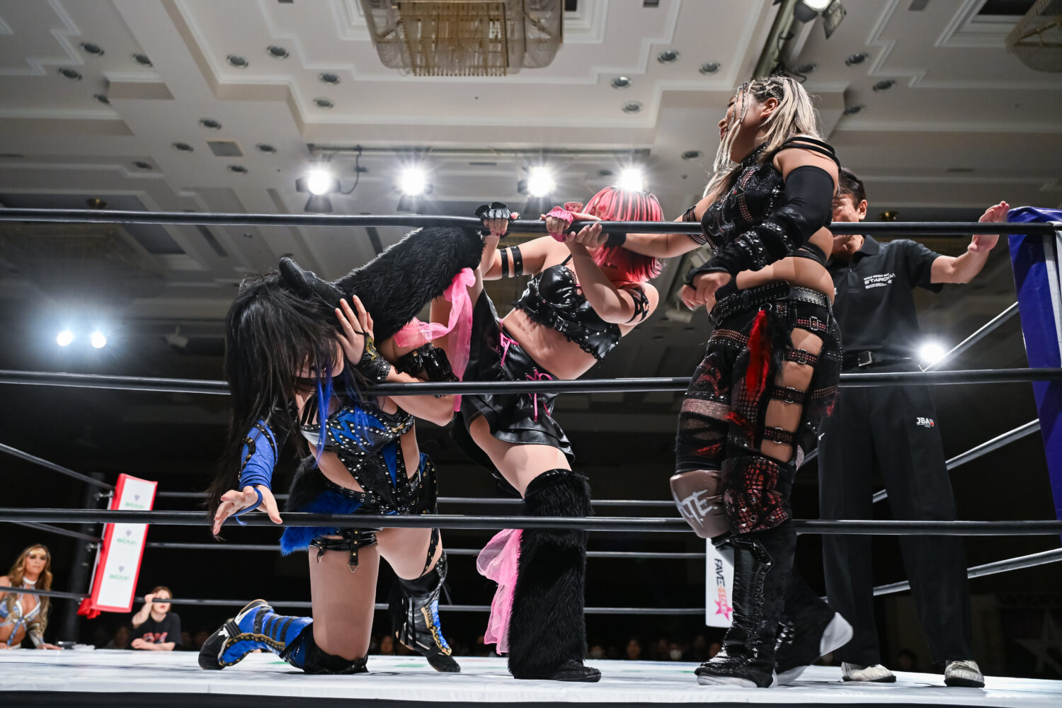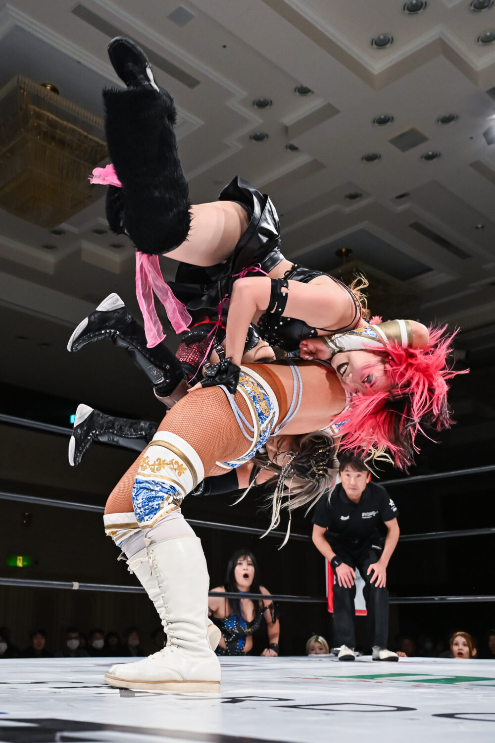吏南とHANAKOの先発でゴング。ロックアップでの力比べでHANAKOが押し込む。HANAKOが殴りかかると吏南がかわして腕を引く。こらえられた吏南は唾を吐きつける。HANAKOはショルダータックル。で吏南を吹っ飛ばし、ボディースラムで叩きつける。吏南が返すと、HANAKOは逆エビ固め。吏南がエスケープすると、HANAKOの突進にロープを引いて場外に送り出す。小波がエプロンからミドルキック。HANAKOが戻され、吏南が串刺しダブルニーアタック。小波がHANAKOの左腕を攻撃してワキ固め。左腕をロープにかけて締め上げる。中央にもっていくとサッカーボールキック。HANAKOが返すと、吏南も左腕を攻撃、「でけえんだよ、このクソヤロー!」と顔面を踏みつけ、ビッグブーツ。HANAKOが突進を読んでバックフリップ。メーガンが次々とショルダータックル。吏南のクロスボディーをキャッチしてフォールアウェースラム、次々と串刺しボディーアタック、まとめて串刺しボディーアタック、まとめてブレーンバスター、まとめてランニングボディープレス。HANAKOが吏南にショルダータックル、アルゼンチンからコーナーに叩きつけて串刺しボディーアタック、ニードロップ。吏南が返すと、HANAKOはブレーンバスター狙い。吏南がこらえて「なめんじゃねえ、このクソヤロー!」と卍固め。HANAKOがエスケープすると、吏南は「もういっちょ上げるぞ!」と予告。HANAKOがこらえてエルボーの応酬に。吏南がドロップキック、HANAKOがビッグブーツ。吏南が返すと、HANAKOは白鷺の体勢に。吏南がエスケープし小波のアシストからビッグブーツ、ドロップキック。小波がHANAKOへニーアタック、スライディングキック、飛びつき腕十字。HANAKOが上になってカバー、返されるとビッグブーツ、予告してブレーンバスターの構え。小波がこらえるがHANAKOが叩きつける。メーガンが小波をボディースラム。返した小波にメーガンがブレーンバスター狙い。小波が切り返してスリーパーで飛びつく。メーガンがコーナーに追い込むが小波がかわして吏南と串刺し攻撃で合体、吏南がミサイルキック、小波もミサイルキック。こらえたメーガンがドロップキックも、小波と吏南がかわしてダブルのドロップキック。10分経過。小波がメーガンにスリーパーもHANAKOがカット。小波の突進をHANAKOが妨害してメーガンとダブルの串刺しビッグブーツ。HANAKOが止めてメーガンがドロップキック。しかし、吏南がカットする。HANAKOに吏南が払い腰。メーガンが吏南と小波を捕まえるがナツコと琉悪夏が脚を引く。小波がバズソーキック、吏南がダイビングダブルニードロップ、小波がスリーパー。残り3分。HANAKOがカット。小波がメーガンにジャーマン狙い。メーガンが切り返すと吏南がムチで殴打。メーガンが小波の延髄を食らうが吏南のムチが誤爆。メーガンは小波にファルコンアロー。残り2分。メーガンが担ぐが小波が切り返してハイキック。メーガンがこらえてフライングラリアット。しかし吏南がカットする。HANAKOが吏南にラリアット。メーガンに声をかけダブルのブレーンバスター。メーガンが小波にF5。小波が返せずメーガンが勝利した。