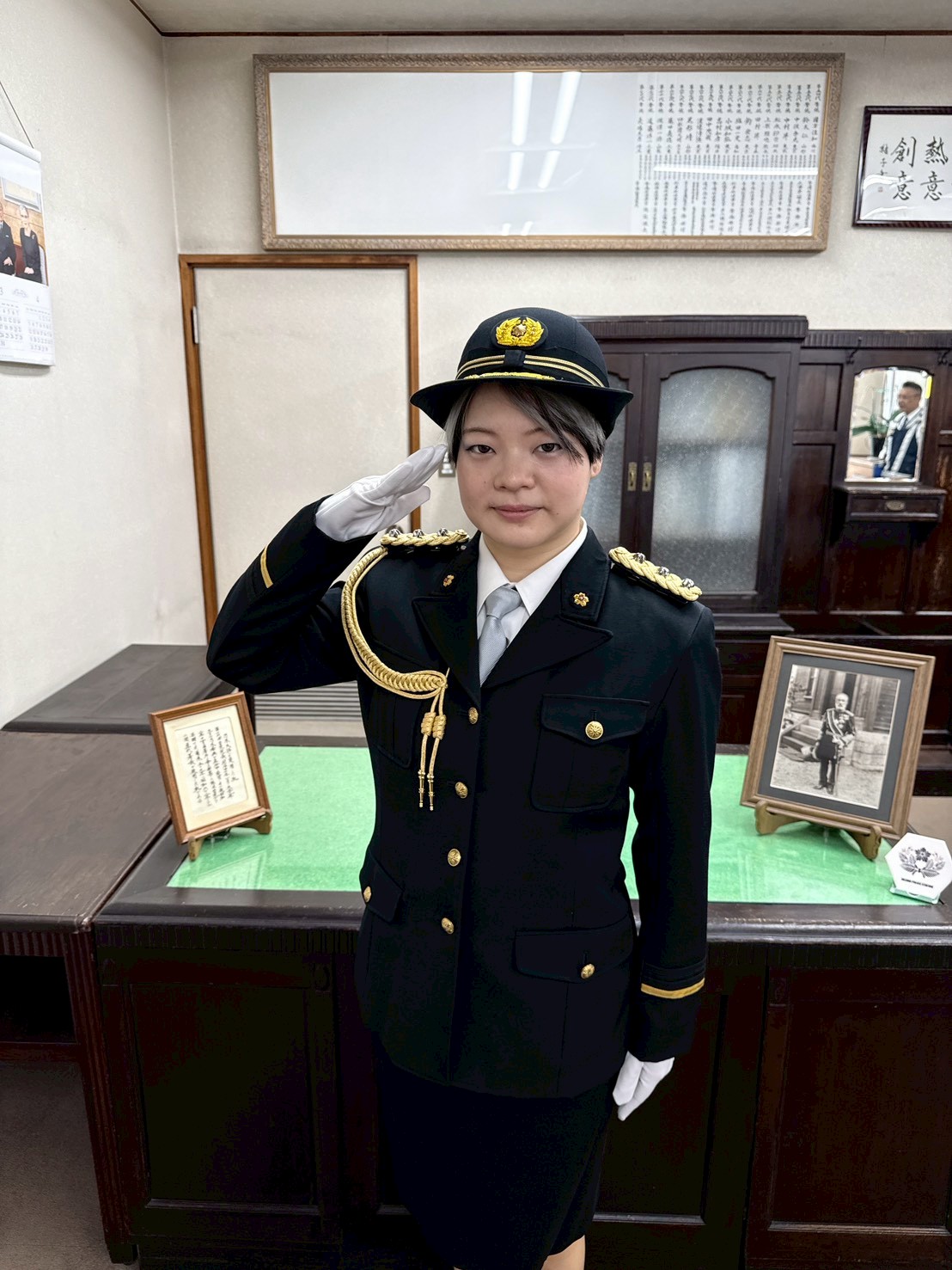 イベント後には、目白警察署を訪問。警察官の正装を着用し、長崎署長と歓談。
