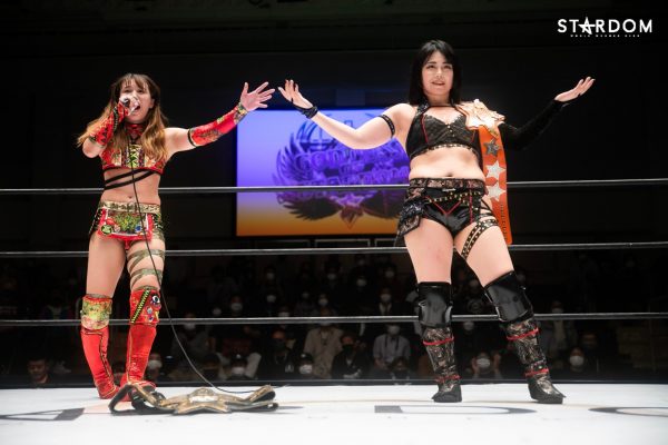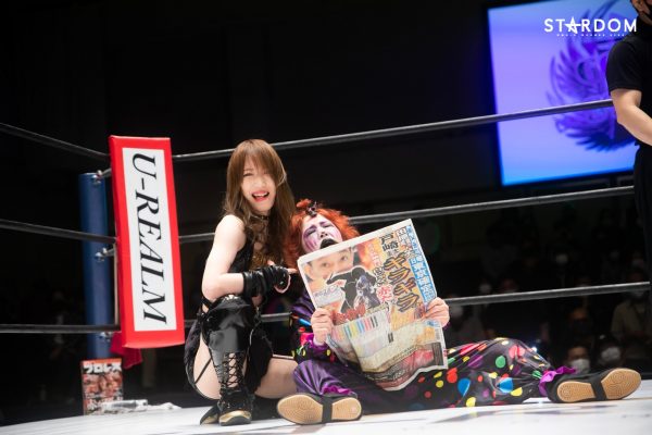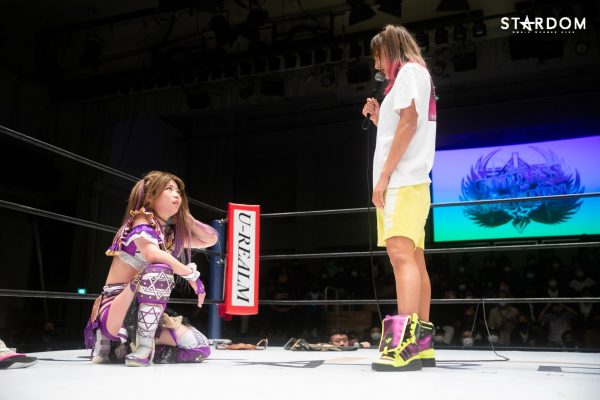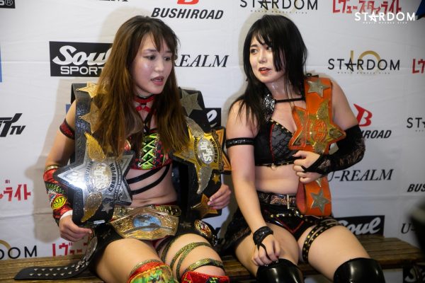 朱里「ウチら、ポニ士。一番はアリカバ、ジュリアとのタッグがあり、このゴッデス、ジュリアと(ベルトを)巻いてます。ジュリアともいろいろ話をしました。あとで、スターダムの公式にいまの心境、どうするのかあげたいなと思ってます。ジュリアと一緒に動画を出すつもりです。タッグリーグ戦やるからにはパワフルにエネルギッシュにやっていくので、ポニ士、みなさん…」