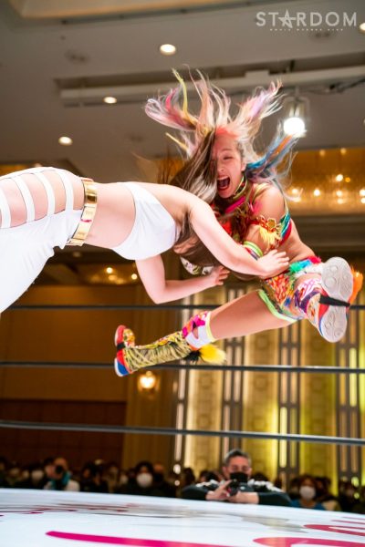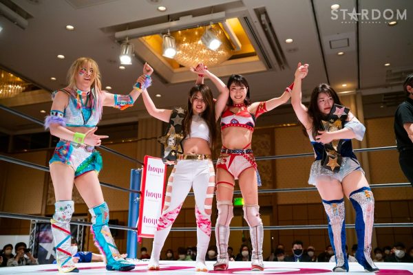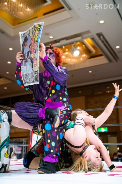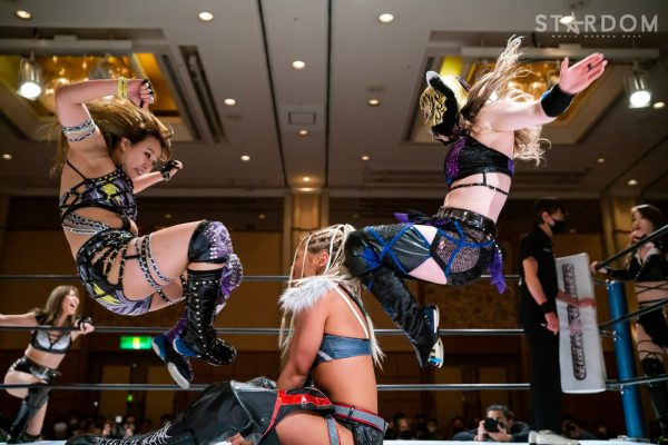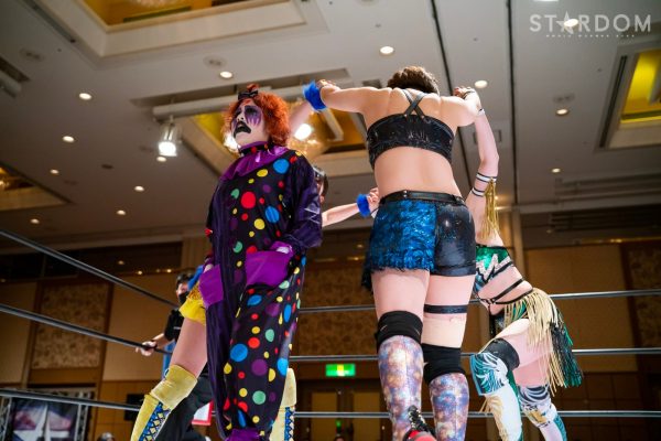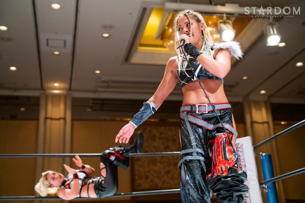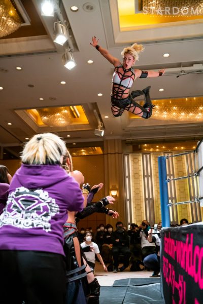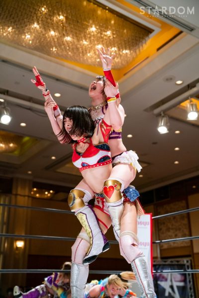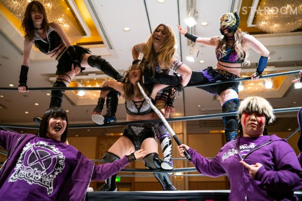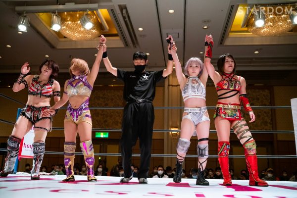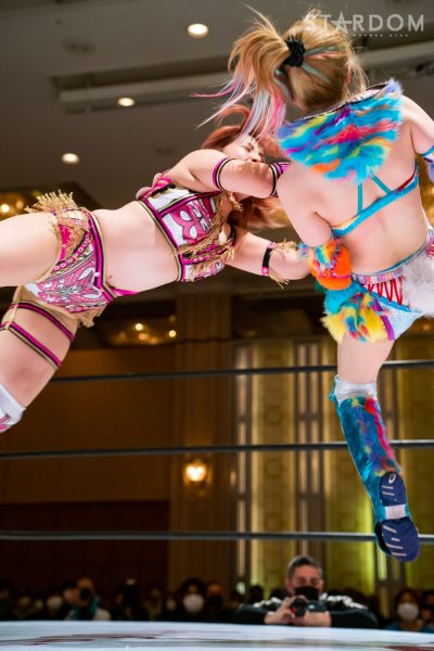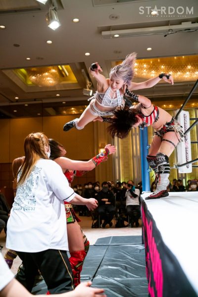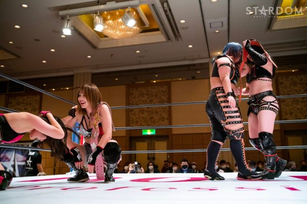 朱里&なつぽい組のドンナ・デル・モンドと林下詩美&AZMのクイーンズクエストがタッグ対戦。現ワールド・オブ・スターダム王者の朱里と前王者の詩美が相まみえ、なつぽいとAZMのハイスピードバトルが展開される図式。最後に勝ち名乗りを受けるのは、どのチームか?