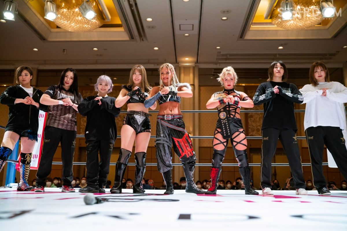 なつぽいとAZMが先発で対峙。ロックアップからAZMが首を取りグラウンドでスリーパー。なつぽいが切り返し、ロープワークの攻防に。なつぽいのアームホイップ、AZMが突進をかわしてカバーの応酬。AZMがダッシュしようとするとエプロンで朱里が妨害し、DDMが次々と串刺し攻撃、ダブルのドロップキック、左右から腕十字。しかし詩美がカットする。なつぽいはAZMに弓矢固め。朱里がAZMにサッカーボールキック。AZMが返すと、コーナーに追い込み串刺しニーアタック。AZMは1カウントで返してみせる。なつぽいが突進するとAZMが止めて詩美がドロップキックを浴びせる。QQが連係でなつぽいを攻撃。詩美がエルボードロップ、AZMがフットスタンプ。詩美がなつぽいに滞空時間の長いボディースラム。なつぽいが返すと、詩美はエルボー連打。なつぽいがやり返すと、詩美は「こいよ」と受けてみせる。詩美はエルボーでなつぽいを吹っ飛ばす。なつぽいがネックブリーカーを決め朱里に託す。朱里が詩美にドロップキック、乱入のAZMにコードブレイカー、詩美にコルバタ、ブルドッキングヘッドロック。詩美が返すと、朱里は腕十字から腕固め。詩美がカウンターのドロップキック、ミサイルキック。朱里が返すと詩美はスリーパー、朱里が切り返しスリーパーの応酬に。朱里がスタナーで脱出しミドルキック連打。朱里の突進に詩美が投げっぱなしジャーマン。朱里もお返しで詩美を投げ捨てる。詩美がラリアットをかわして朱里をマットに叩きつける。AZMが朱里へミサイルキック。朱里が返すと、AZMはブレーンバスター狙い。朱里がこらえるとAZMが「ふざけんな!」とエルボー連打。朱里がやり返すとAZMもやり返してドロップキック。なつぽいがAZMにダイビングボディーアタック。AZMがドロップキックをかわしてバックを取る。なつぽいが切り返し脚をロック。AZMがエスケープすると、なつぽいが低空ドロップキックを顔面にぶち込む。朱里がニーアタックでなつぽいを援護。なつぽいはコーナーに上がるが詩美がカット。詩美はなつぽいを担いで場外に投げつける。AZMがエプロンを走ってなつぽいにミドルキック。QQが合体攻撃もなつぽいがこらえる。AZMがワキ固めを決めるもエスケープを許す。AZMはなつぽいにブレーンバスター、ダイビングフットスタンプ。しかしなつぽいがかわしてみせる。なつぽいとAZMで丸め込みの応酬。なつぽいがスイングネックブリーカー、朱里と合体のボディープレス、なつぽいがドロップキック。AZMが返すと、残り1分。なつぽいがジャーマン狙いもAZMがハイキック。なつぽいが突進を止めるがAZMが丸め込みの連続。丸め込みの応酬からAZMが押さえ込むがタイムアップのゴングが打ち鳴らされた。