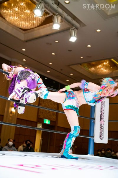 舞華&ひめかの舞ひめが琉悪夏&吏南の大江戸隊と対戦するタッグマッチ。琉悪夏と吏南はスターライト・キッドを加えたYoungOEDとして翌日の2・21後楽園で“舞ひめぽい”舞華&ひめか&なつぽい組のアーティスト・オブ・スターダム王座に挑戦とあって、決戦前日の前哨戦。この試合の結果と内容が、タイトル戦の行方に大きく左右することになりそうだ。元ゴッデス・オブ・スターダム王者でもある現アーティスト王者が大江戸隊の若い力を退け威厳を見せつけるか、それとも琉悪夏と吏南がタイトル奪取に向けて勢いをつけるか?