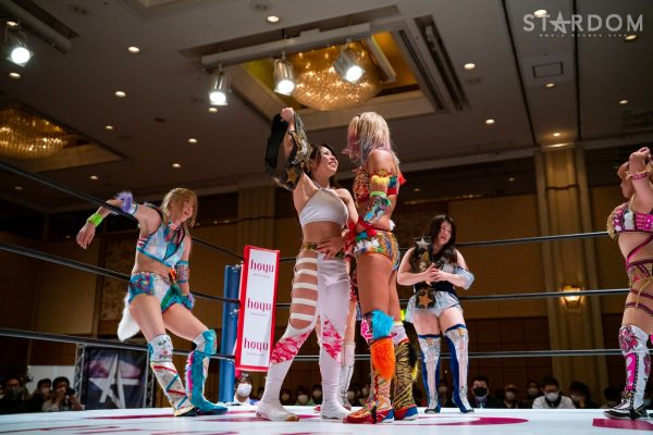 コール終了とともに大江戸隊が襲撃し場外戦となる。リングサイドで圧倒した大江戸隊は舞華をリングに戻してダブルで攻撃。吏南は「これがチャンピオンか?」とストンピング連打。舞華がカウンターでショルダータックルをぶち込み吏南を吹っ飛ばす。ひめかが滞空時間を取って吏南にボディースラム。舞華とひめかが自軍コーナーで吏南を捕獲。舞華が吏南にボディースラムを連発も琉悪夏がカット。ひめかが吏南に串刺しニーアタック、ボディースラム、逆片エビ固め。琉悪夏がカットするが舞華が場外に追い出す。吏南が投げを狙うがひめかがこらえる。ならばと吏南がエルボー連打もエルボーを打ち込まれ崩れ落ちる。しかしカウンターの払い腰でひめかを叩きつけると、琉悪夏がショルダータックルで吹っ飛ばす。琉悪夏とひめかがショルダータックルをぶつけ合う。ひめかが打ち勝つも、琉悪夏がすぐに起き上がり、ひめかを吹っ飛ばす。再びショルダータックル合戦となりひめかが吹っ飛ばす。舞華が入ると琉悪夏が腹部にパンチ。舞華もやり返し突進すると、琉悪夏がカウンターのクロスボディー。吏南が串刺しボディーアタックからドロップキック。舞華が返すと、吏南は卍固めから丸め込み。吏南は琉悪夏を呼び込み、舞華に次々と串刺し攻撃。琉悪夏のコンプリートショットから吏南がSTOを決めるが舞華が返す。吏南は卍固め。グラウンドに移行するがひめかがカットする。吏南の突進にひめかがニー、舞華がバックドロップ。舞華が突進を狙うが吏南が髪を引いて丸め込む。返した舞華に吏南はゴリーボム狙い。舞華が切り返しラリアット。吏南が丸め込むが2カウント。舞華が突進を止めてパワースラム。舞華とひめかが琉悪夏にサンドイッチラリアット。舞華は吏南にラリアット。吏南が返すと、舞華が炎華落とし。吏南が返せず舞華の勝利となった。