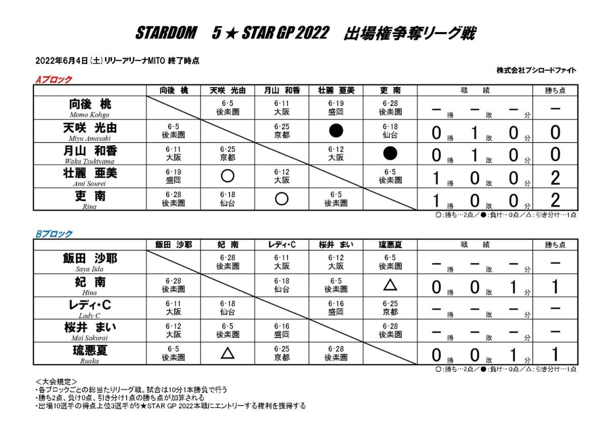 | ◆5★STAR GP2022 出場権争奪リーグ Aブロック公式戦 10分1本勝負 | ||